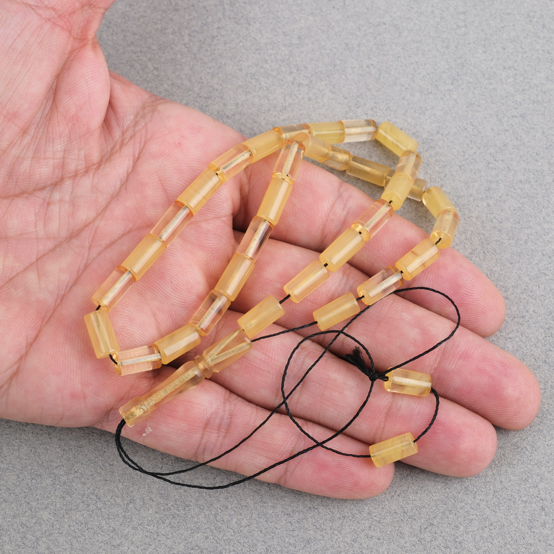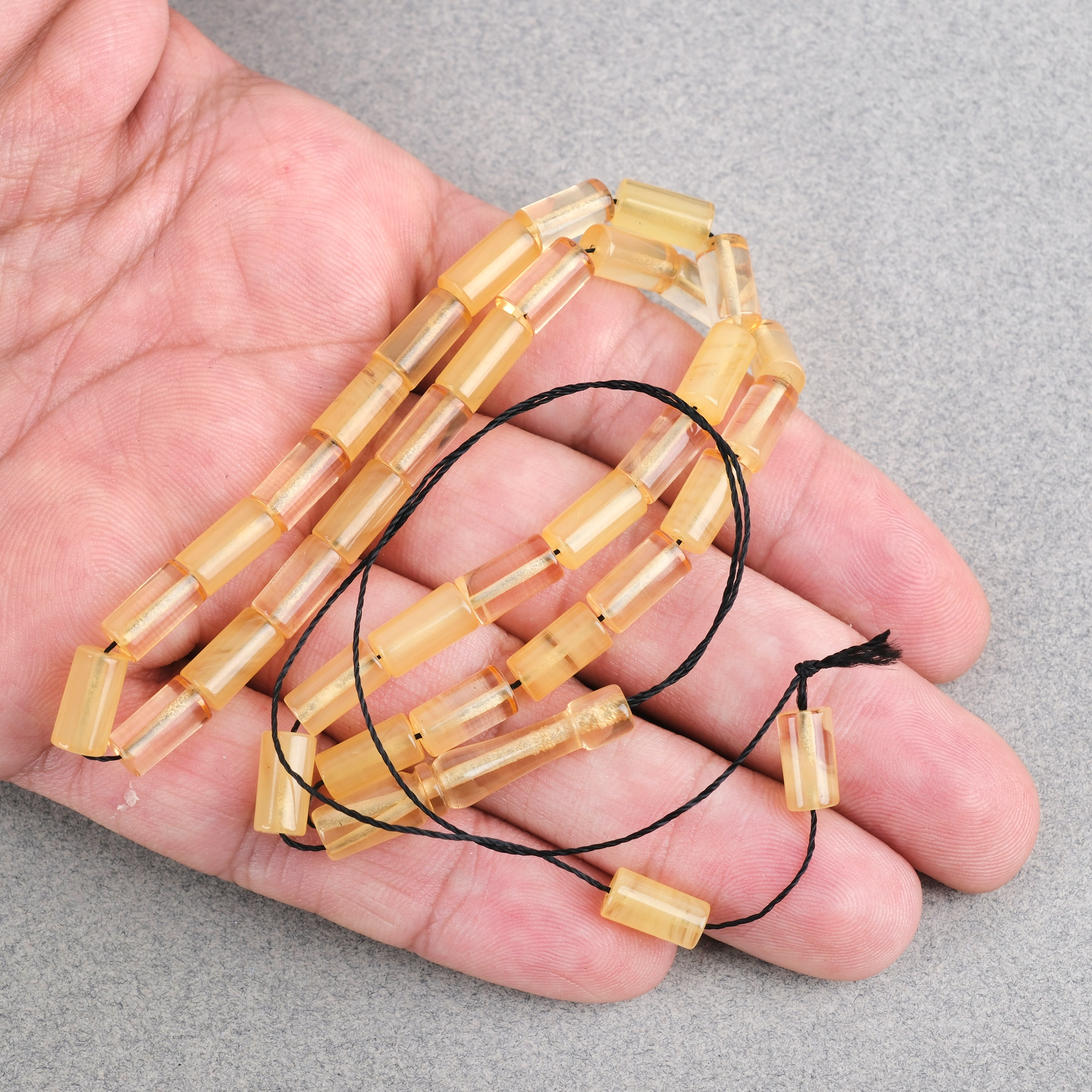 Sıkma Kehribar Bilek Boy Kesme Kesim 5.5x10mm Tesbih-Şeffaf Sarı