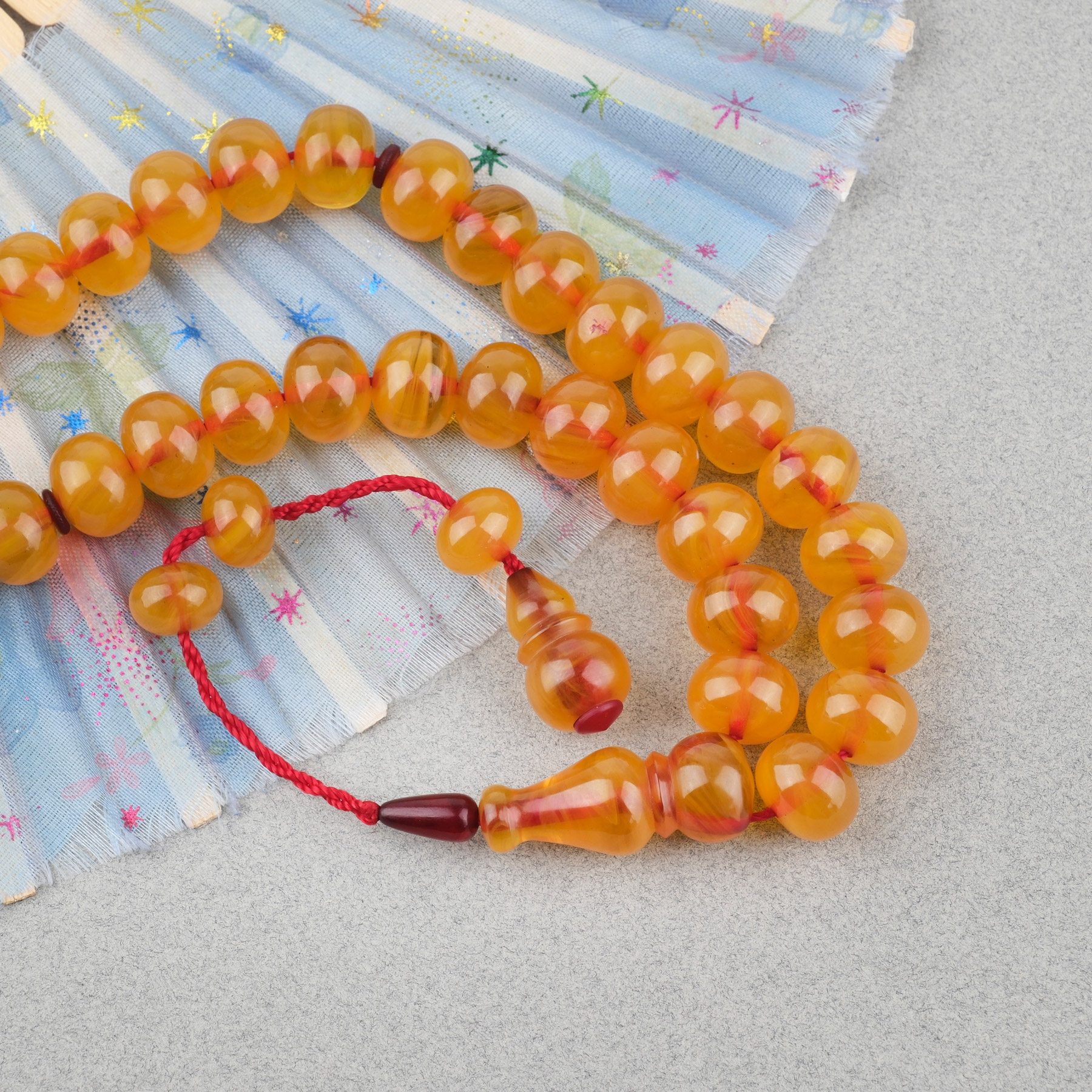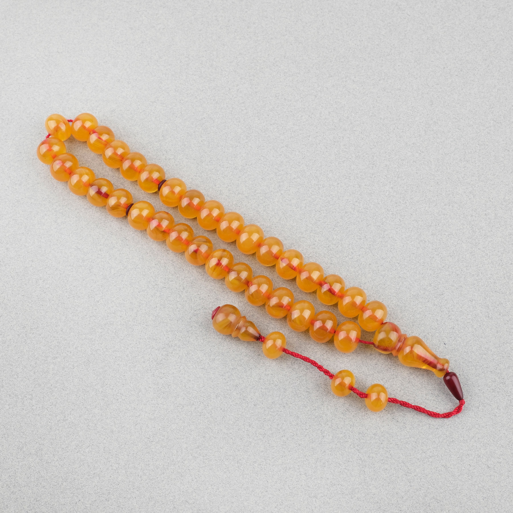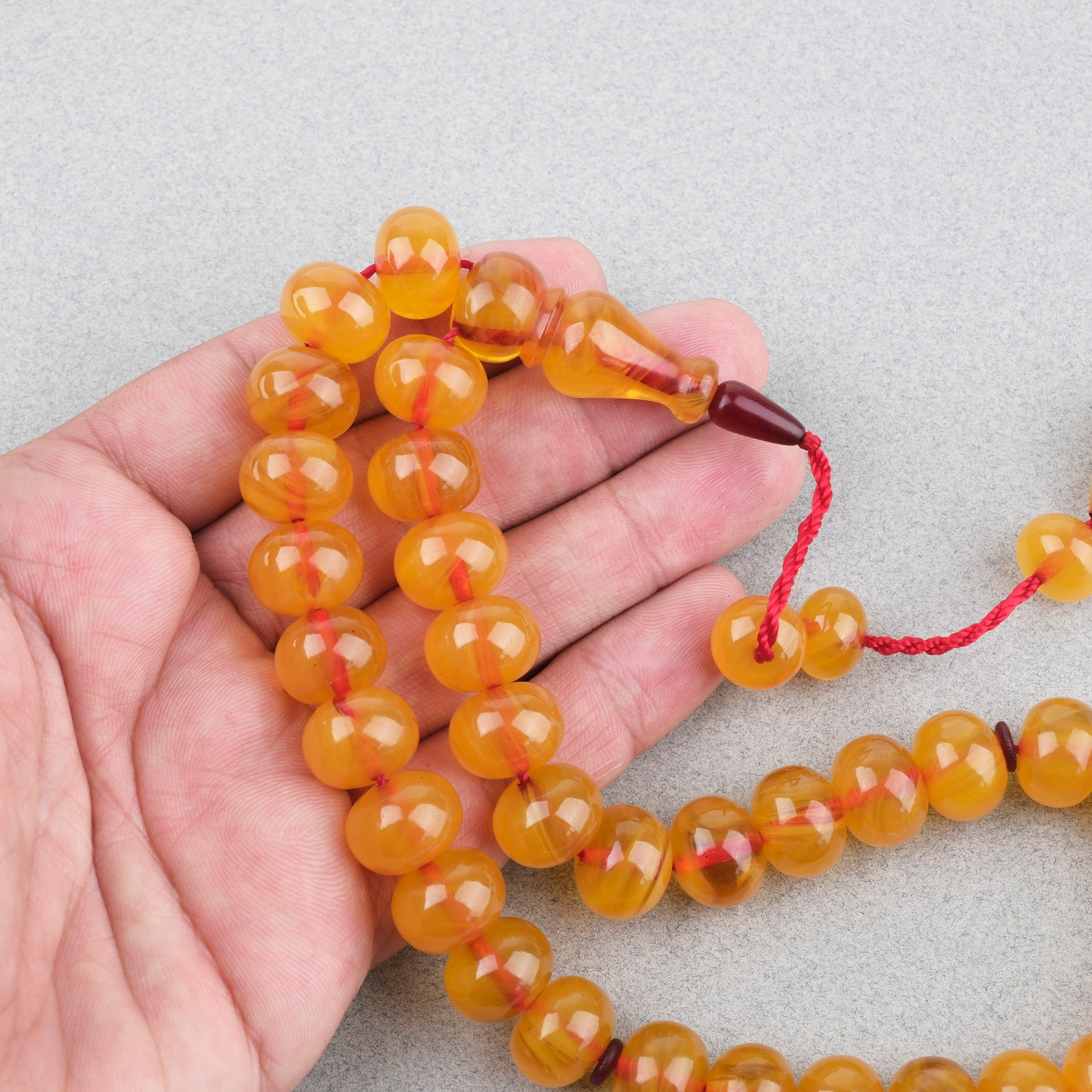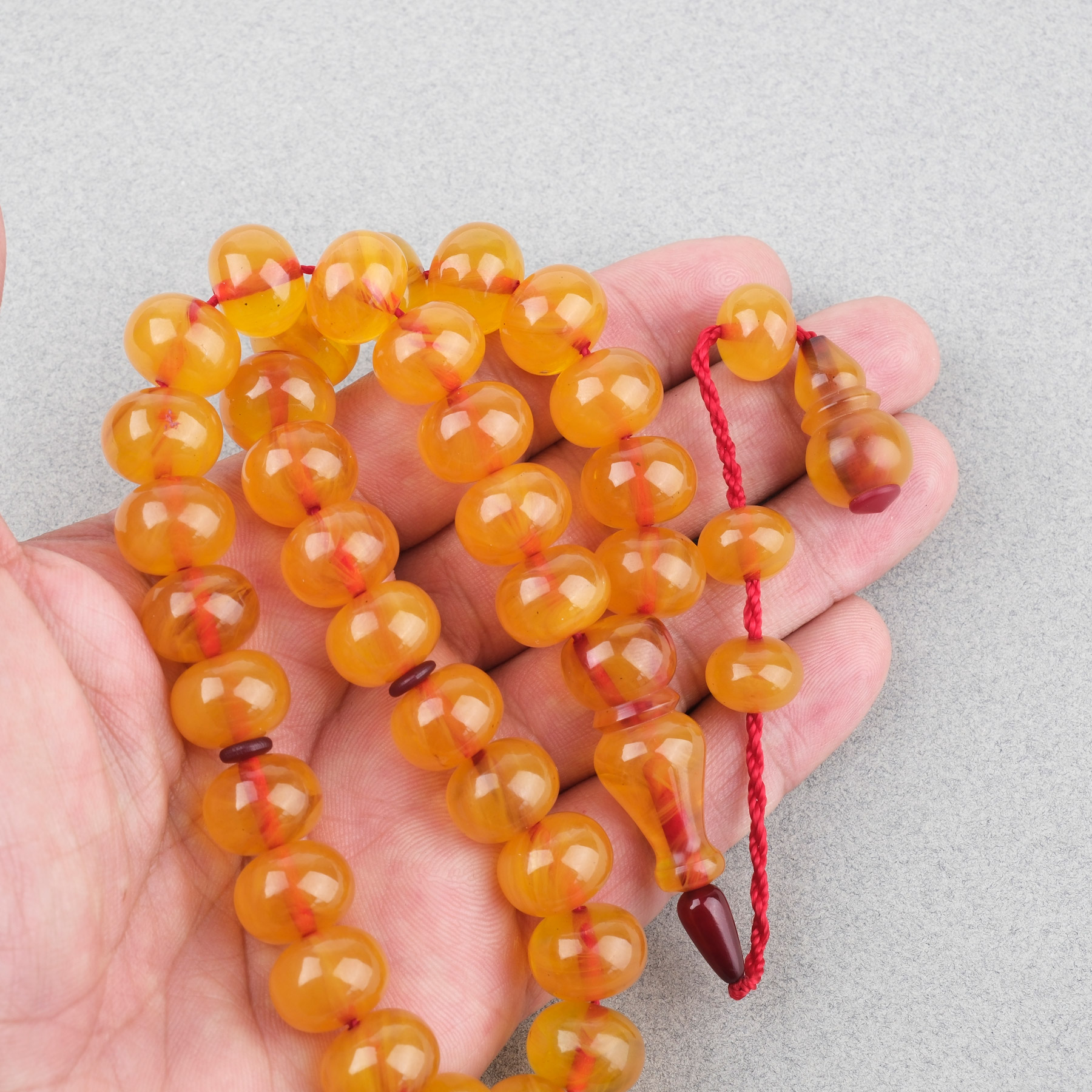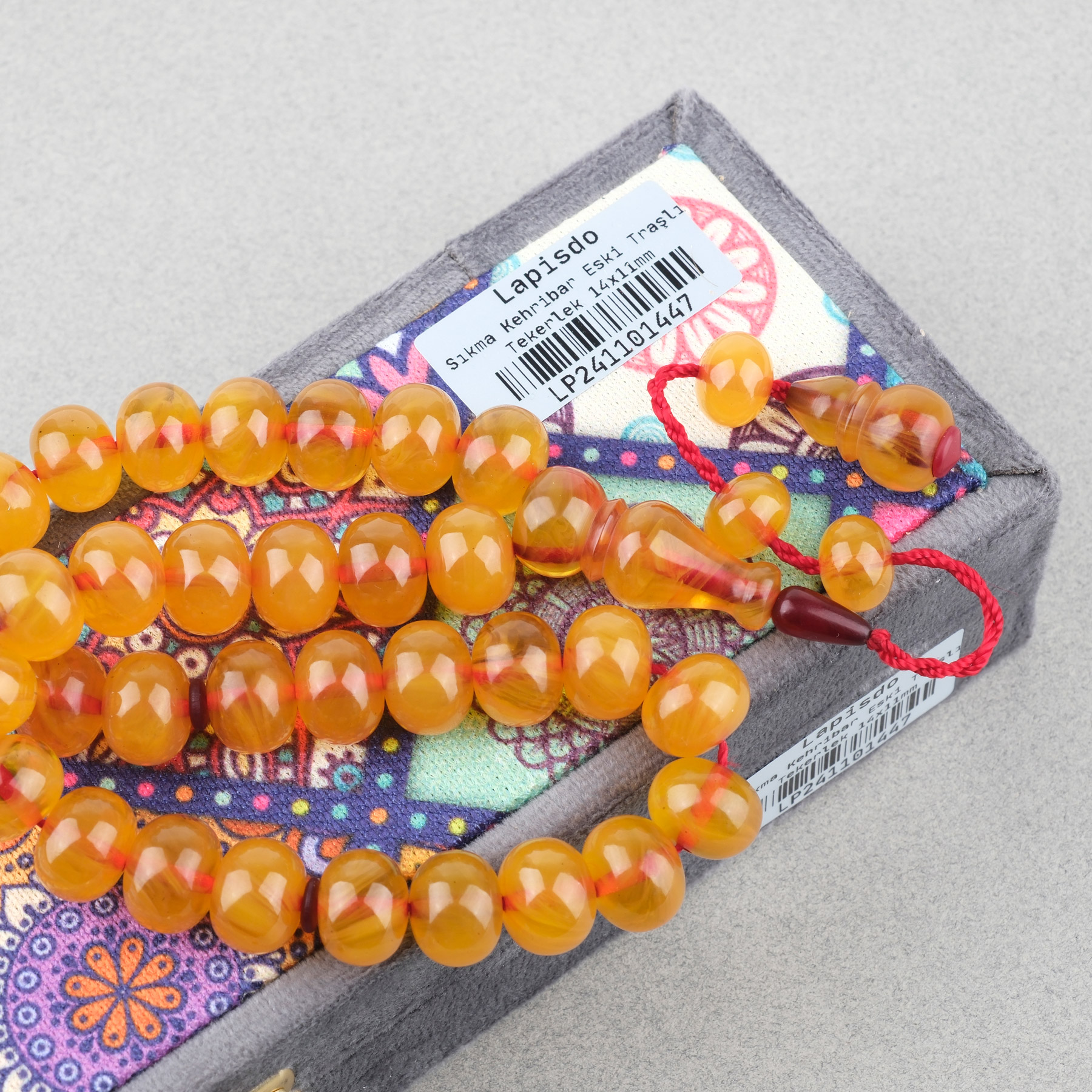 Sıkma Kehribar Eski Sandık Malından Traşlı Tekerlek Kesim 14x11mm Tesbih