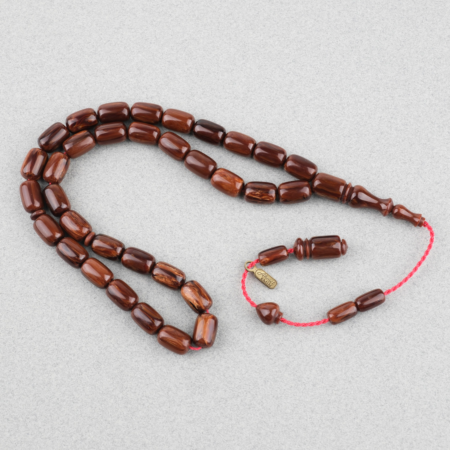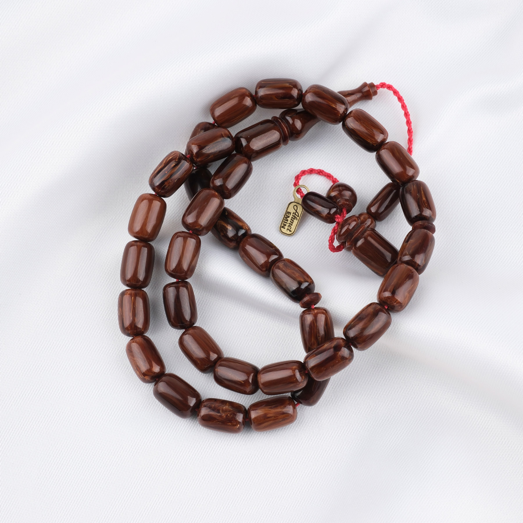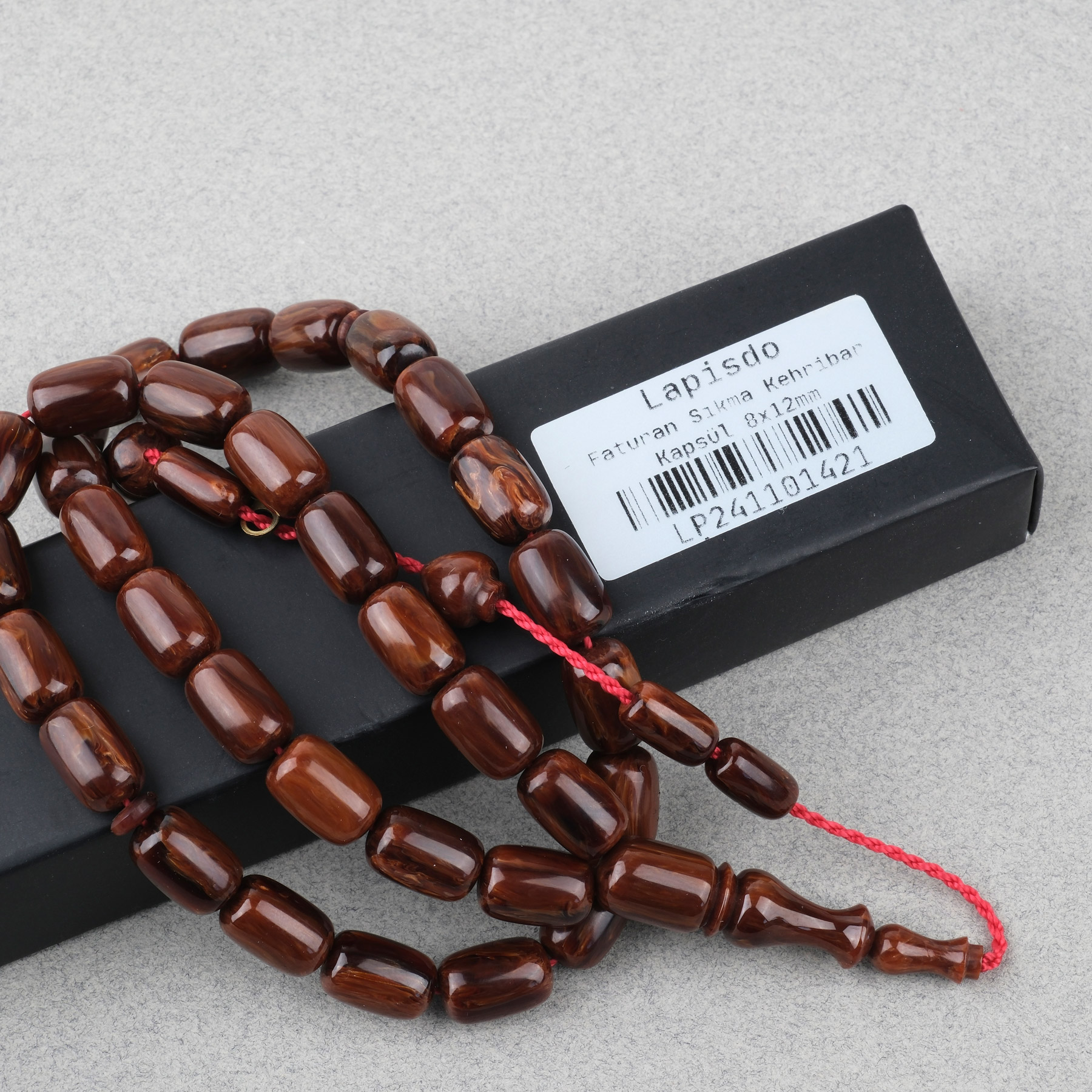 Sıkma Kehribar Faturan Kapsül Kesim 8x12mm Tesbih - Kahverengi