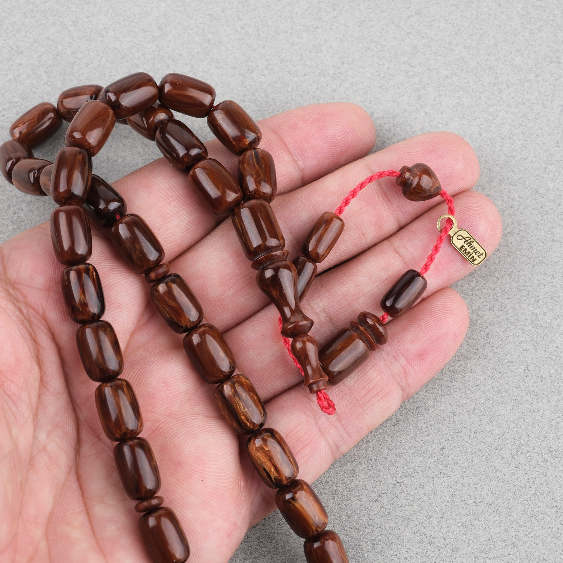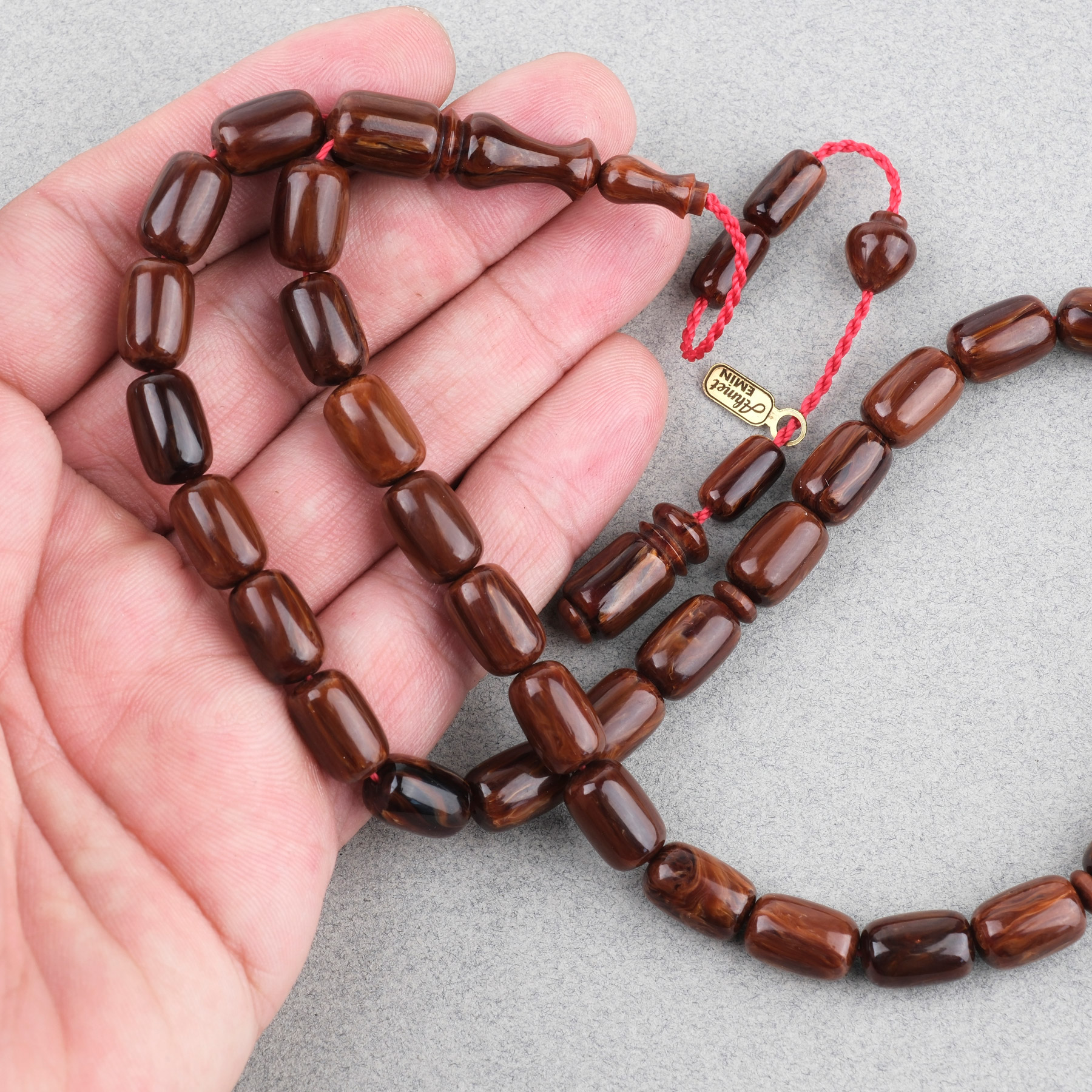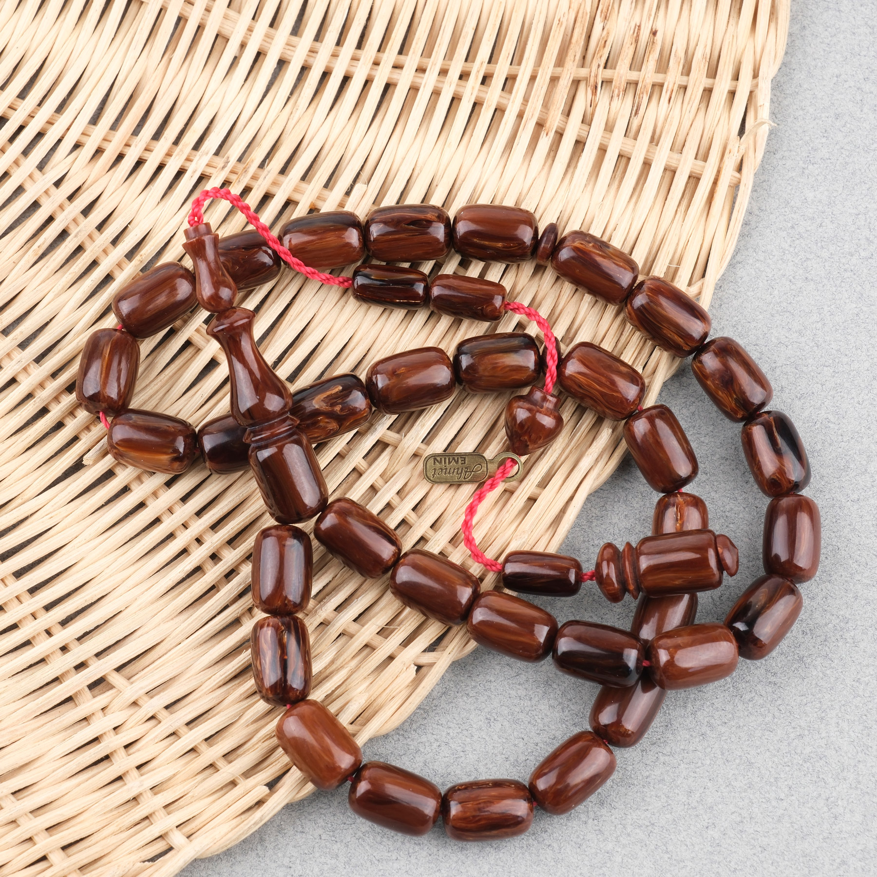 Sıkma Kehribar Faturan Kapsül Kesim 8x12mm Tesbih - Kahverengi