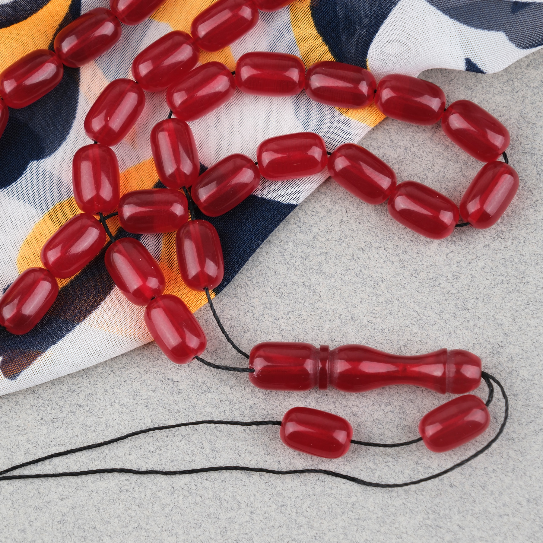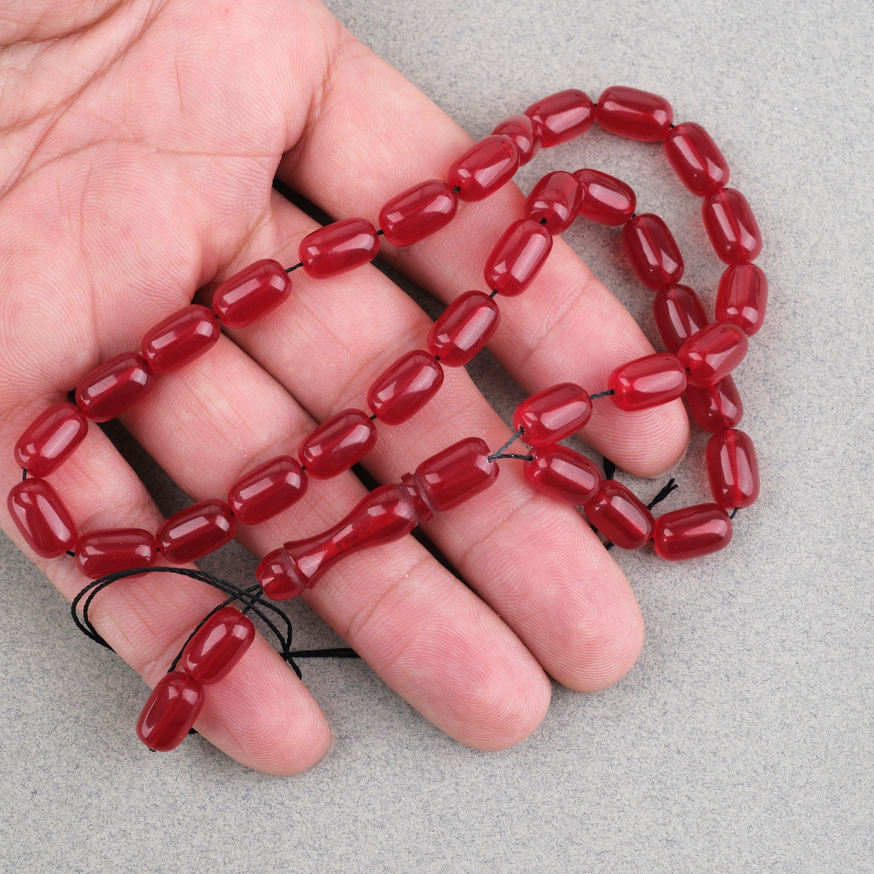Sıkma Kehribar Kapsül Kesim 7x11mm Tesbih Püskülsüz Kırmızı
