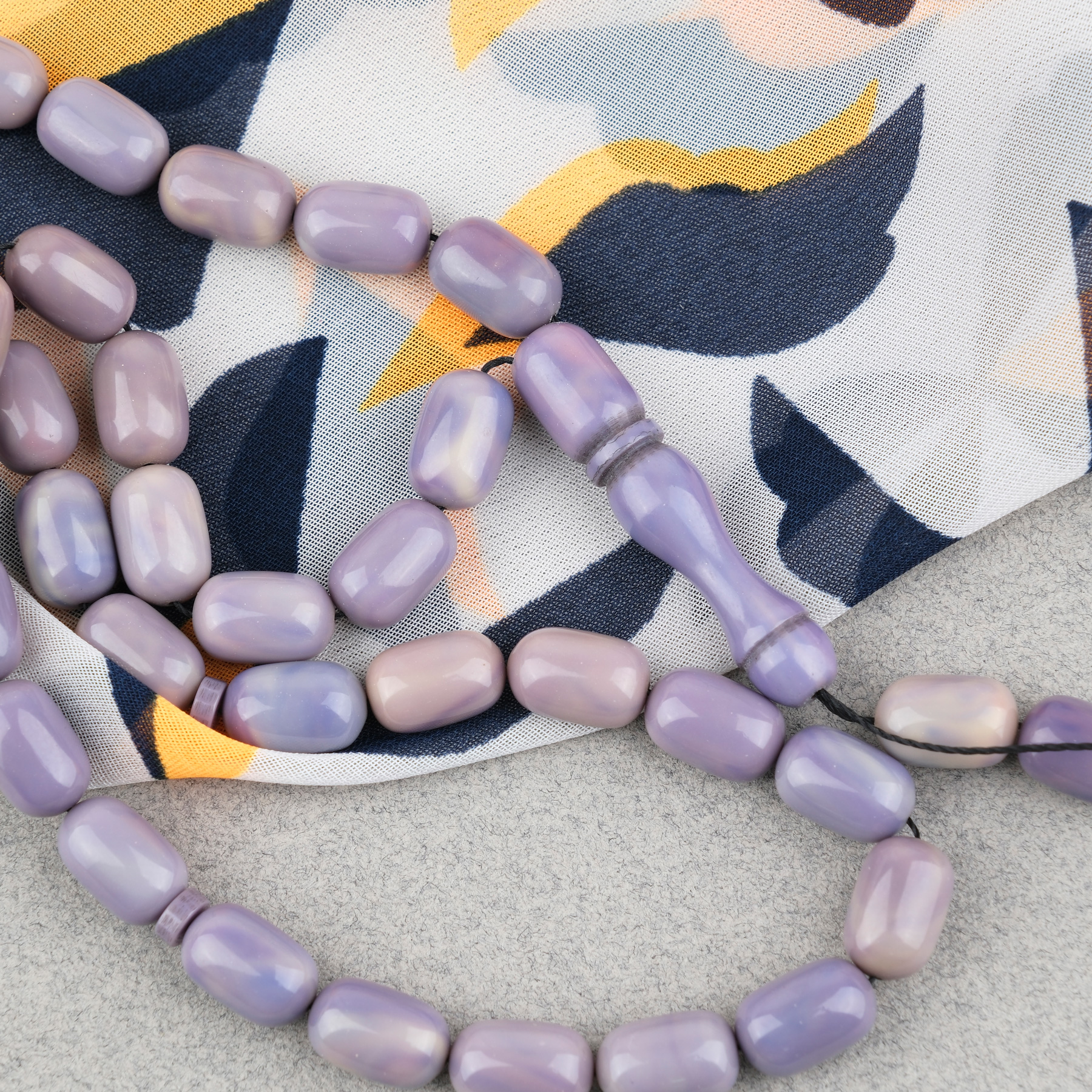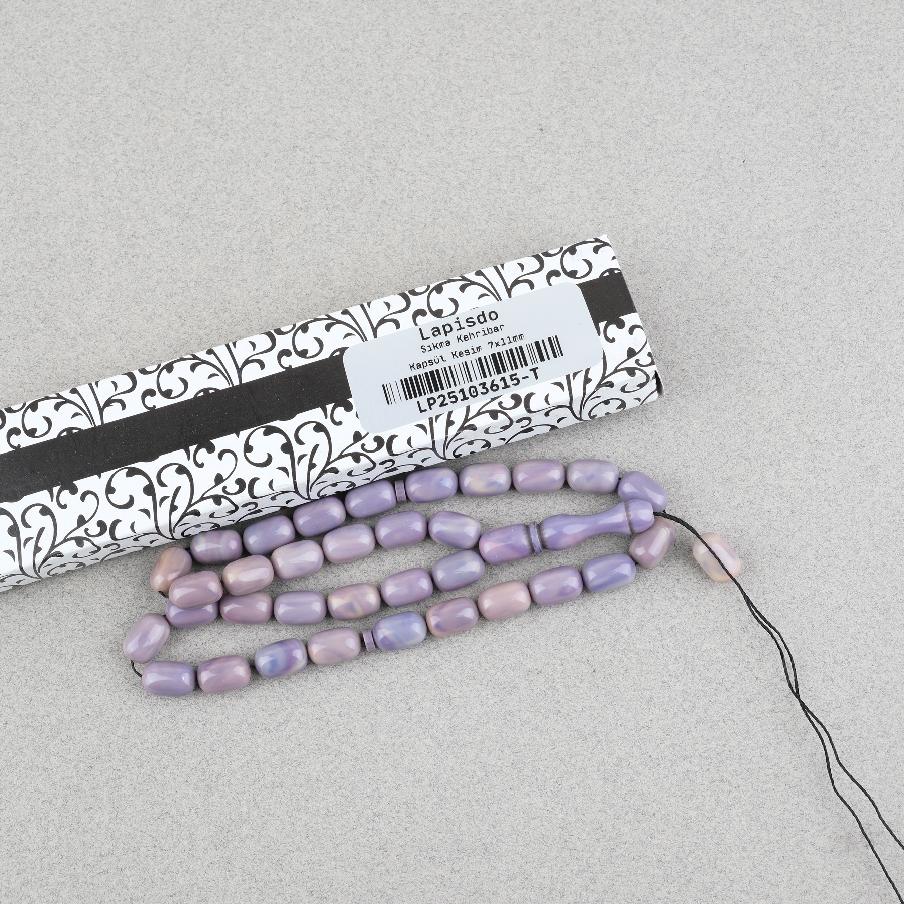 Sıkma Kehribar Kapsül Kesim 7x11mm Tesbih Püskülsüz Lila