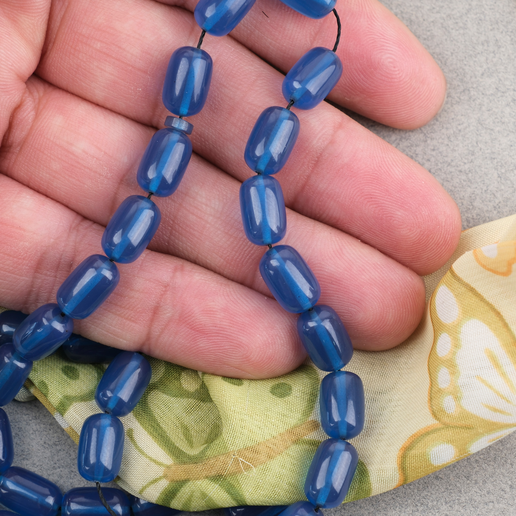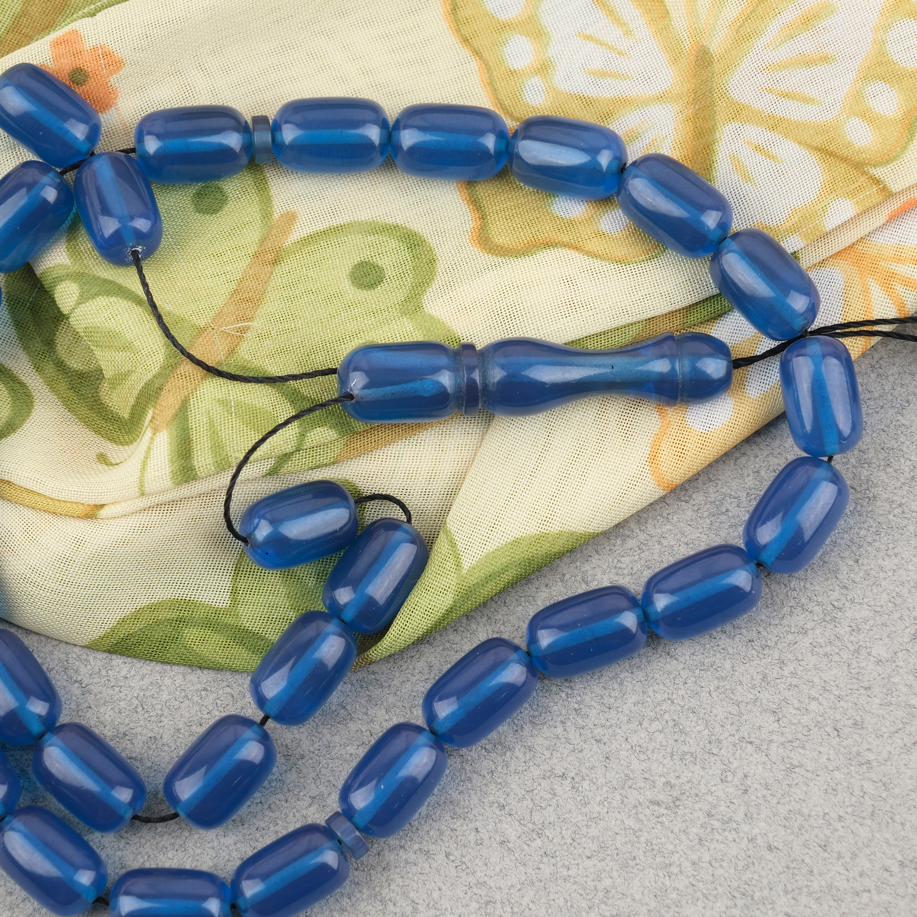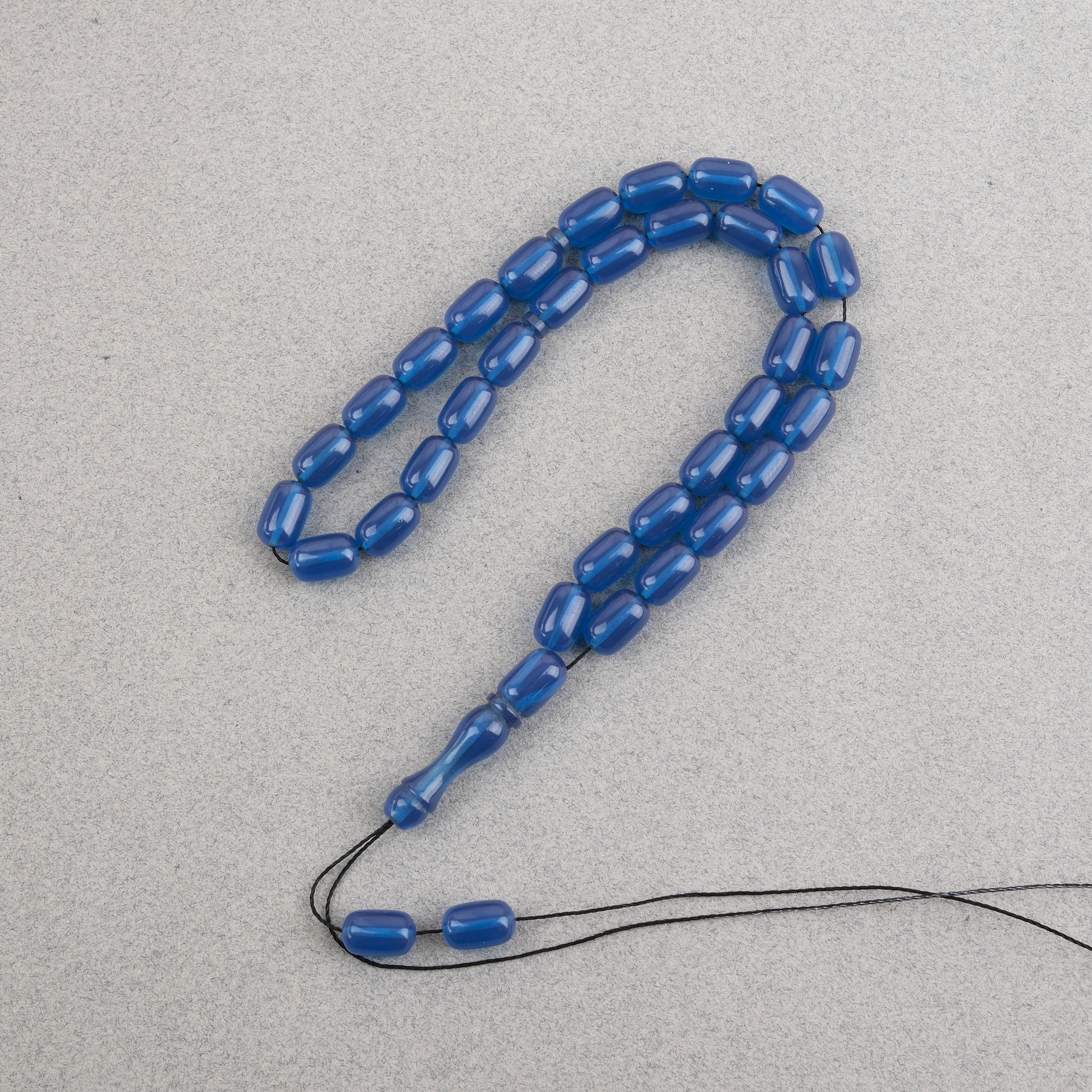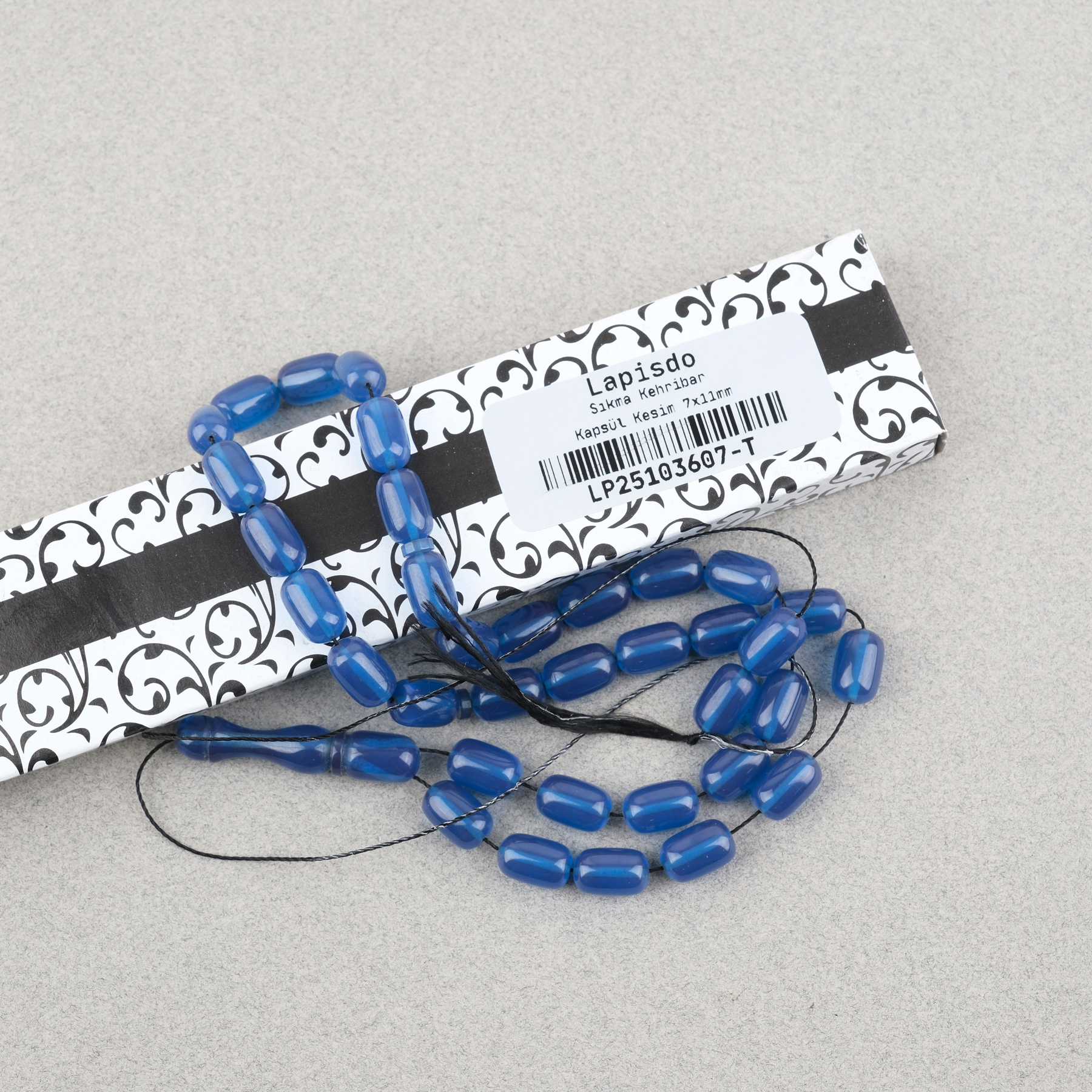 Sıkma Kehribar Kapsül Kesim 7x11mm Tesbih Püskülsüz Mavi