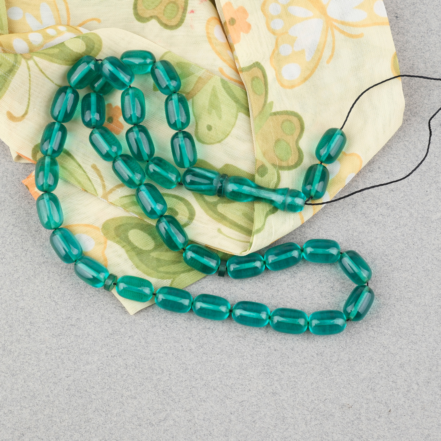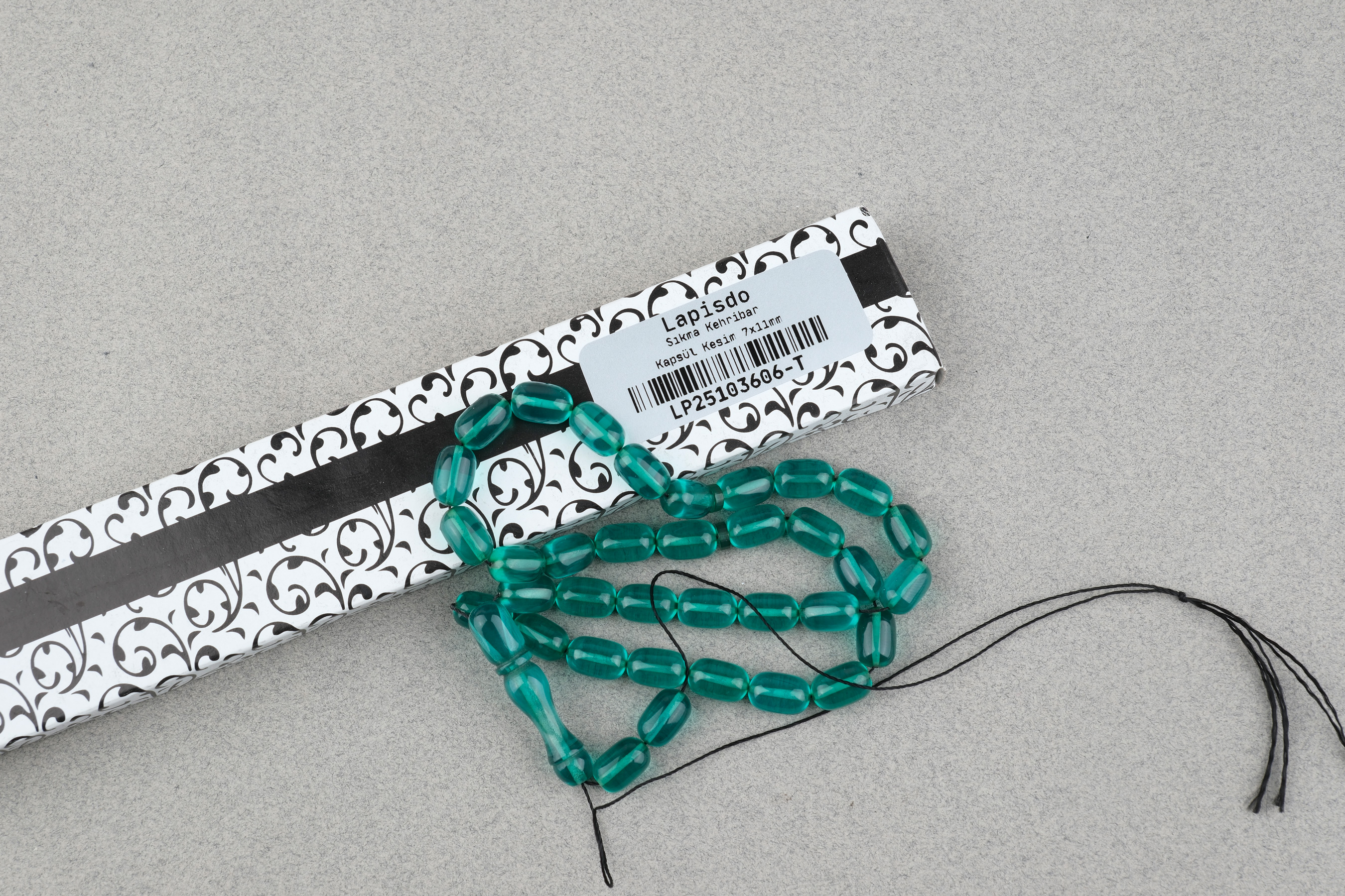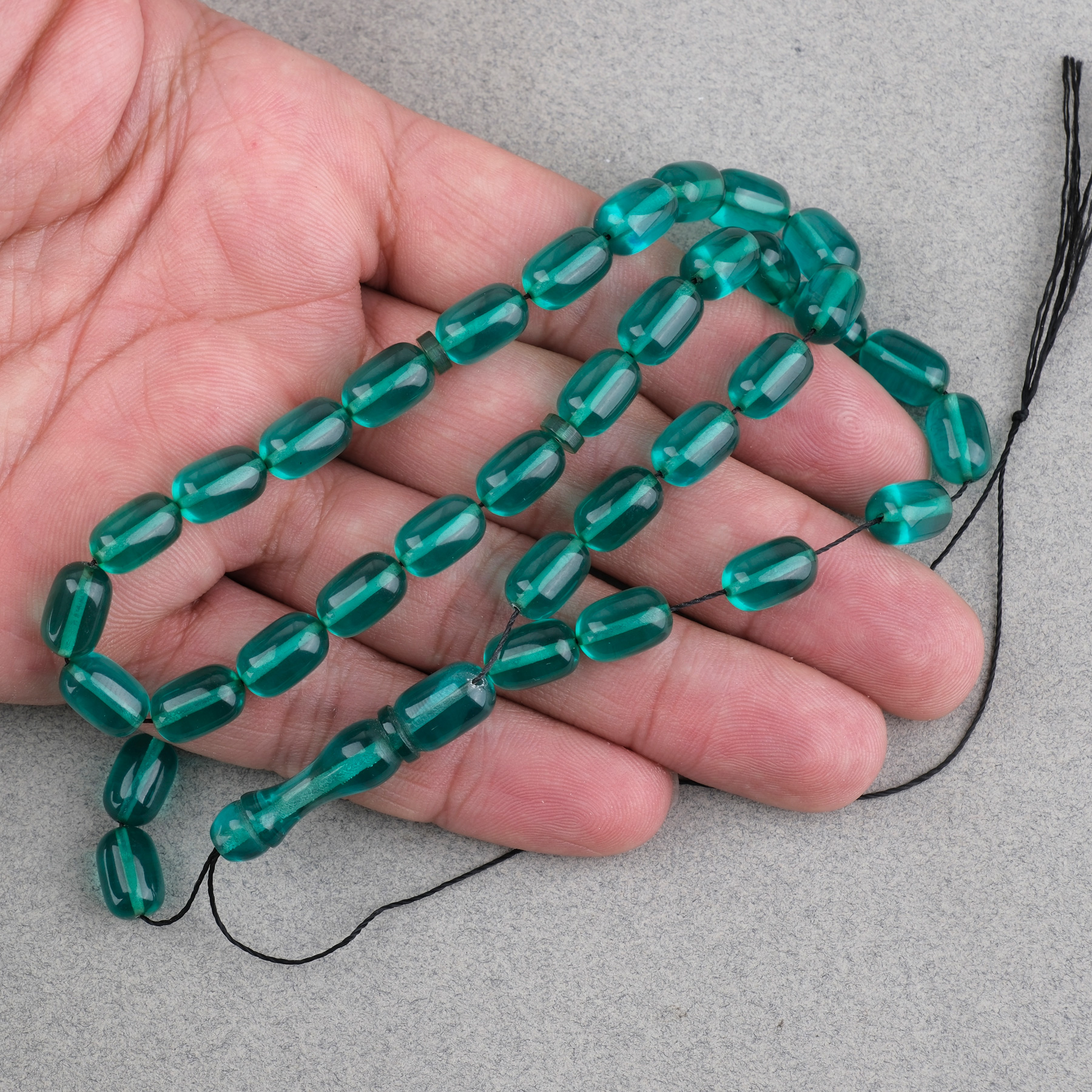 Sıkma Kehribar Kapsül Kesim 7x11mm Tesbih Püskülsüz Yeşil