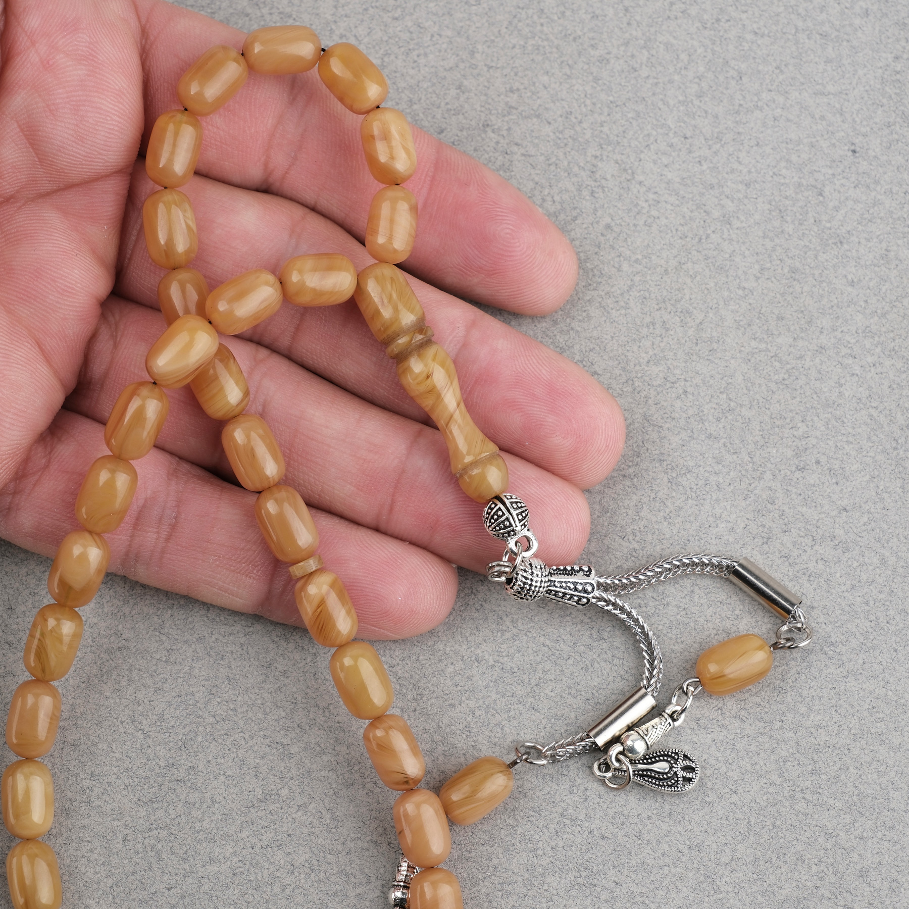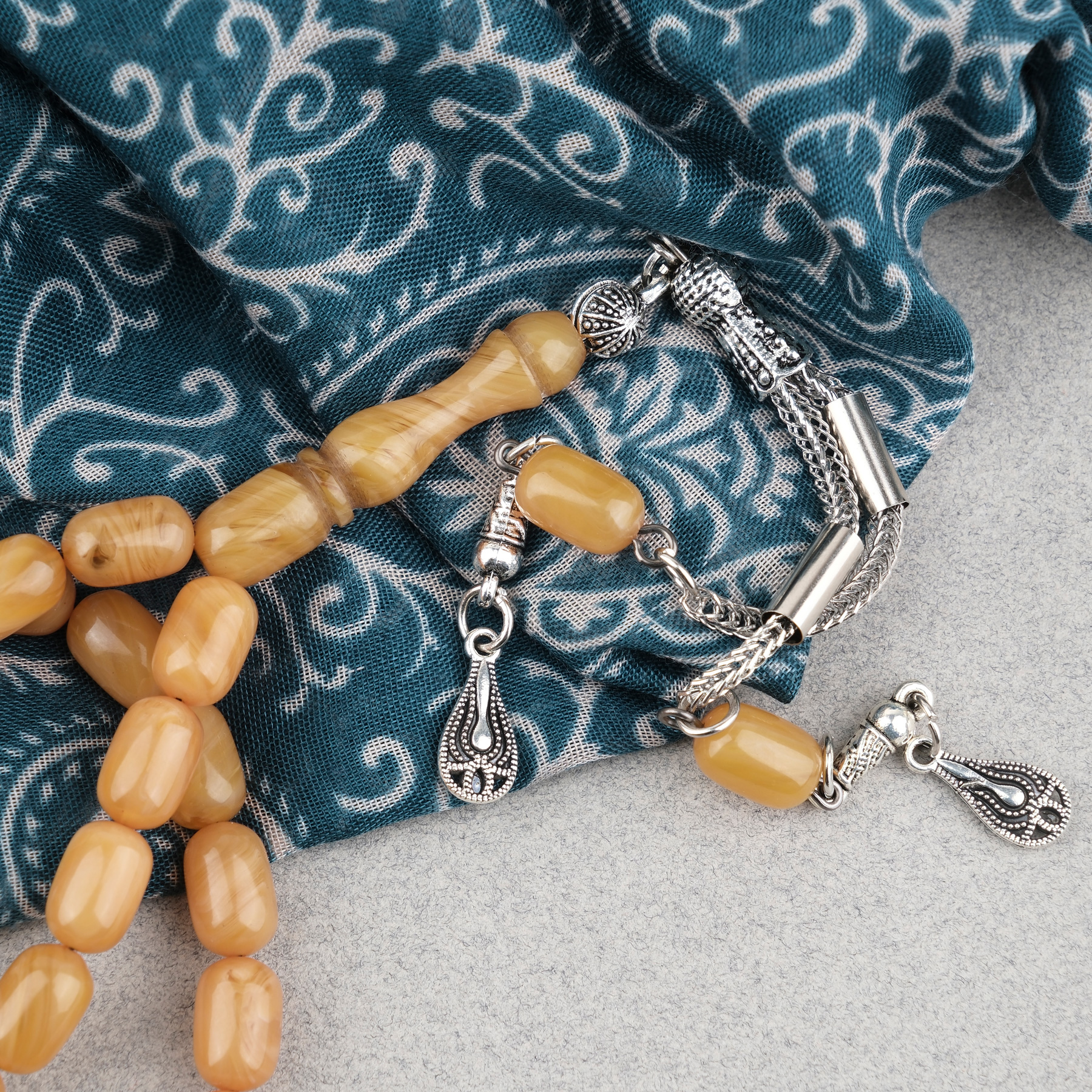 Sıkma Kehribar Kapsül Kesim Alpaka Püsküllü 7x11mm Tesbih Hardal