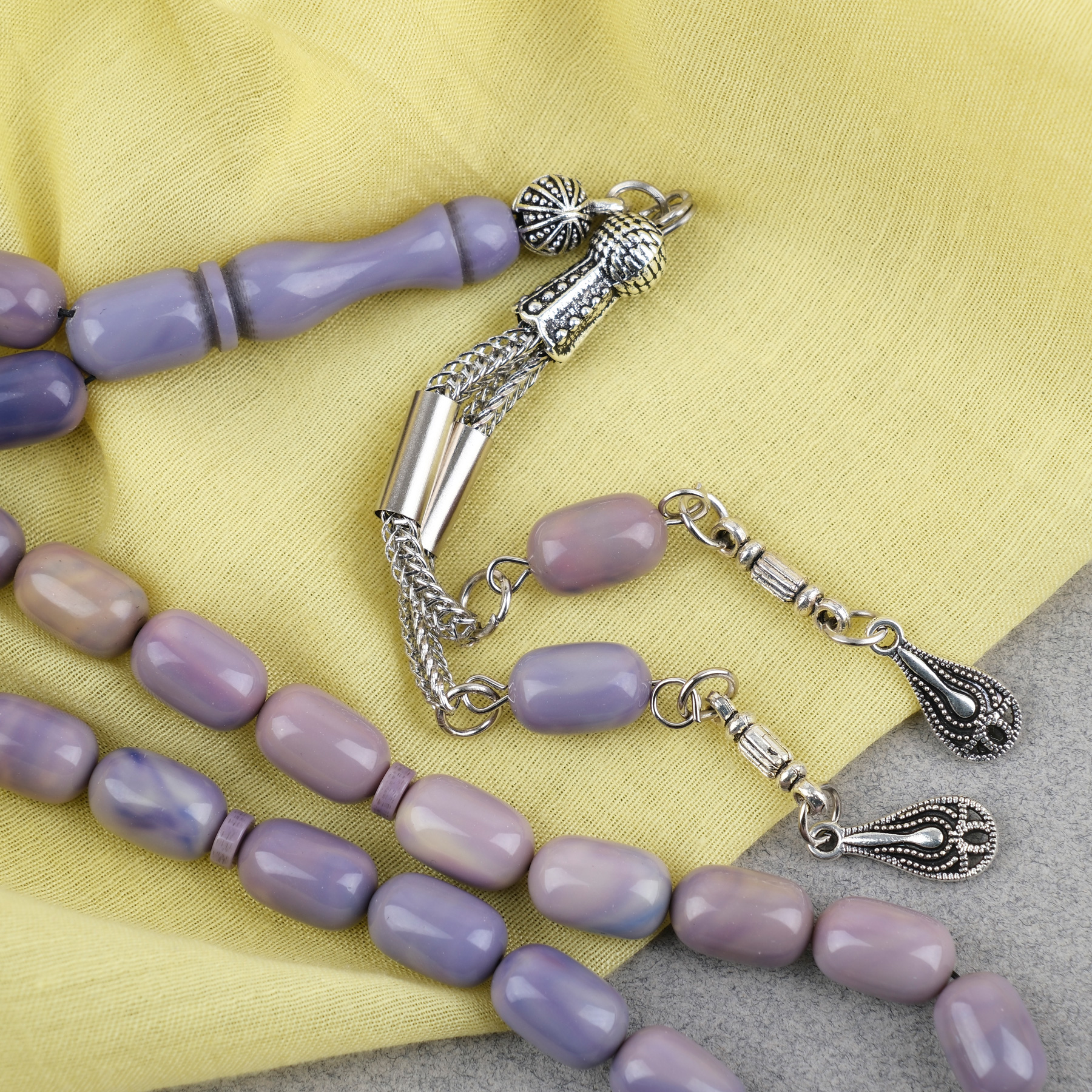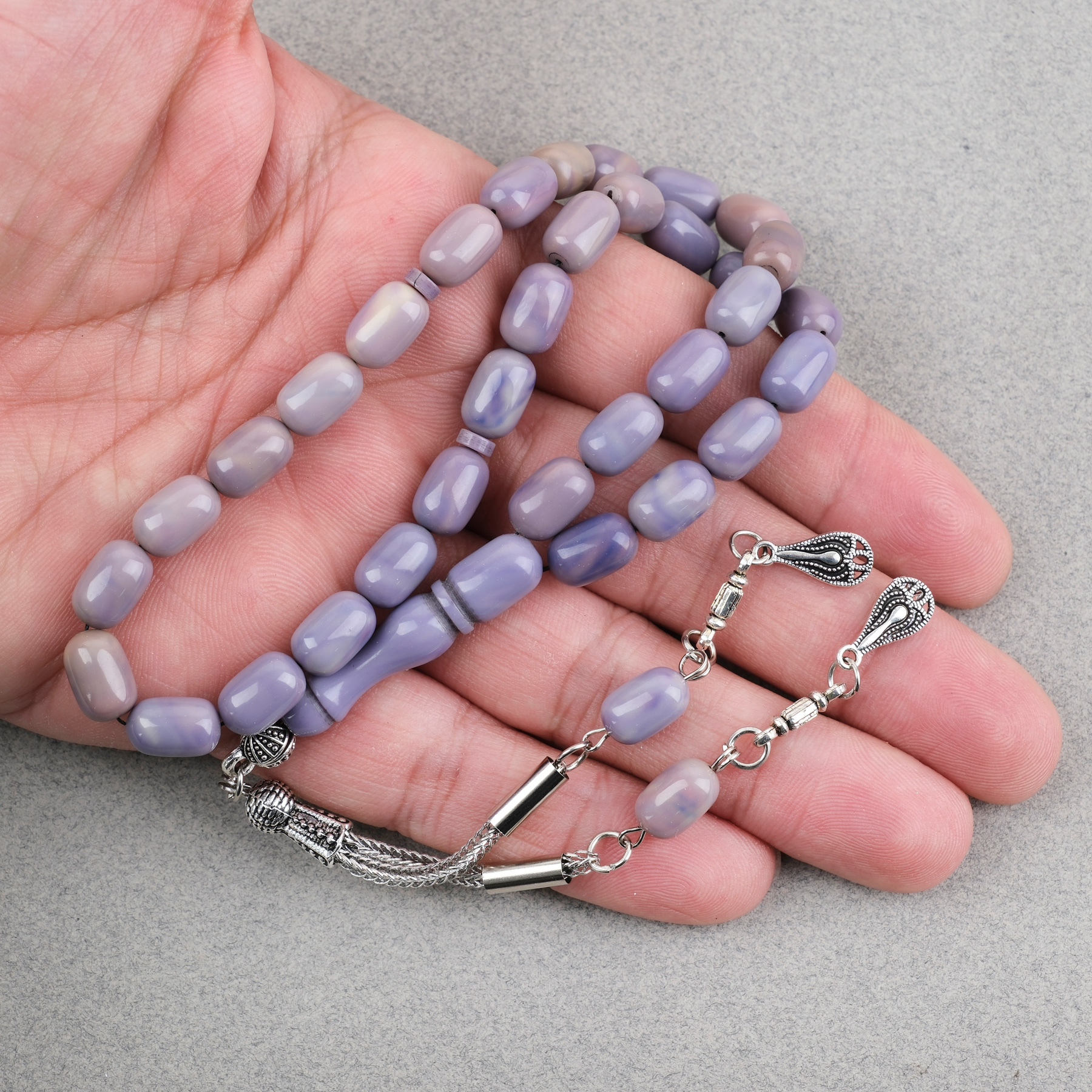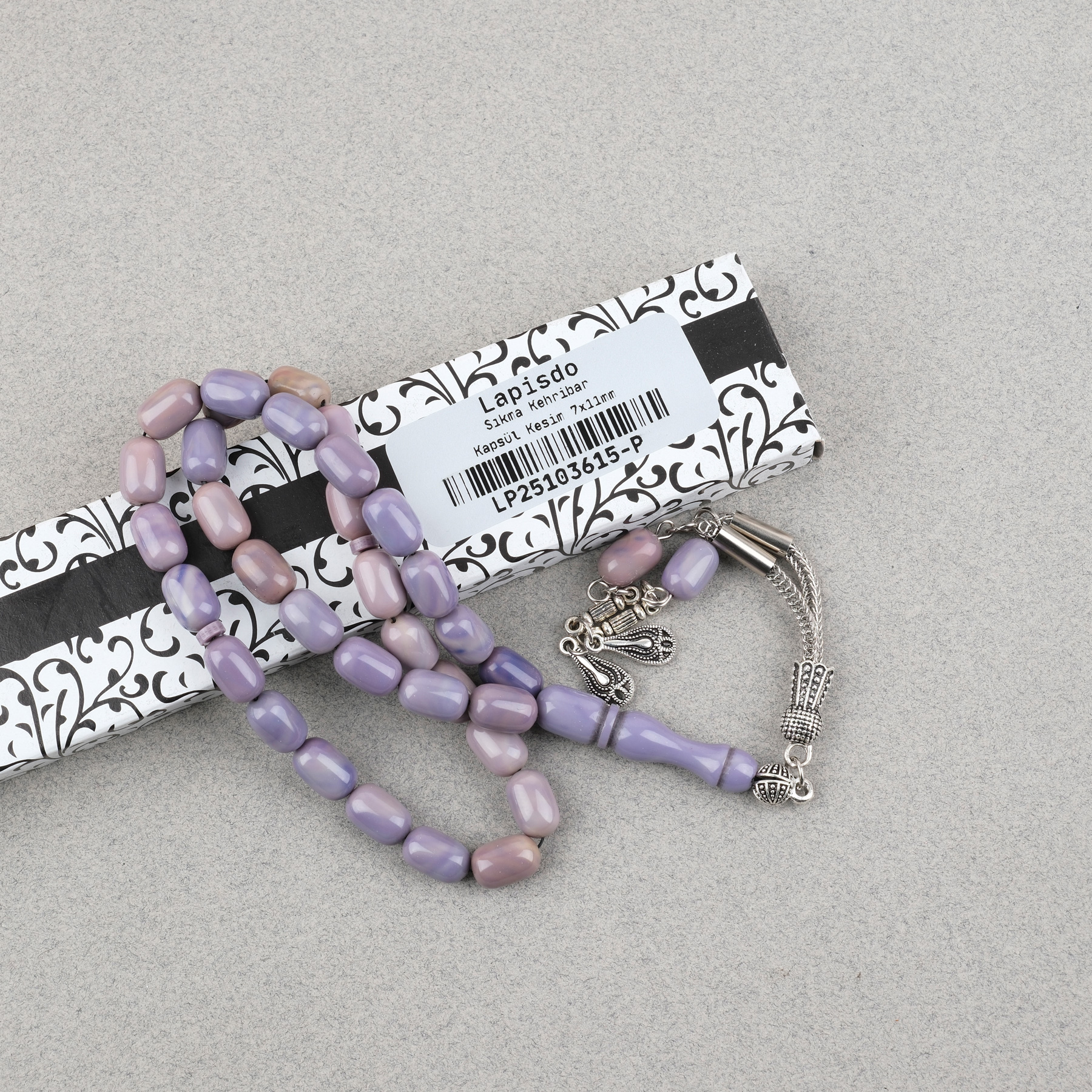 Sıkma Kehribar Kapsül Kesim Alpaka Püsküllü 7x11mm Tesbih Lila