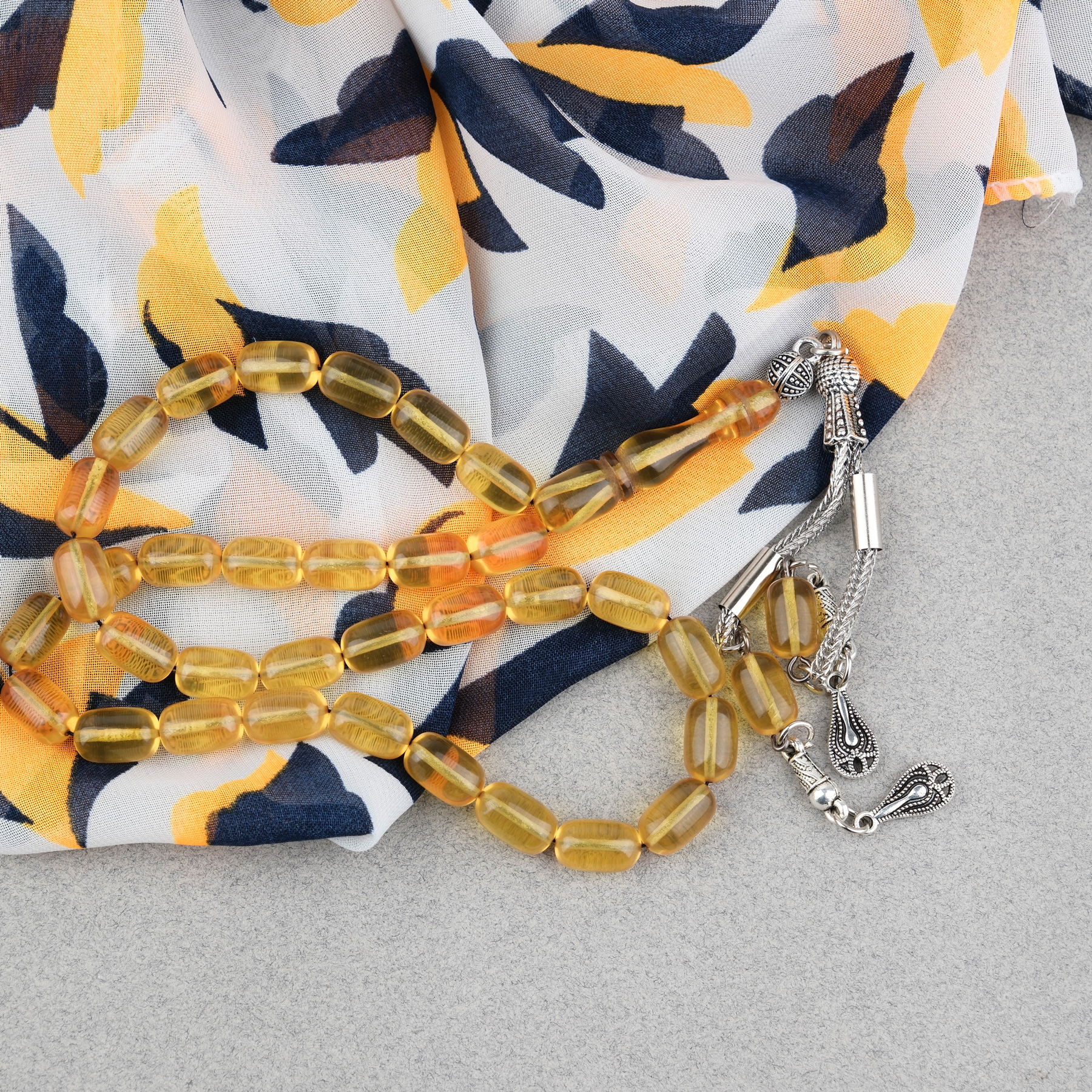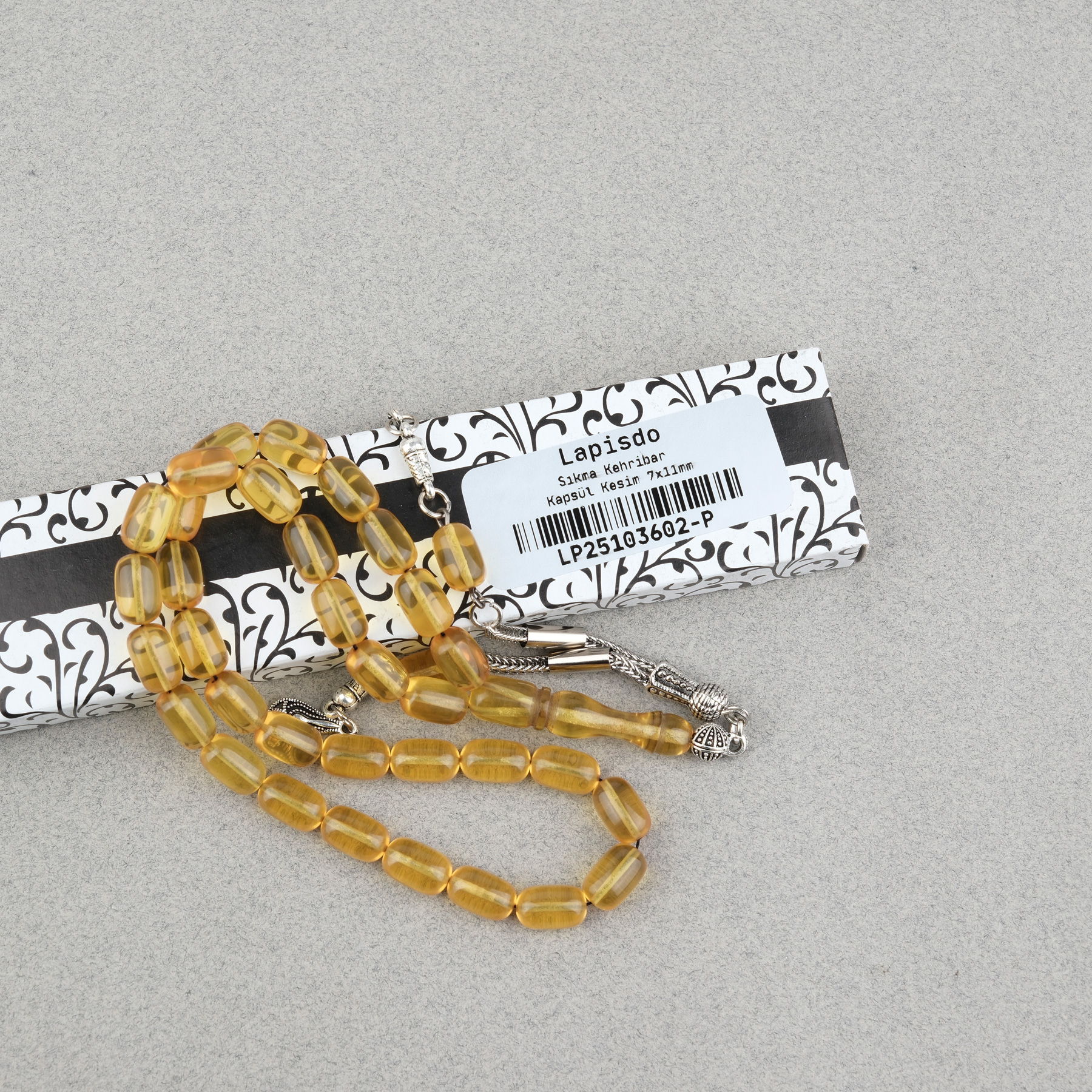 Sıkma Kehribar Kapsül Kesim Alpaka Püsküllü 7x11mm Tesbih Sarı