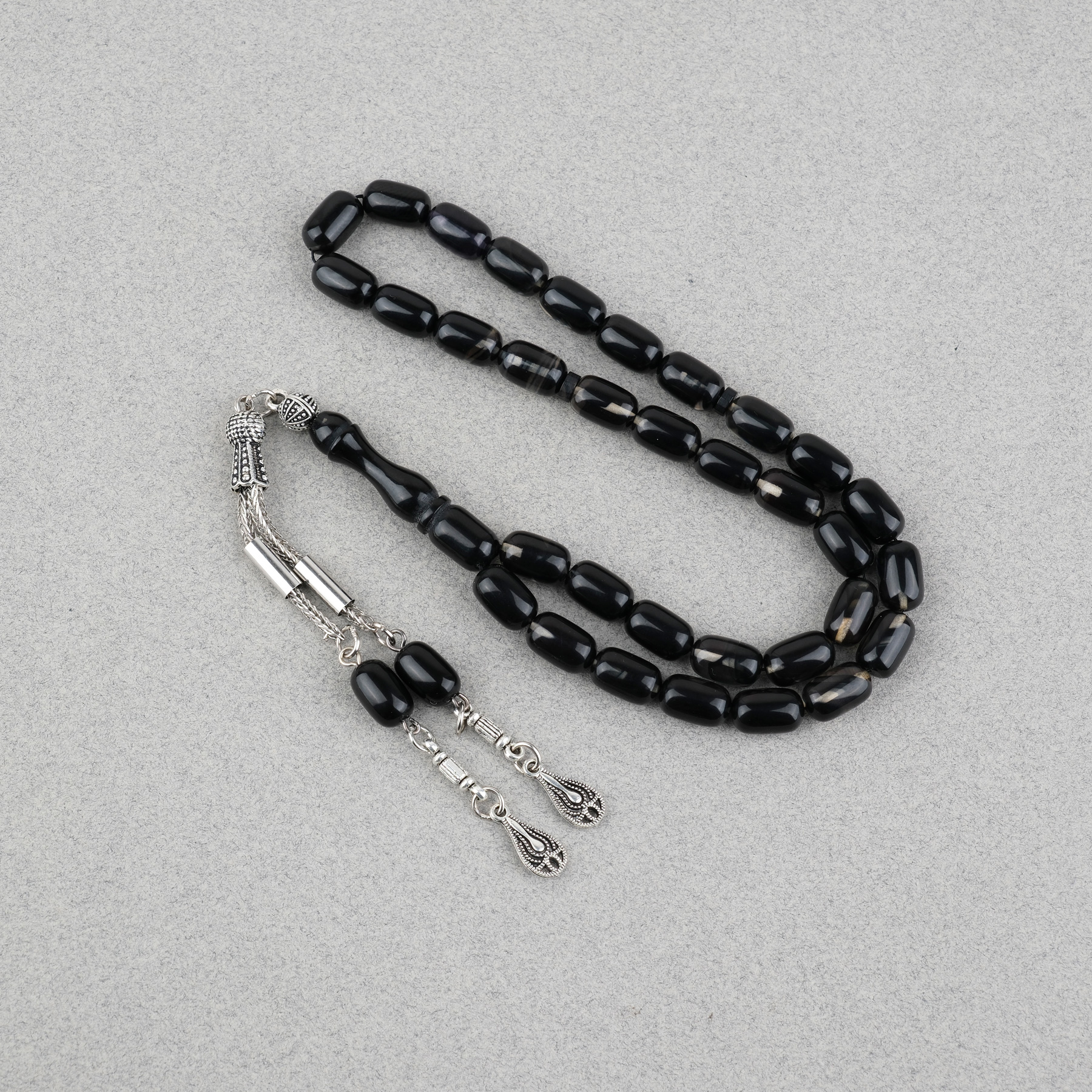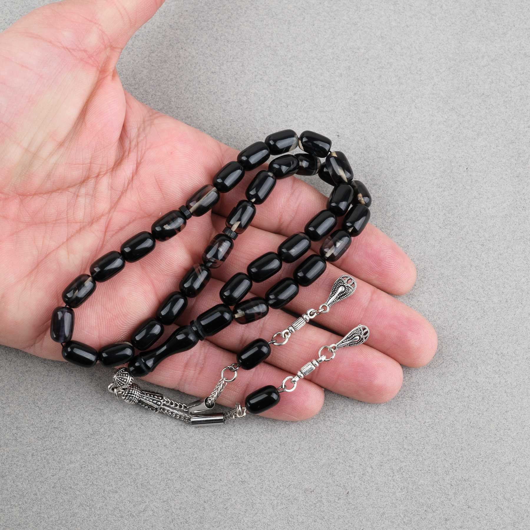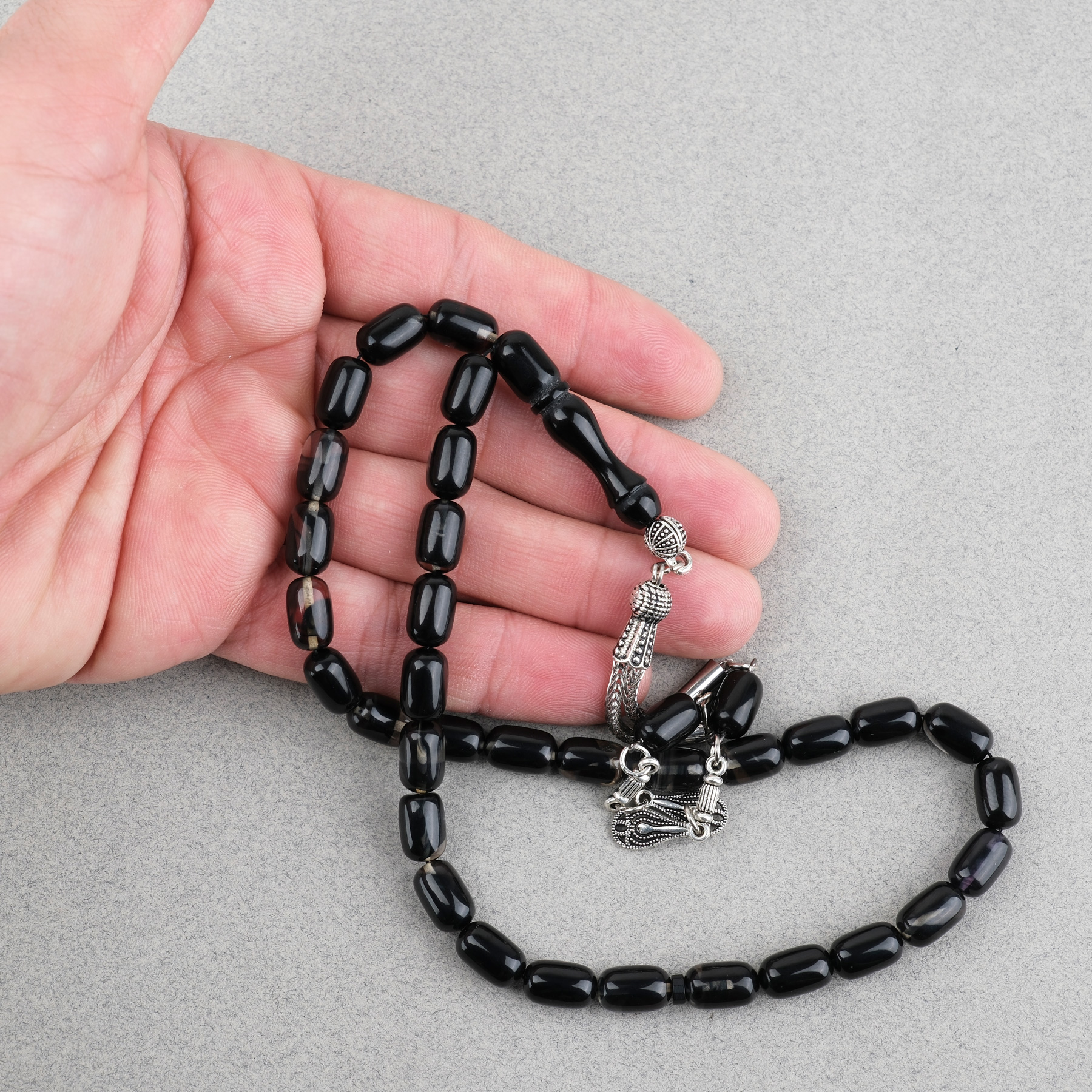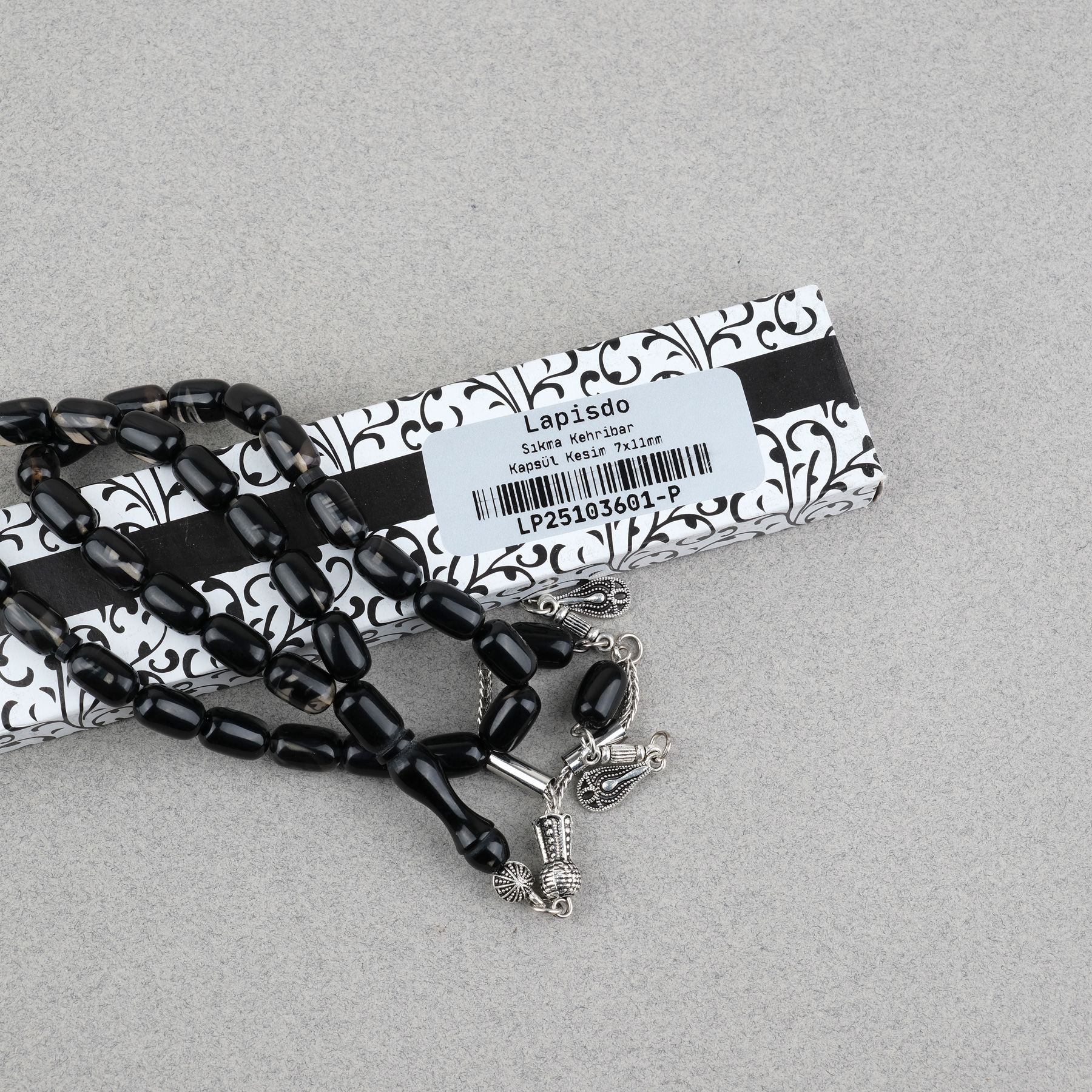 Sıkma Kehribar Kapsül Kesim Alpaka Püsküllü 7x11mm Tesbih Siyah