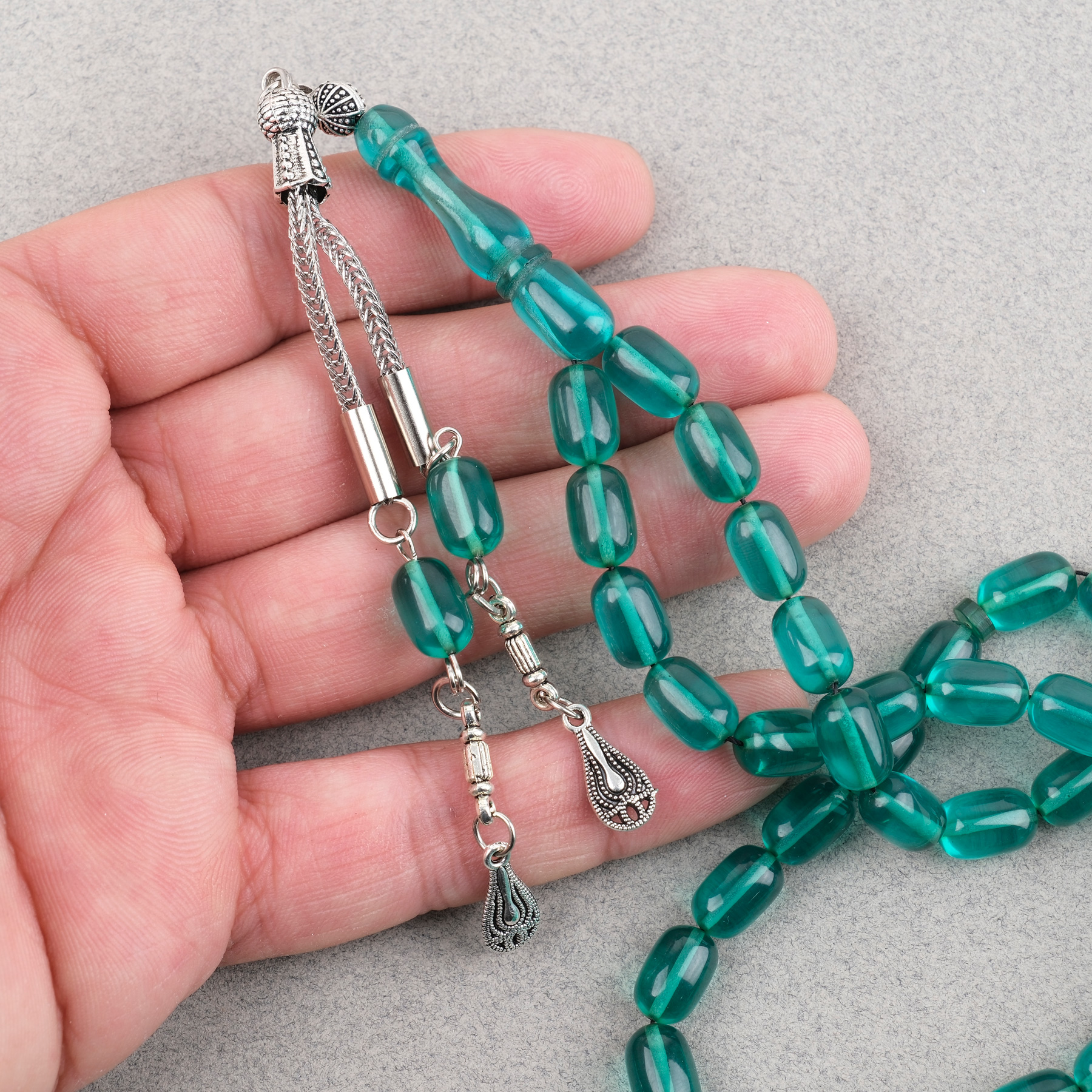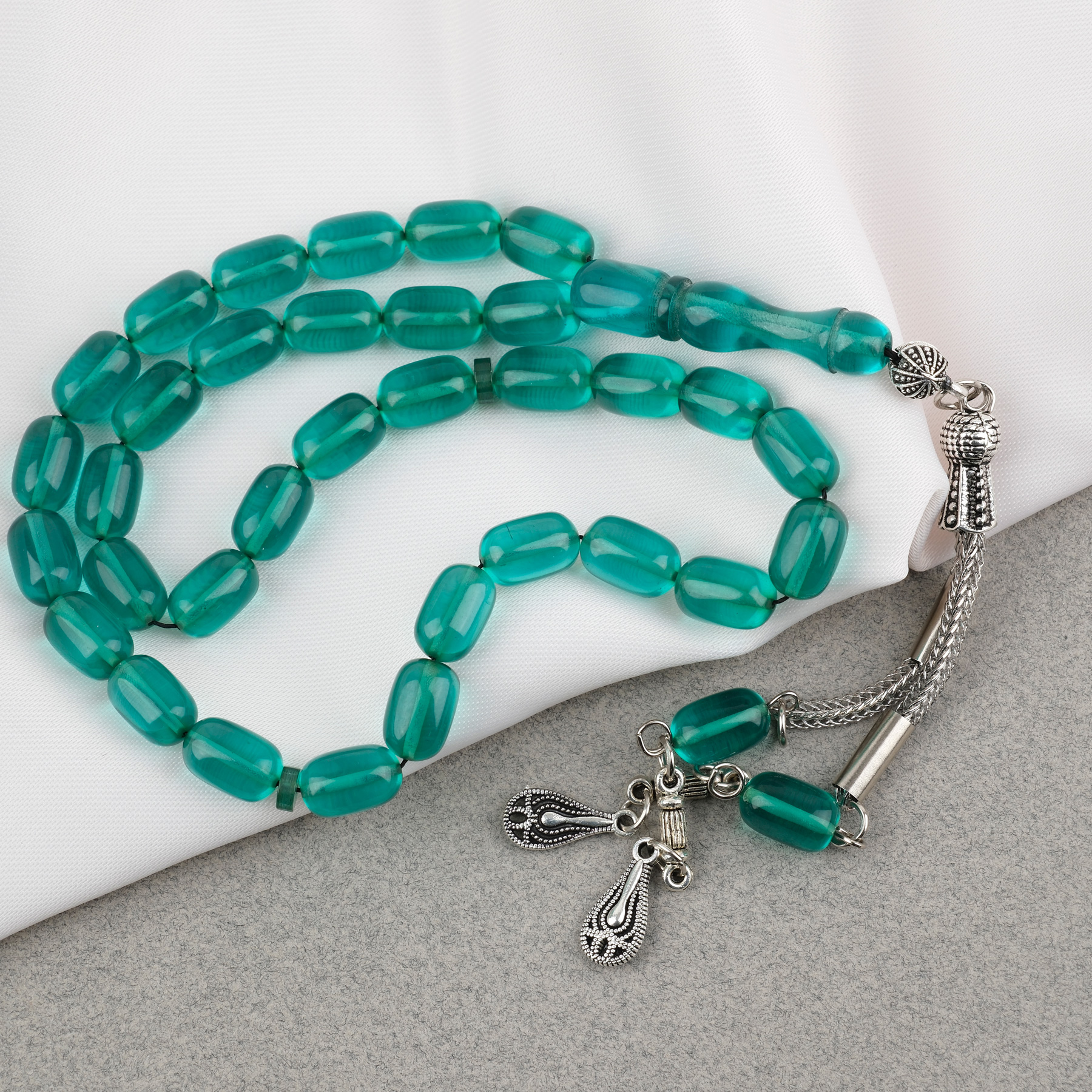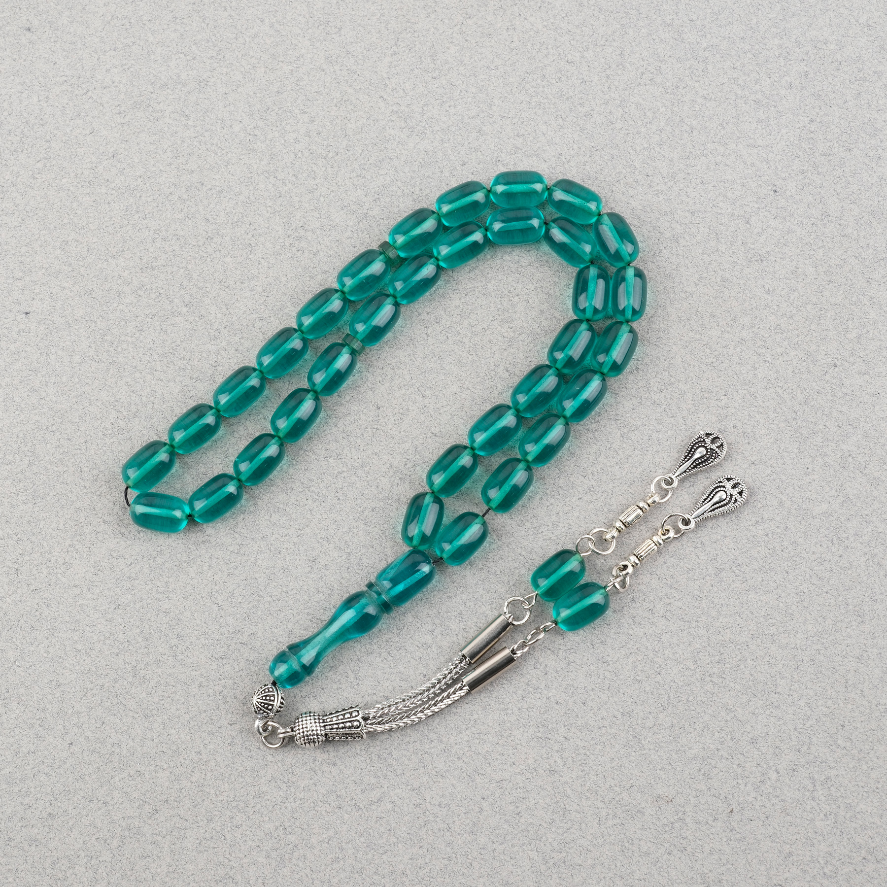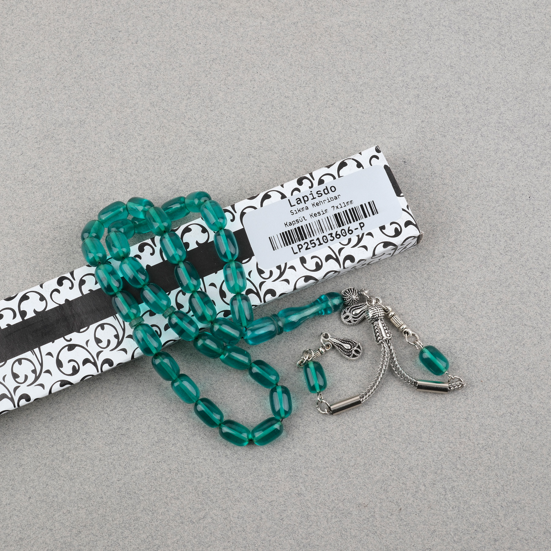 Sıkma Kehribar Kapsül Kesim Alpaka Püsküllü 7x11mm Tesbih Yeşil