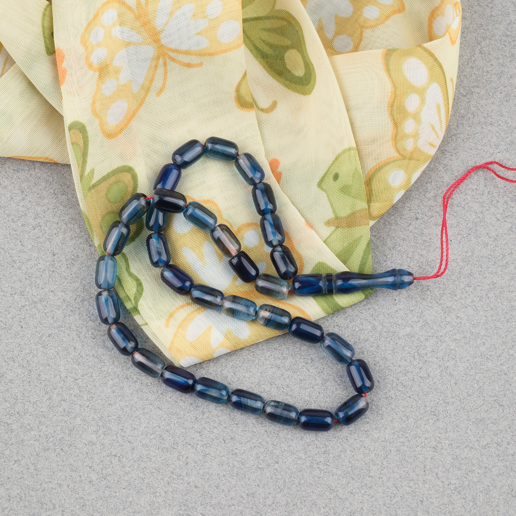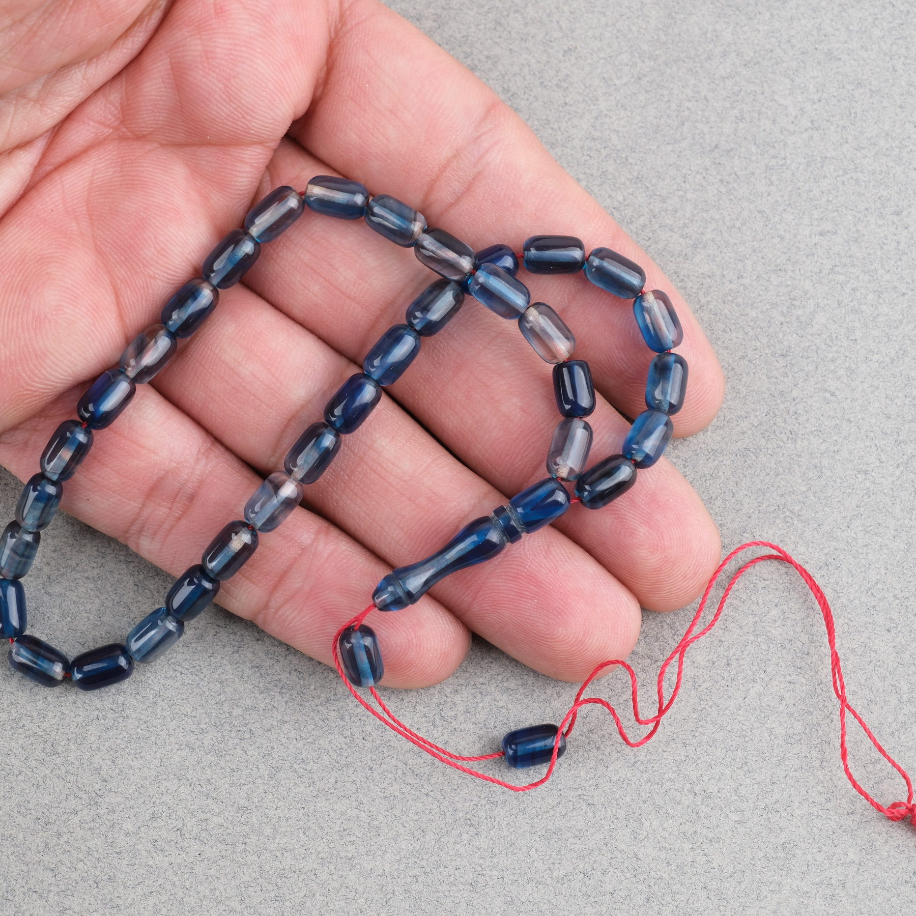 Sıkma Kehribar Kapsül Kesim Bilek Boy 5x8mm Tesbih Püskülsüz Mavi