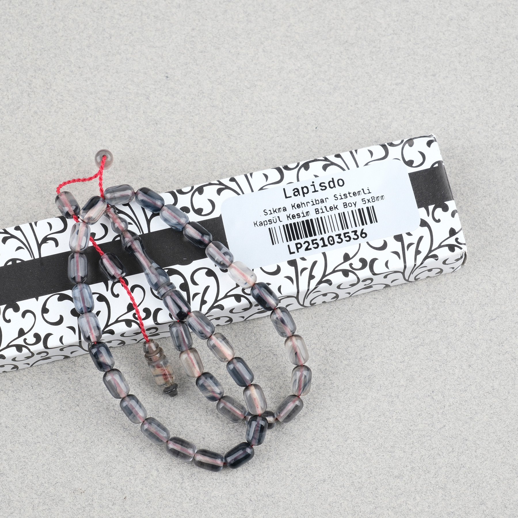 Sıkma Kehribar Kapsül Kesim Sistemli Bilek Boy 5x8mm Tesbih Gri