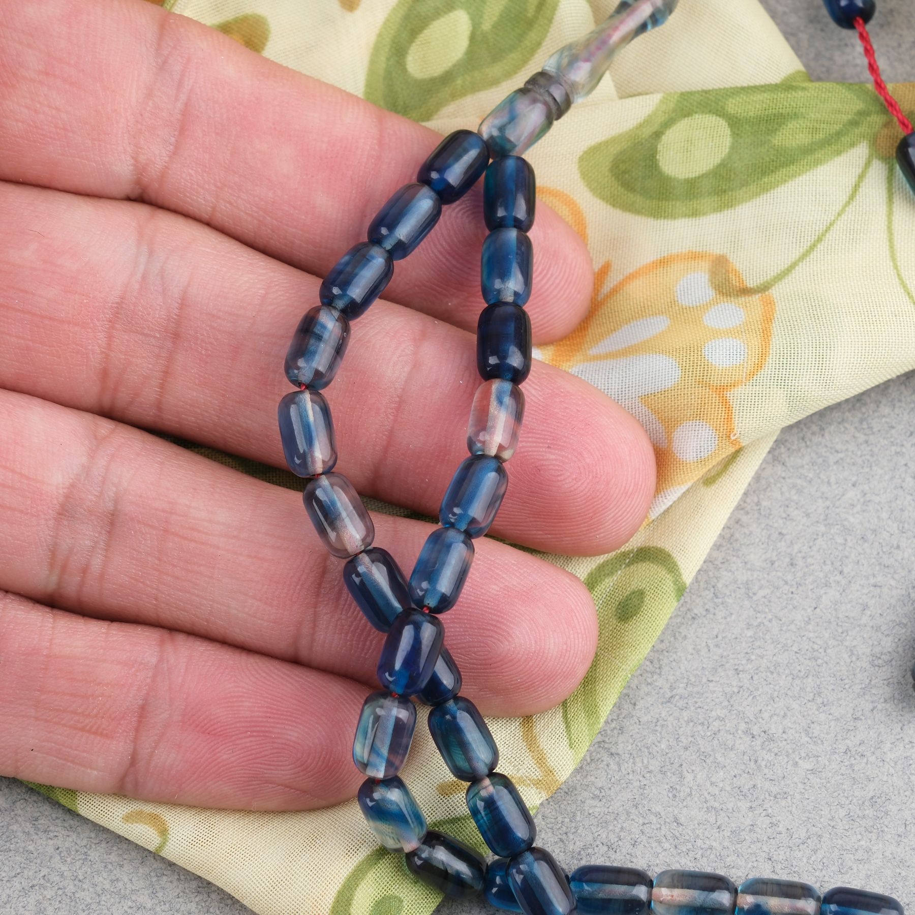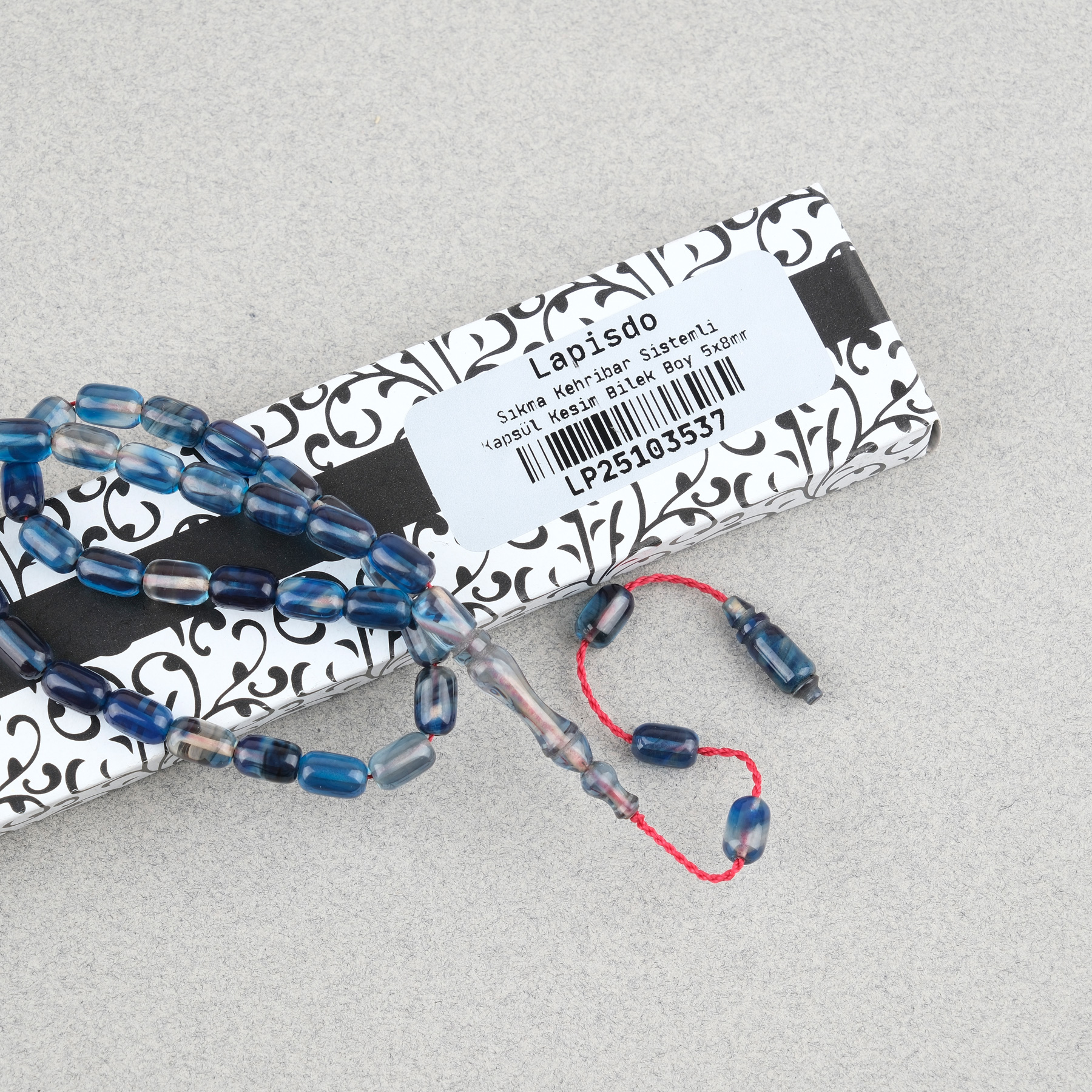 Sıkma Kehribar Kapsül Kesim Sistemli Bilek Boy 5x8mm Tesbih Mavi