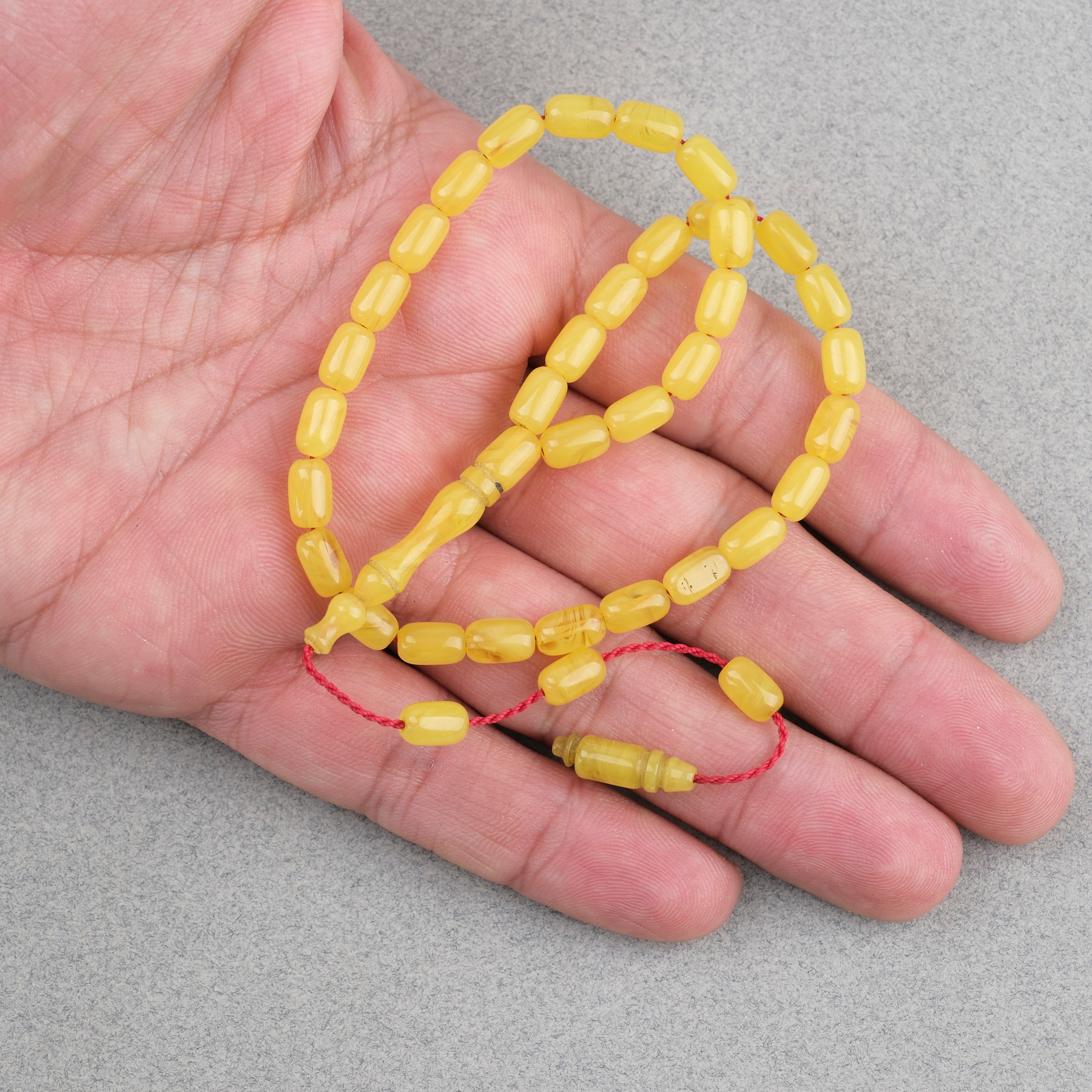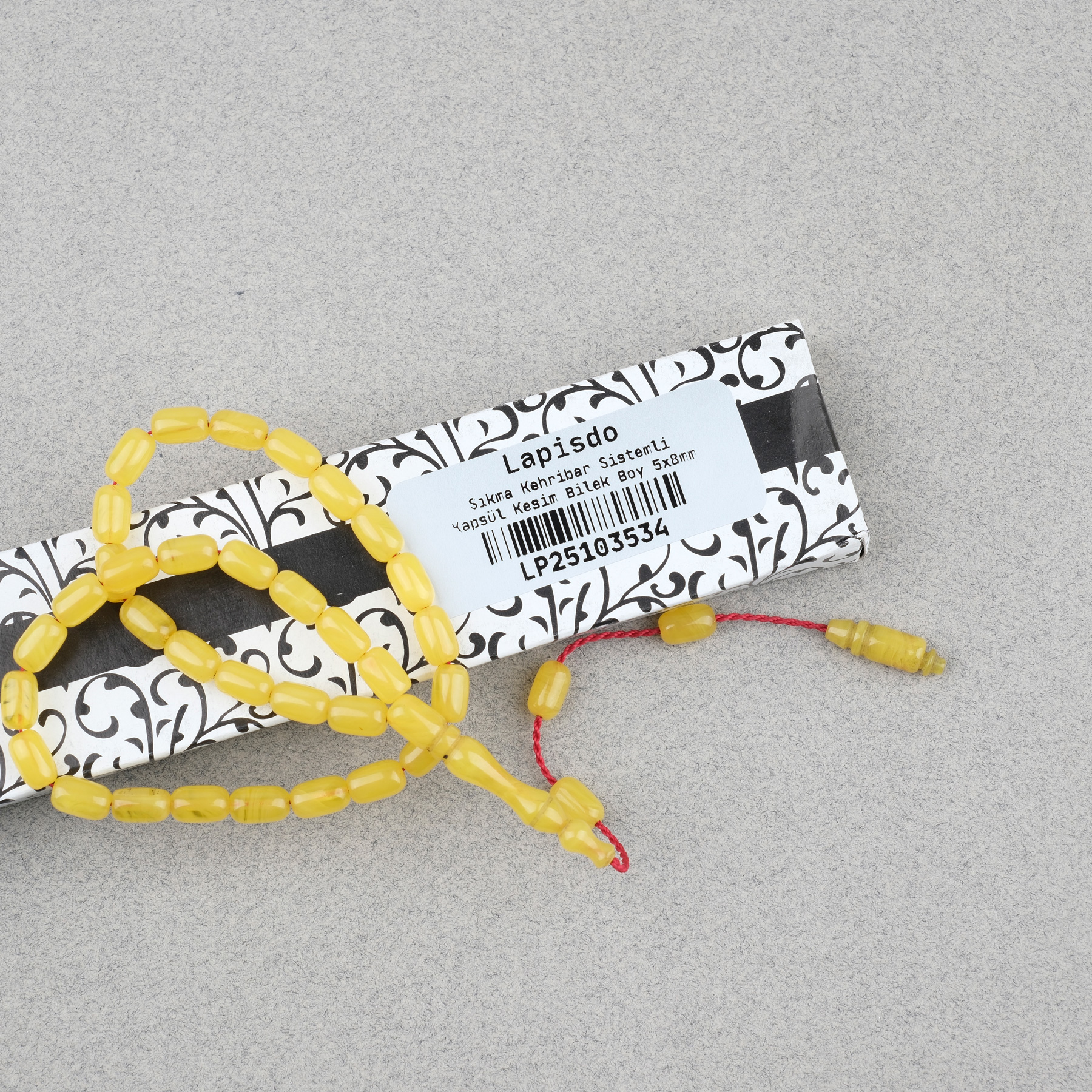 Sıkma Kehribar Kapsül Kesim Sistemli Bilek Boy 5x8mm Tesbih Sarı