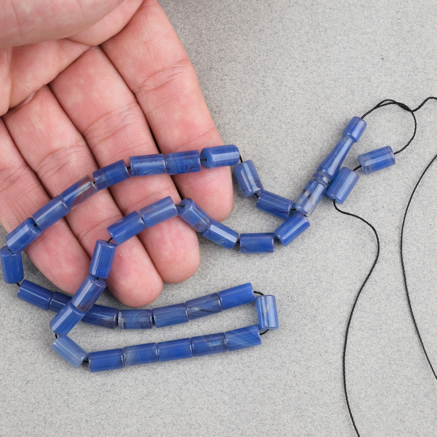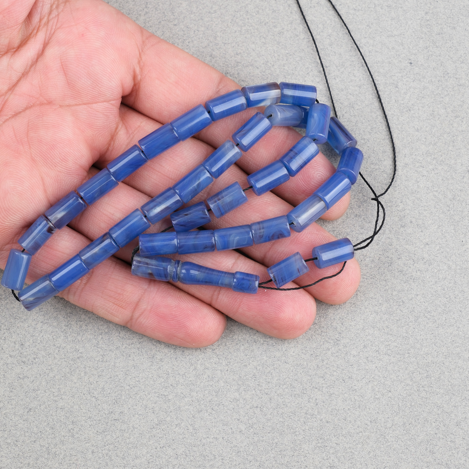Sıkma Kehribar Kesme Kesim 6x10mm Tesbih Püskülsüz Mavi