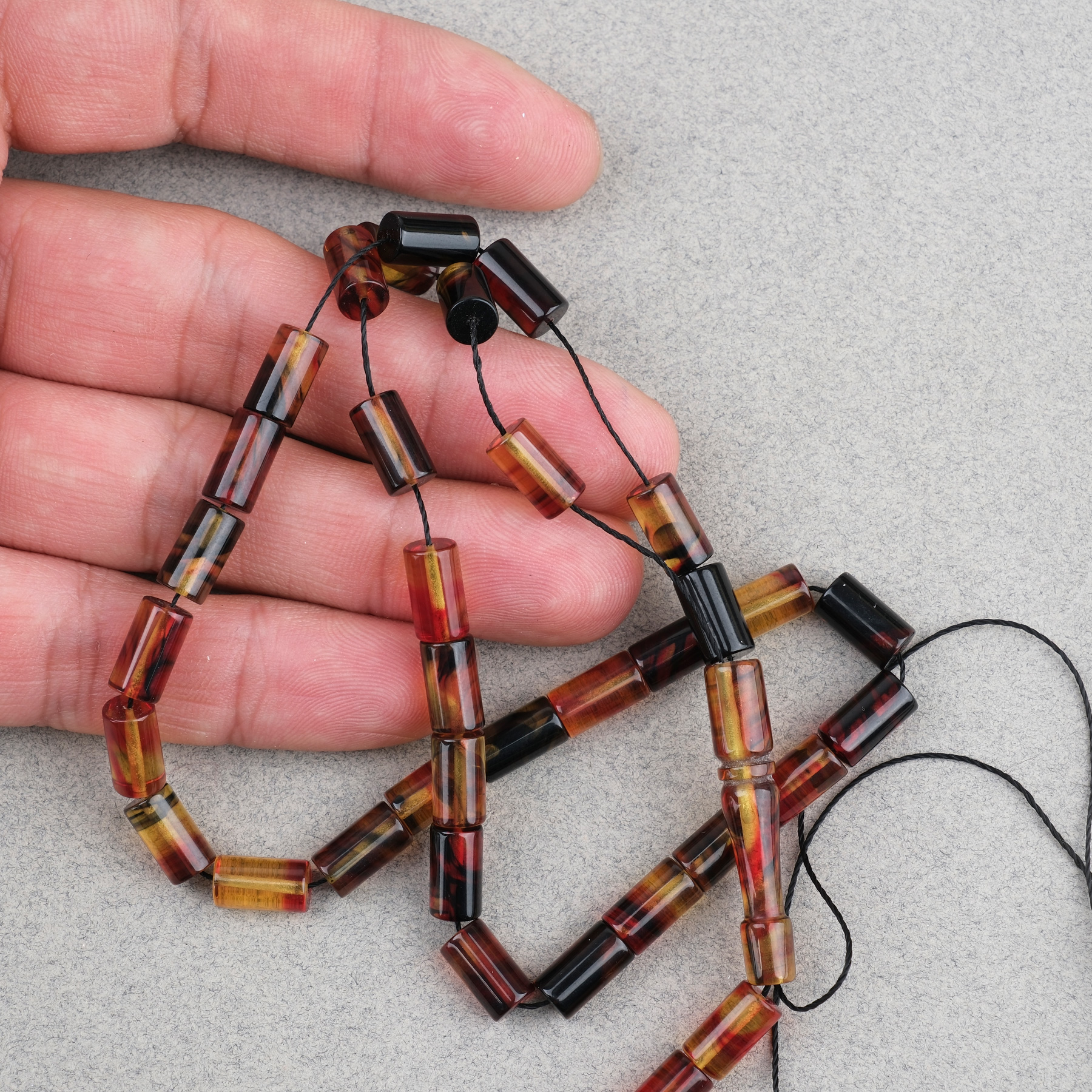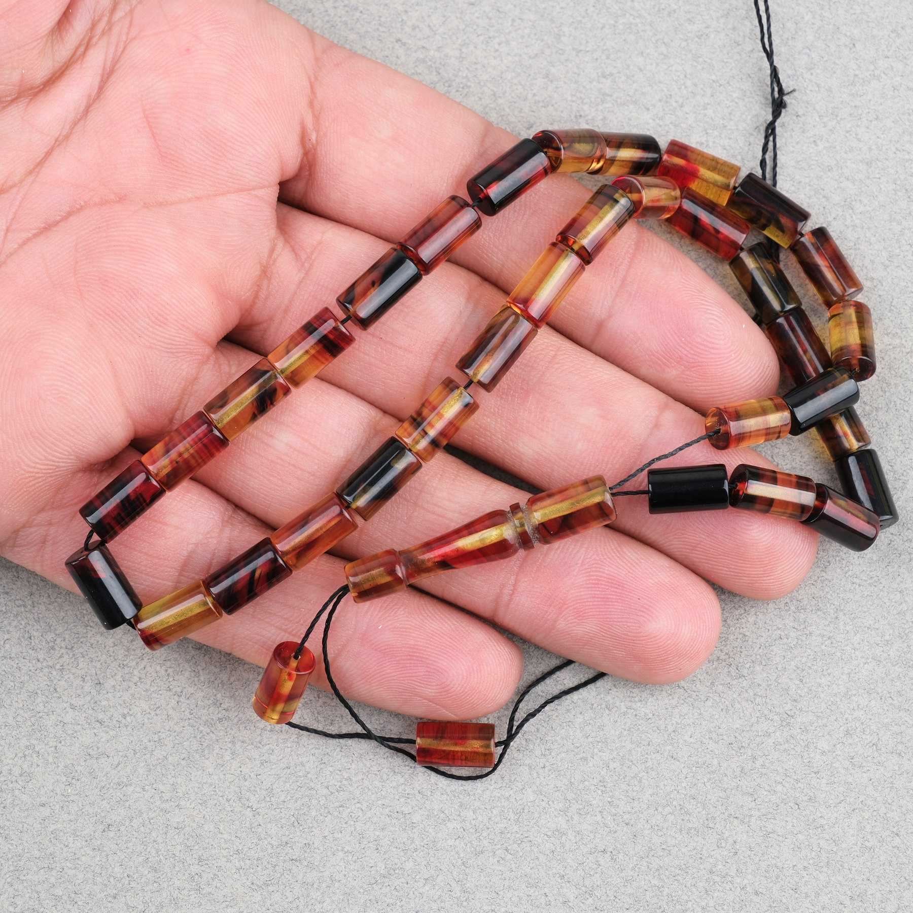 Sıkma Kehribar Kesme Kesim 6x10mm Tesbih Püskülsüz Sarı Kırmızı