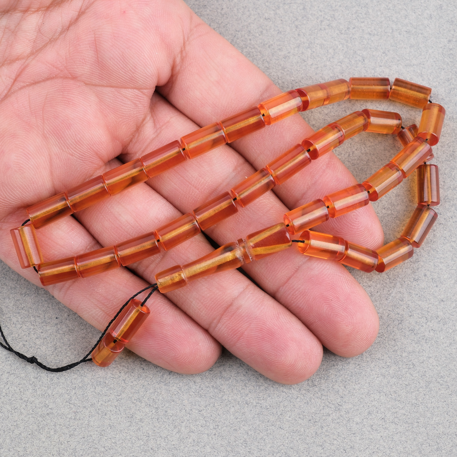 Sıkma Kehribar Kesme Kesim 6x10mm Tesbih Püskülsüz Turuncu