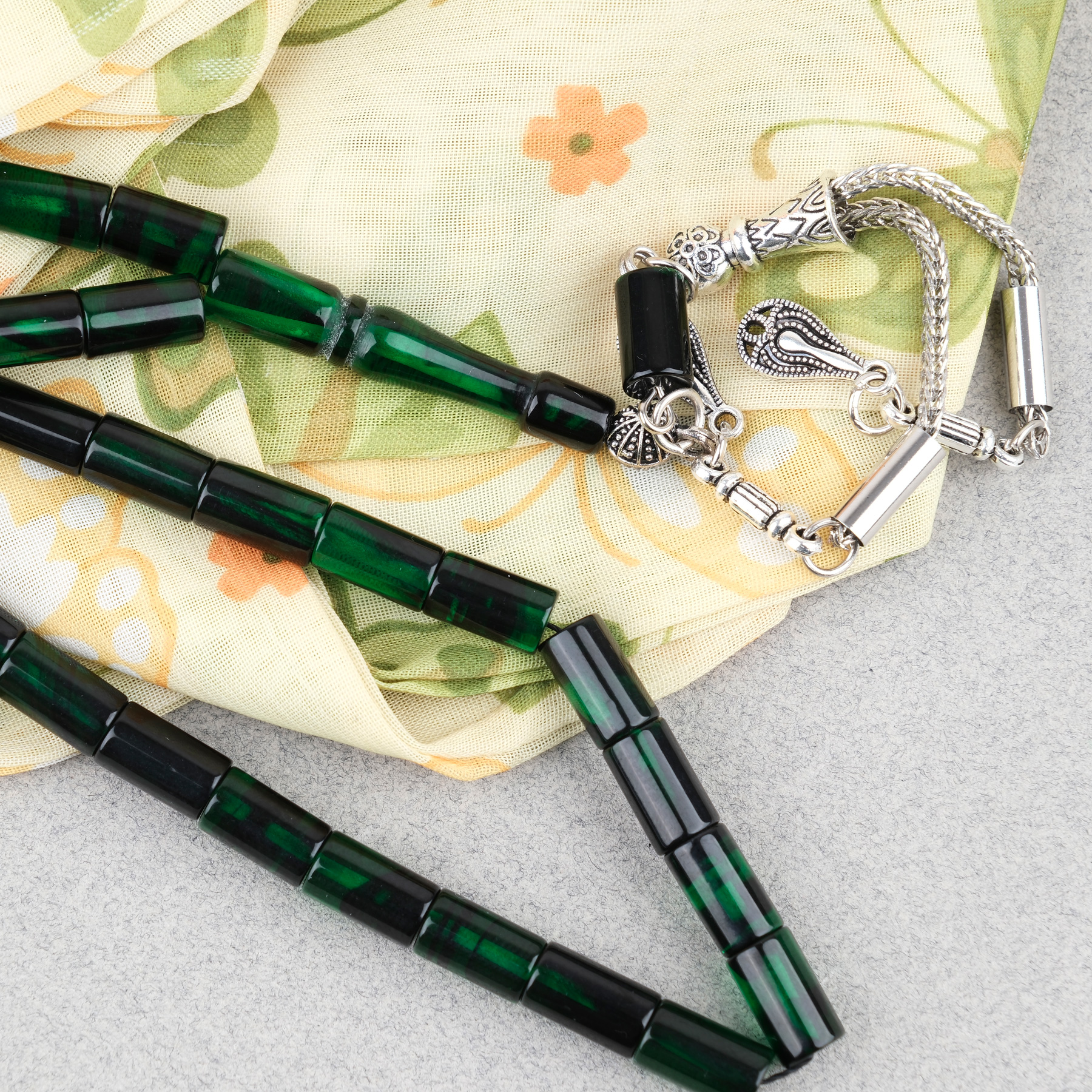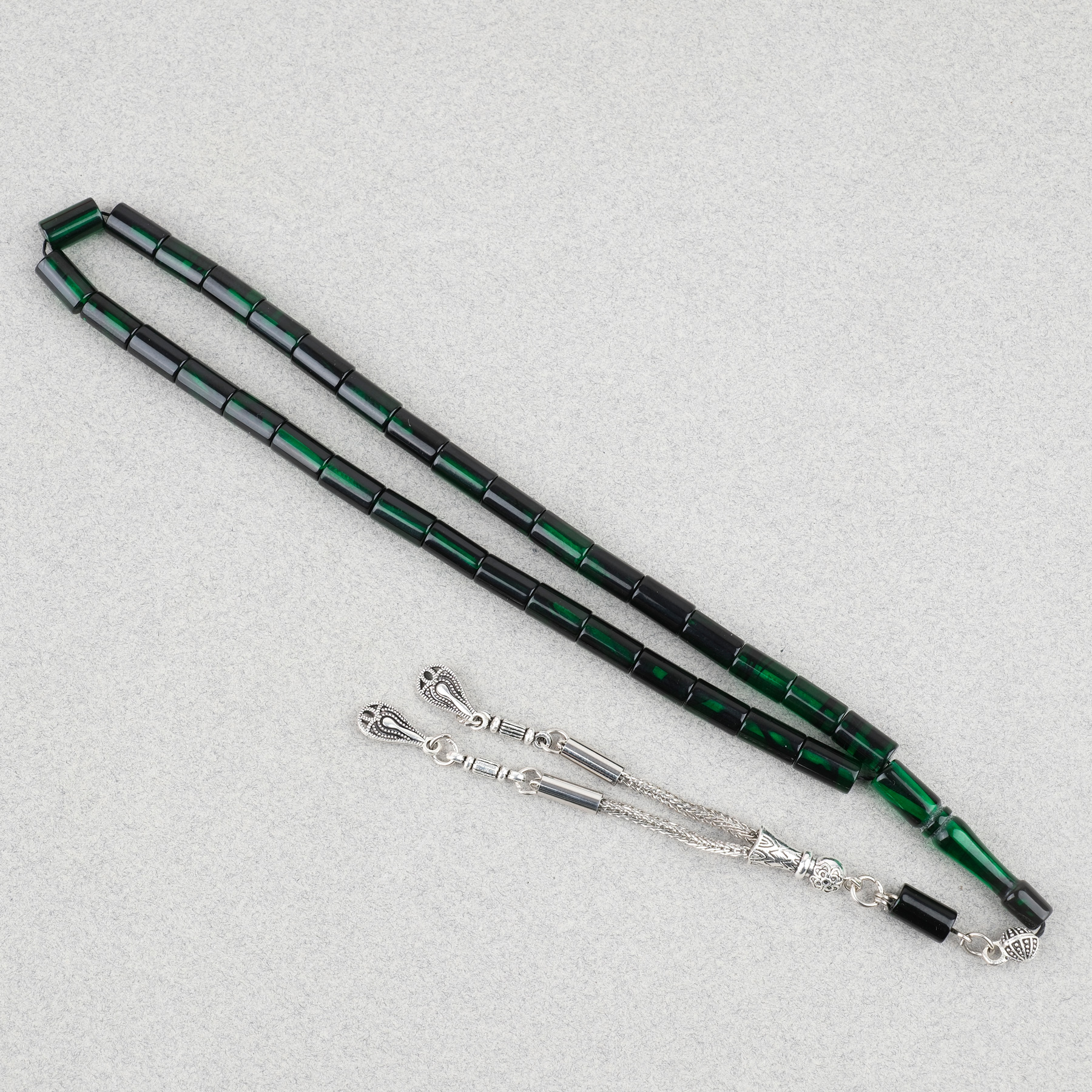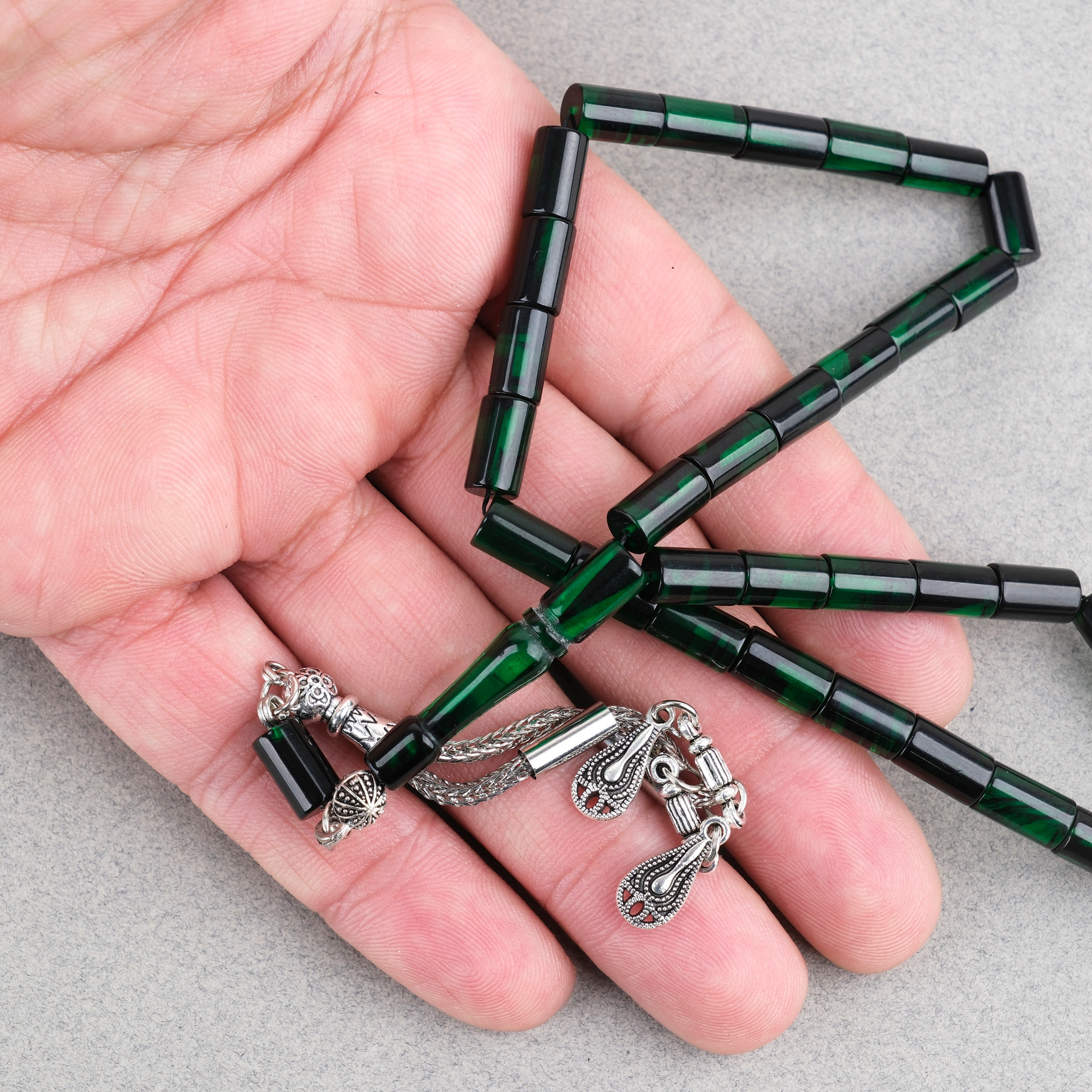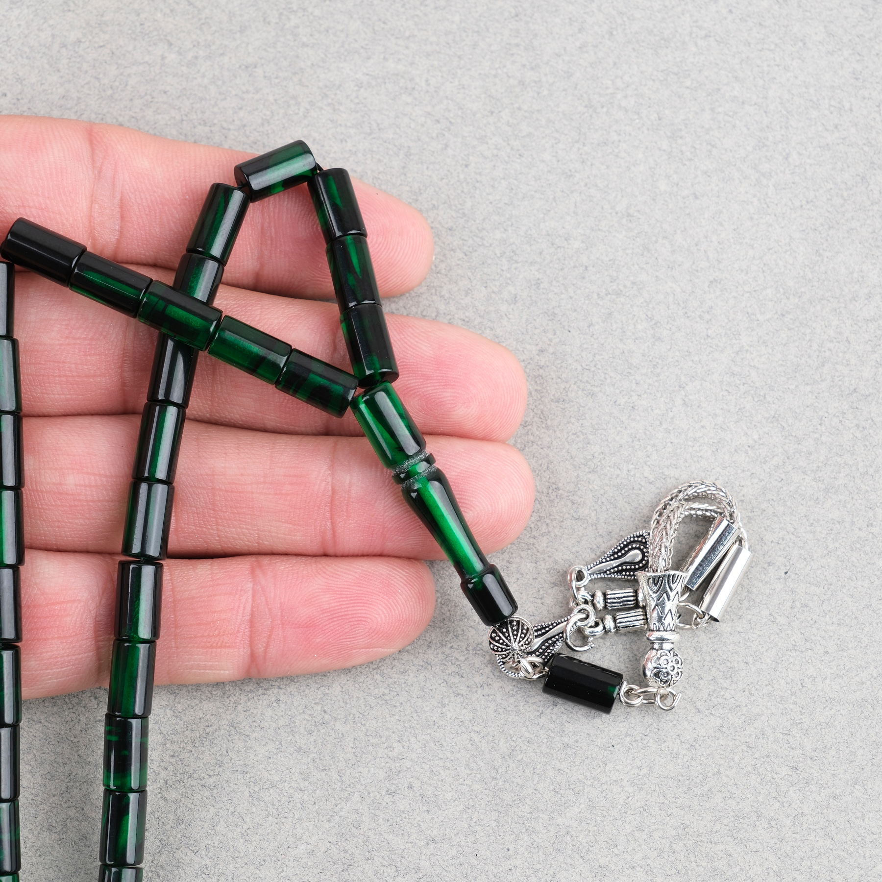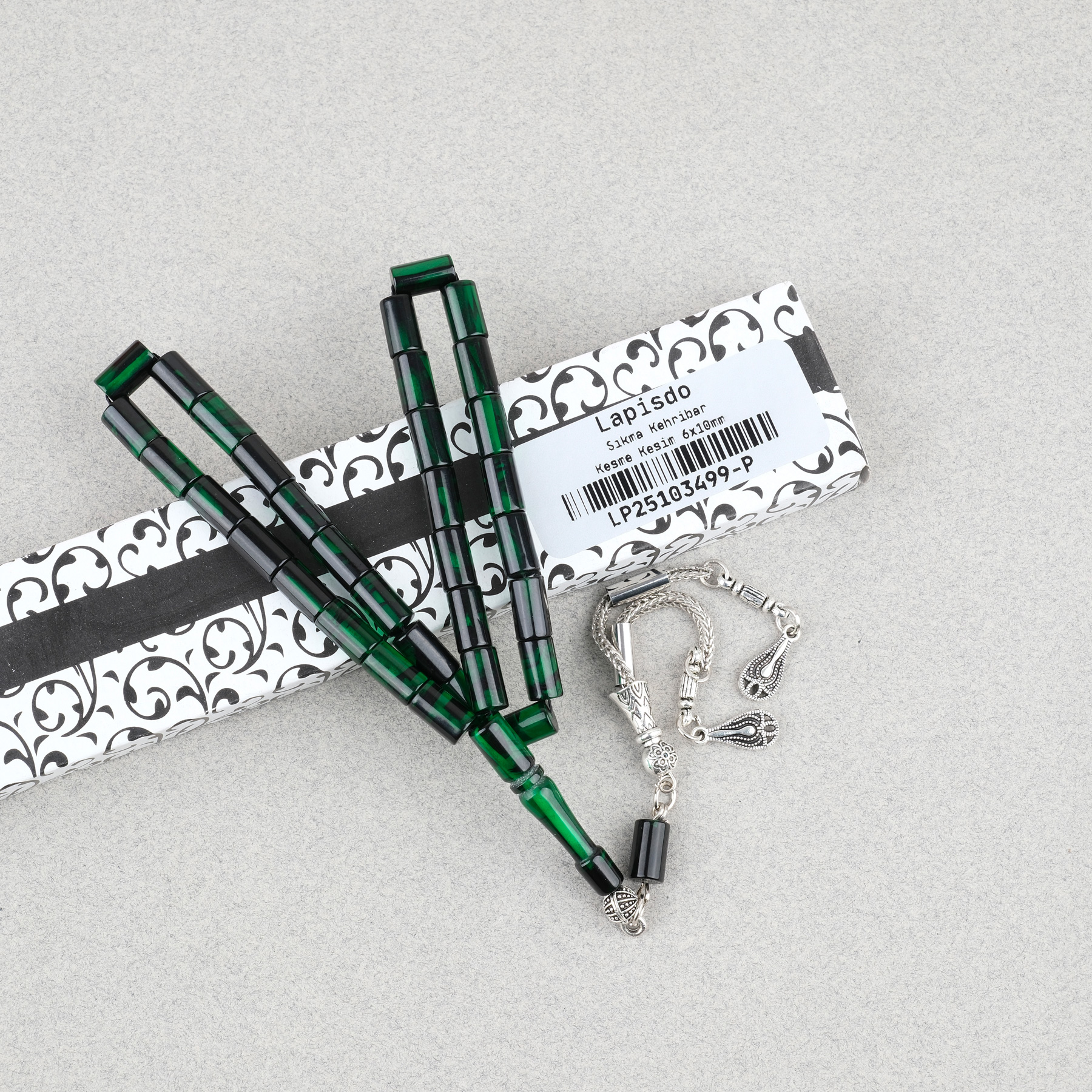 Sıkma Kehribar Kesme Kesim Alpaka Püsküllü 6x10mm Tesbih