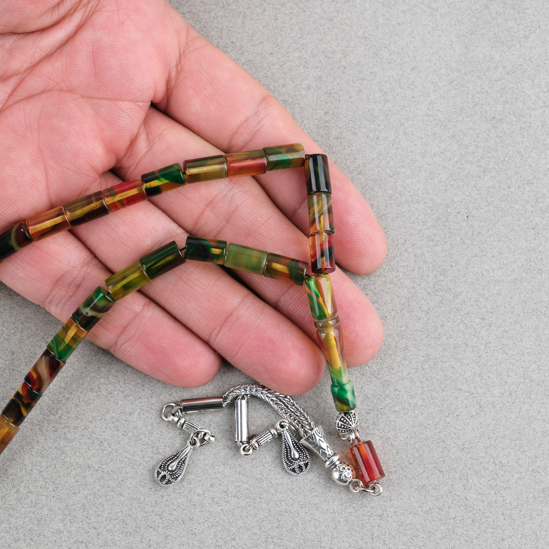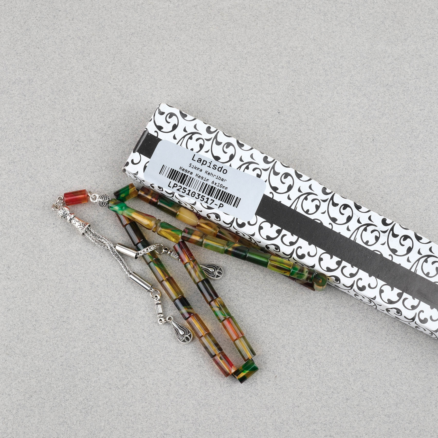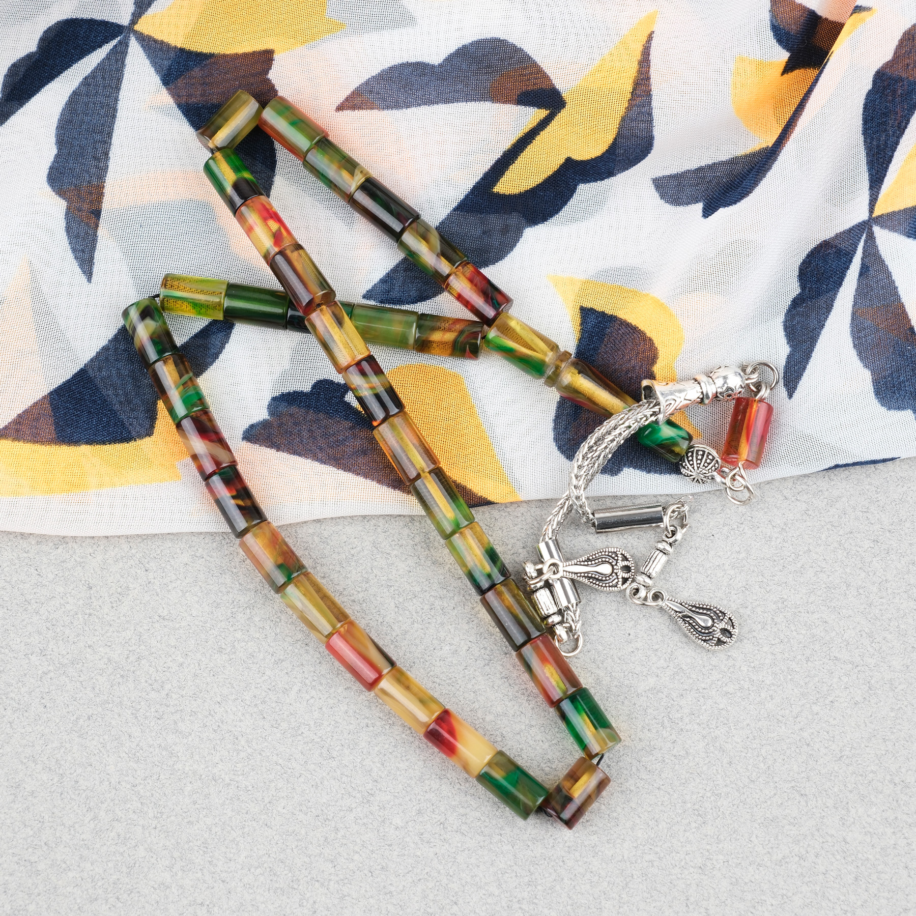 Sıkma Kehribar Kesme Kesim Alpaka Püsküllü 6x10mm Tesbih Sarı Yeşil