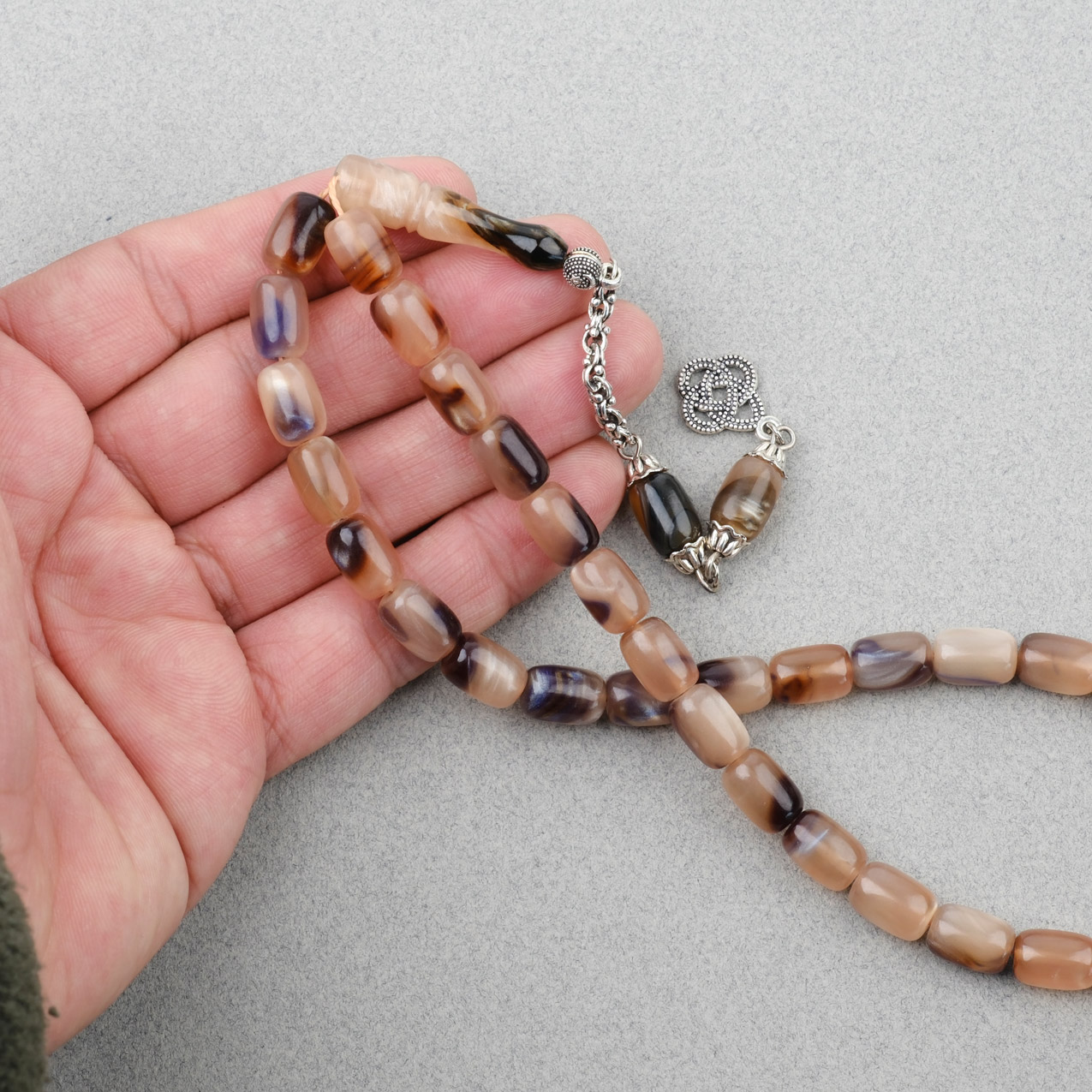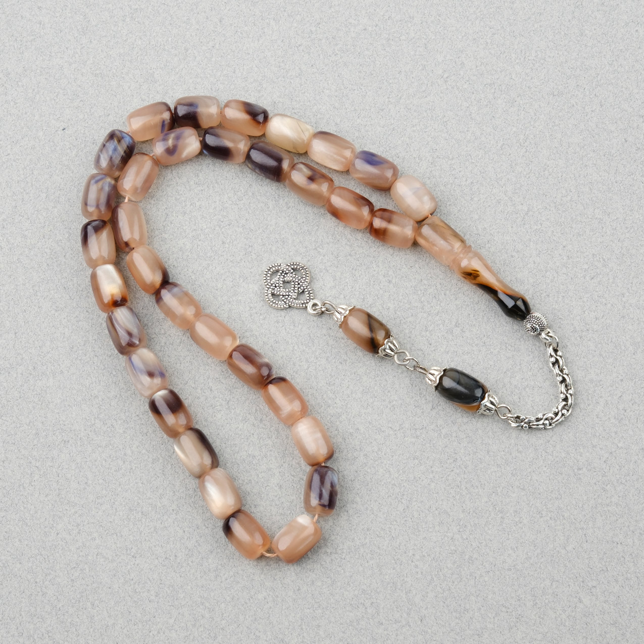 Sıkma Kehribar Sedefli Alpaka Püskül Kapsül Kesim 8x11.5mm Tesbih