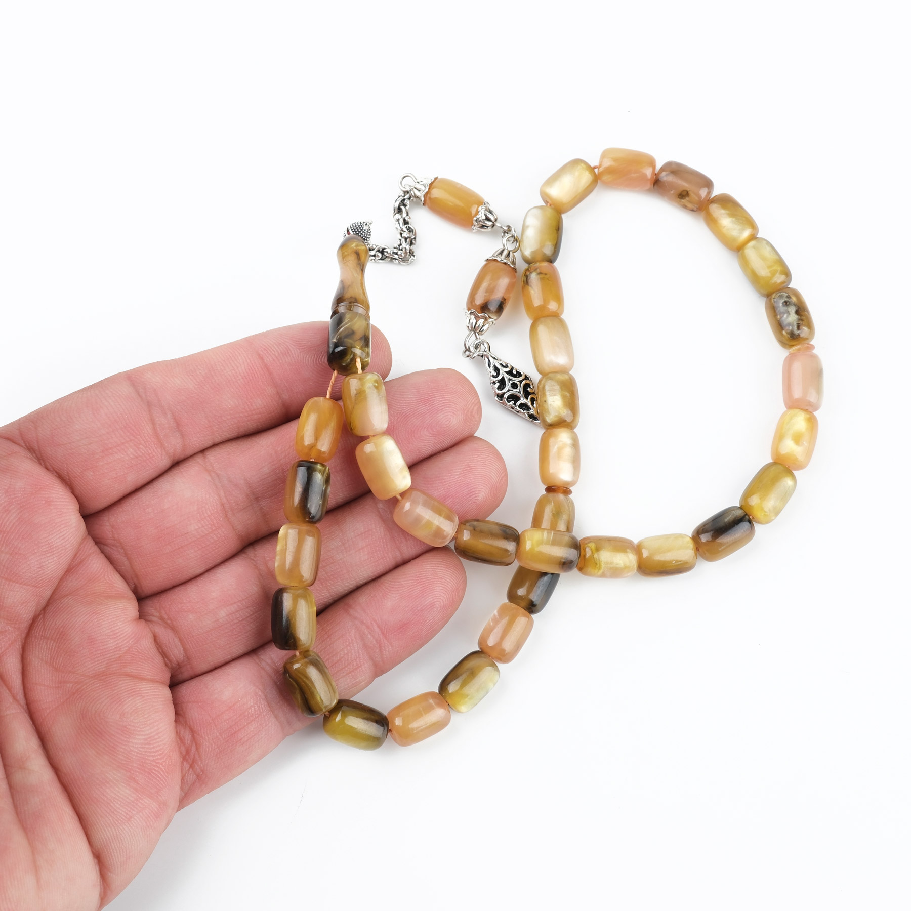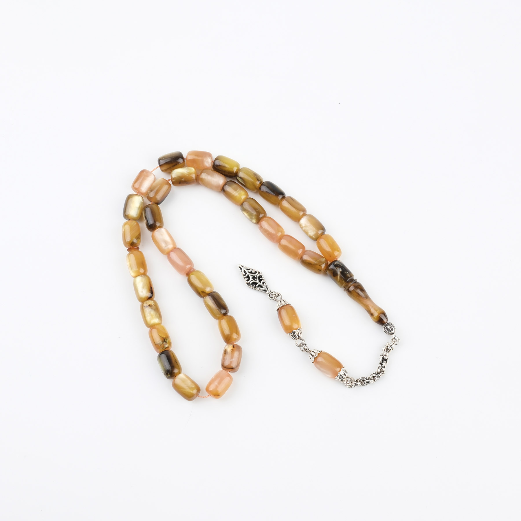 Sıkma Kehribar Sedefli Alpaka Püskül Kapsül Kesim 8x11.5mm Tesbih