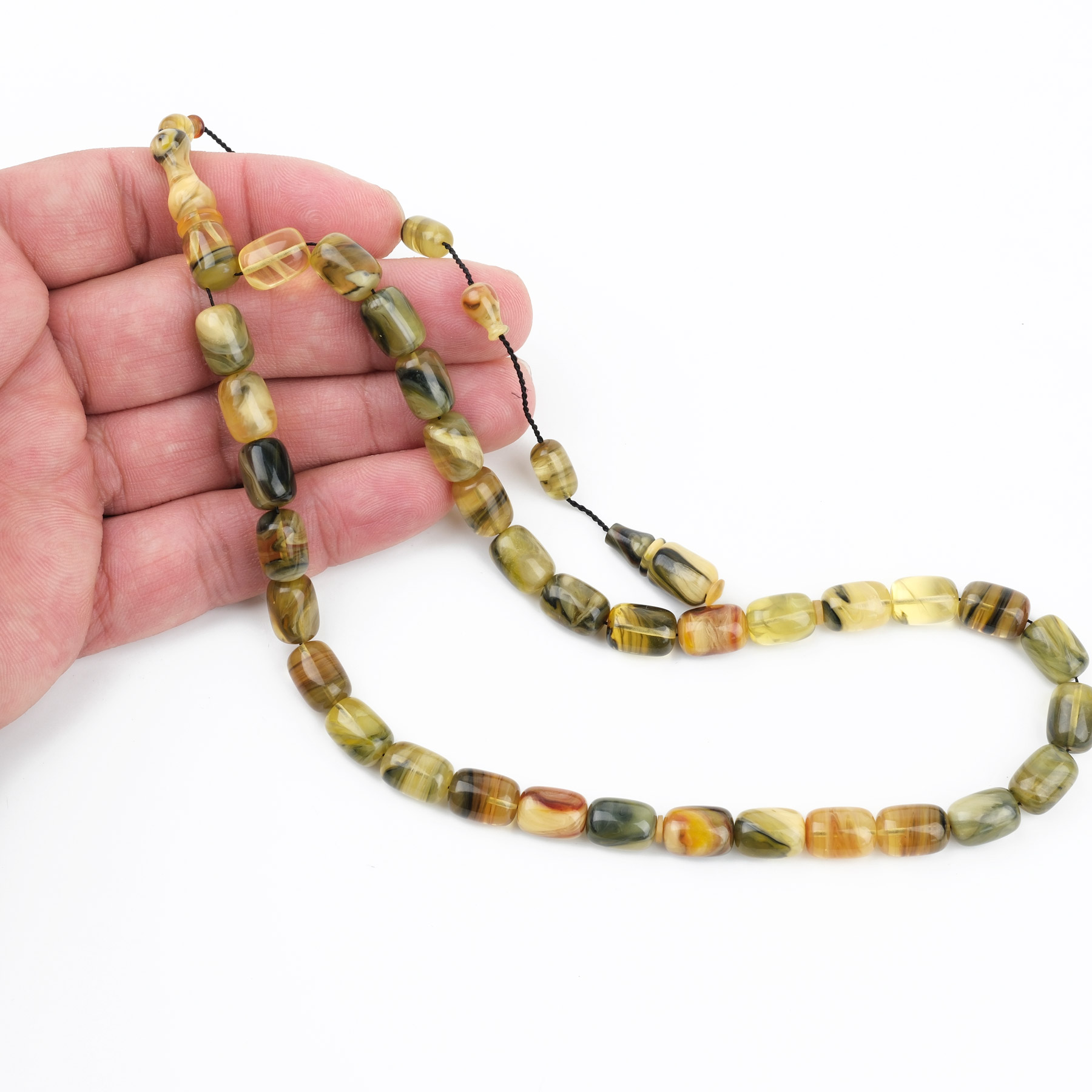 Sıkma Kehribar Sedefli Kapsül Kesim 8x11.5mm Tesbih