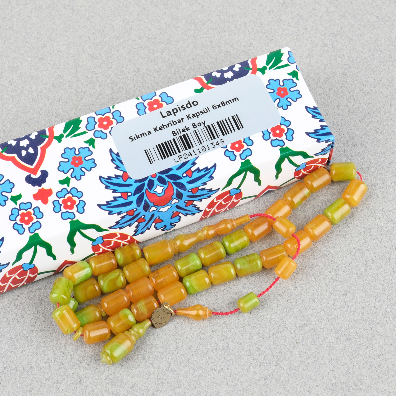 Sıkma Kehribar Usta İşi İmzalı Bilek Boy Kapsül Kesim 6x8mm Tesbih