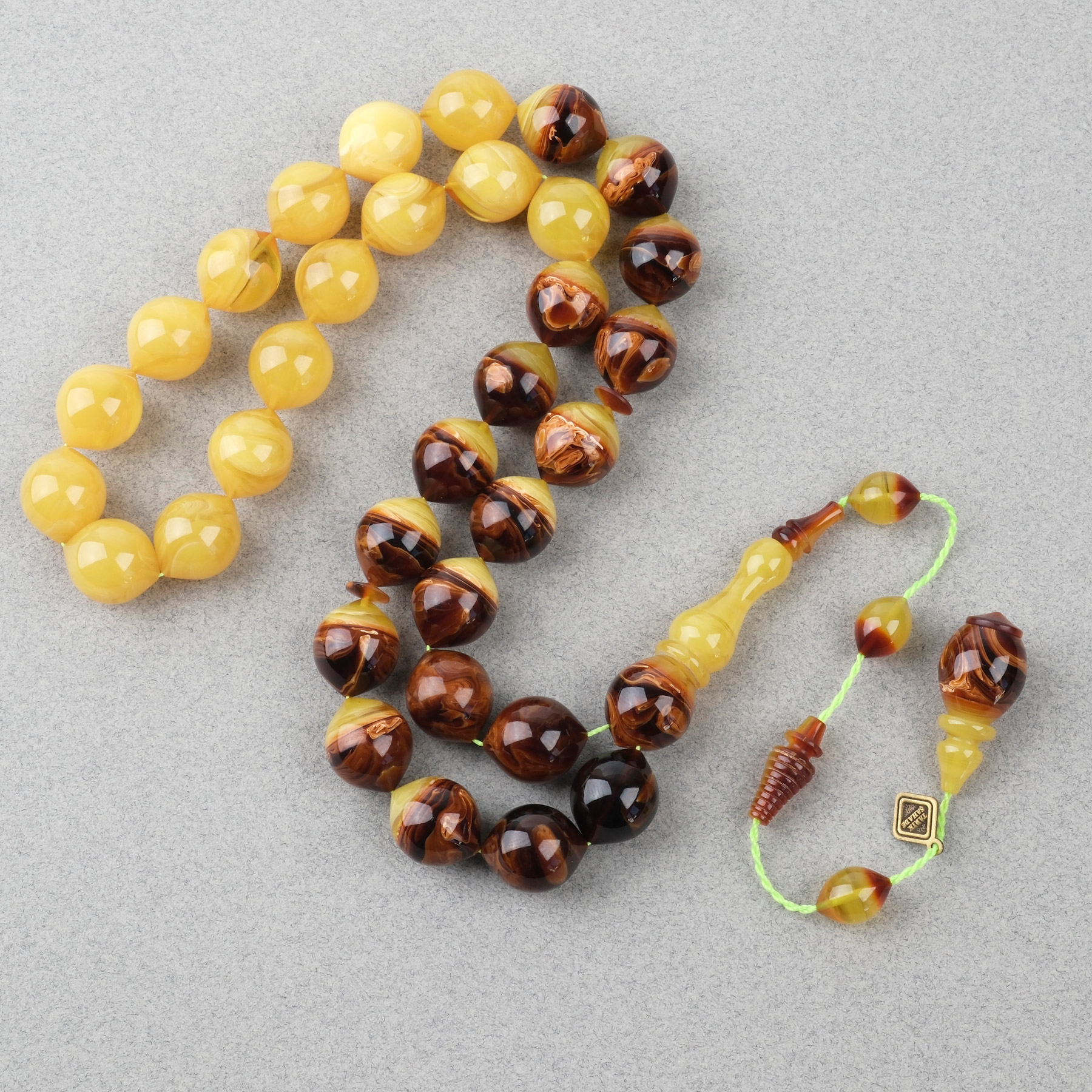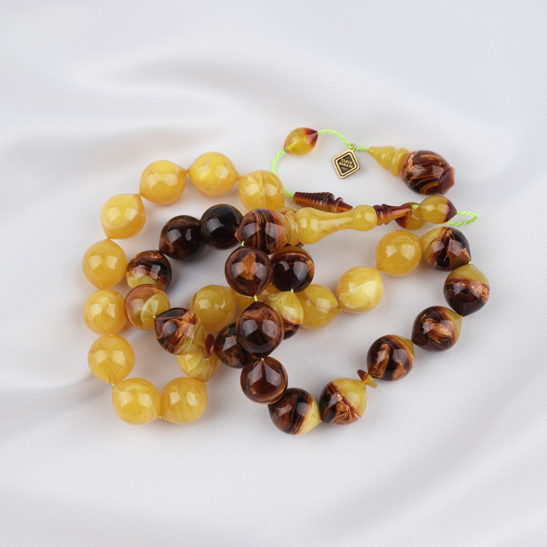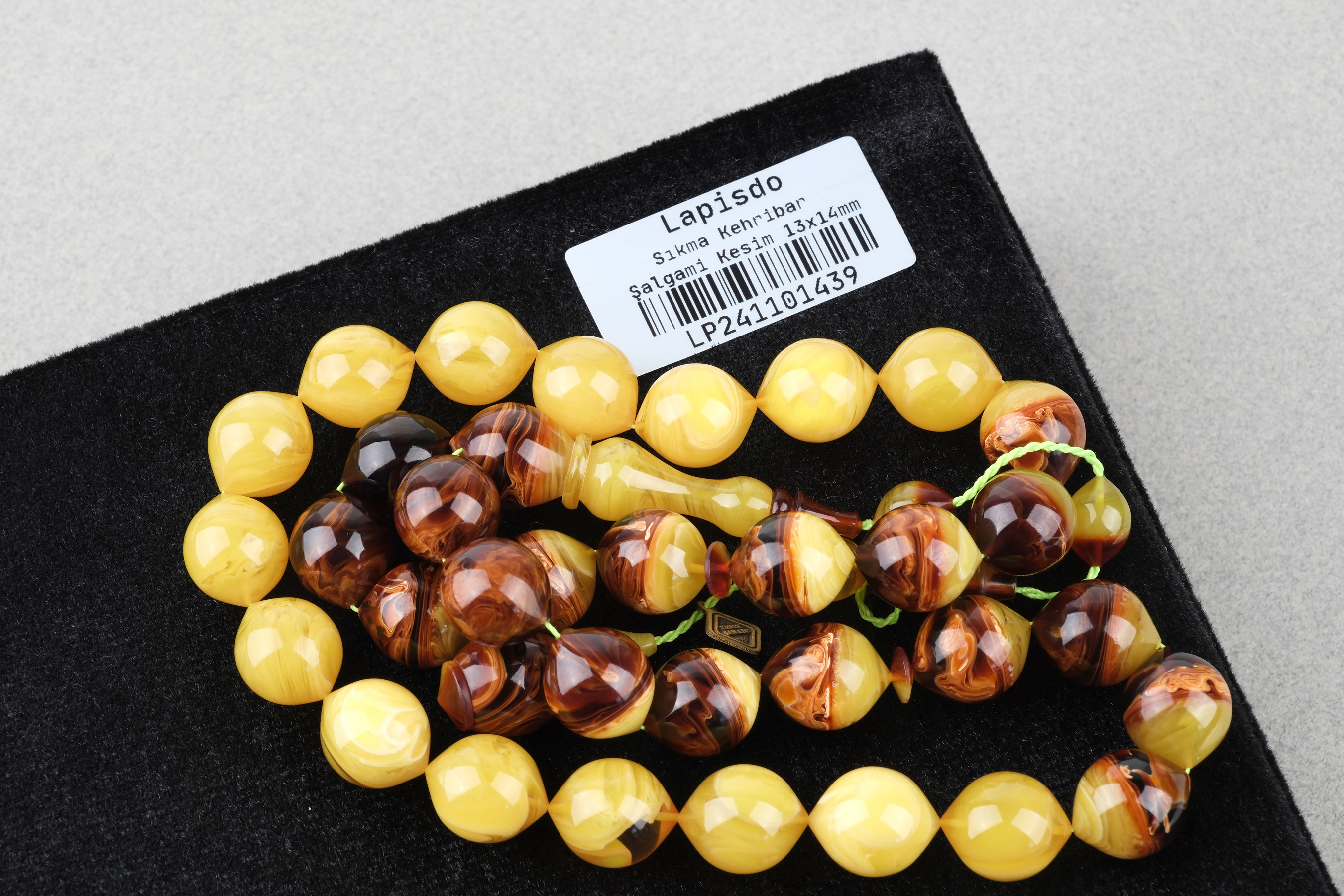 Sıkma Kehribar Usta İşi İmzalı Şalgami Kesim 13x14mm Tesbih
