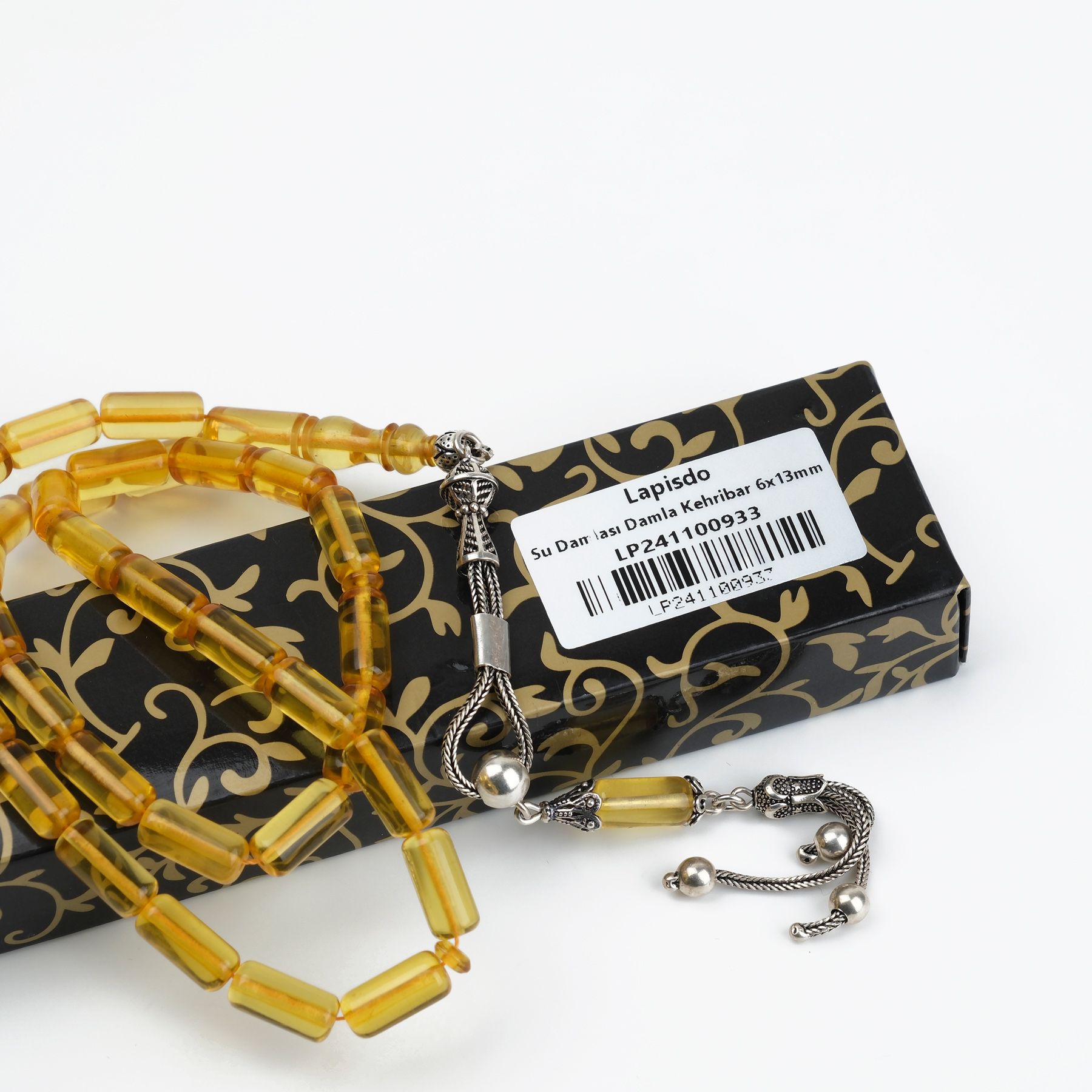Su Damlası Doğal Kaya Damla Kehribar 925Ayar Gümüş Püskül Kesme Kesim 6x13mm Tesbih