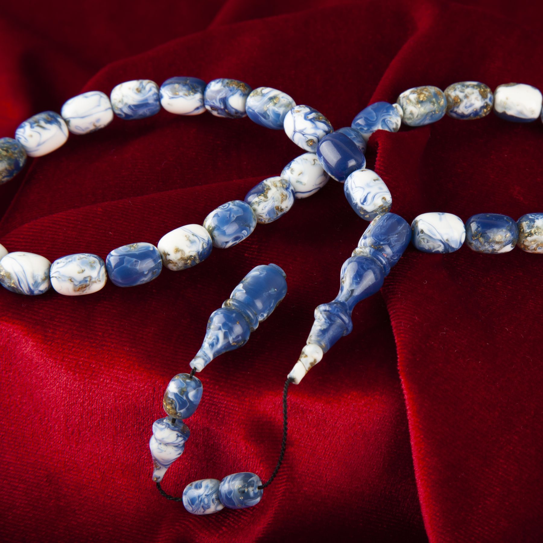 Sertifikalı Altın Varaklı Kapsül Kesim Uçak Camı 9x13mm Tesbih - Mavi