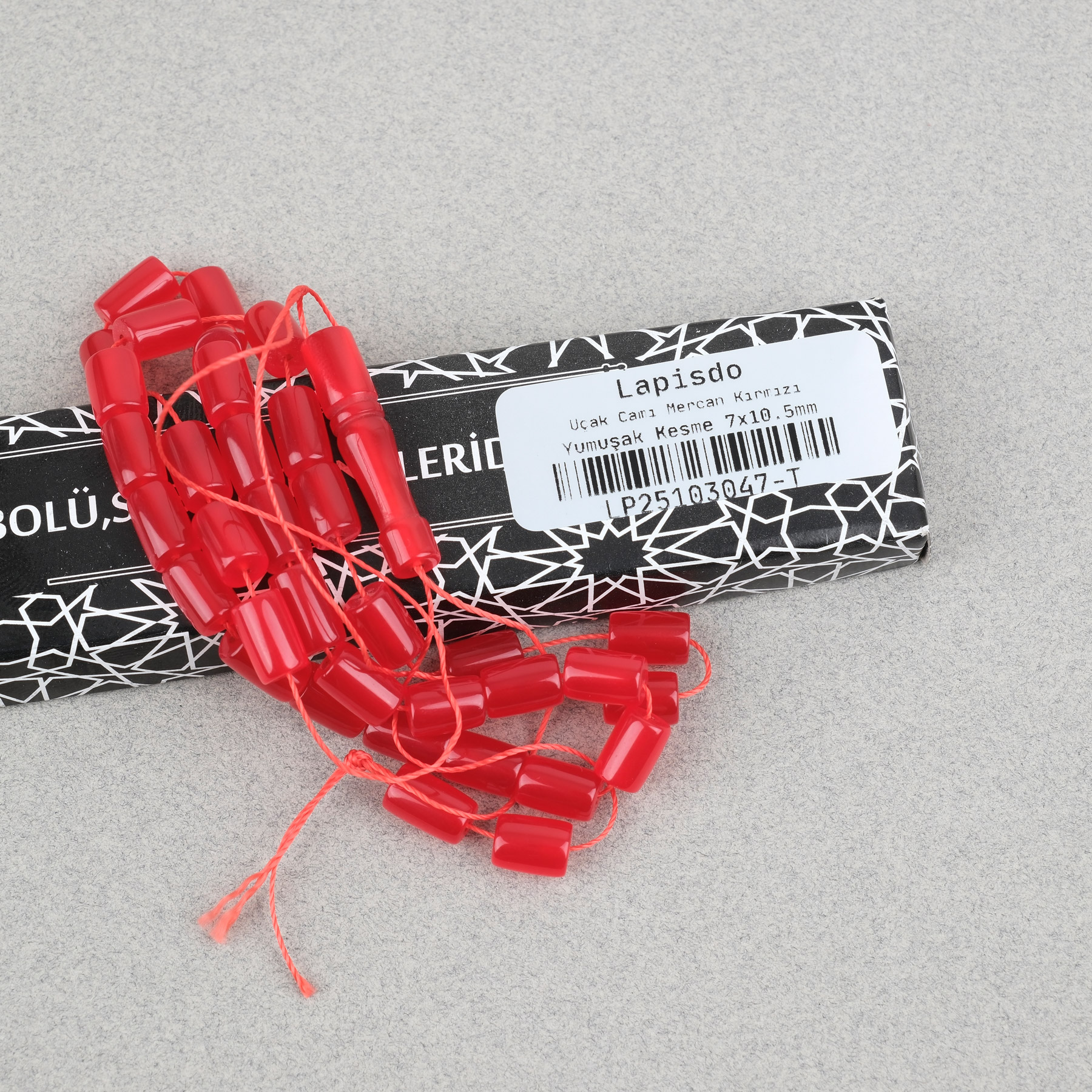 Uçak Camı Kesme Kesim 7x10.5mm Tesbih - Mercan Kırmızı