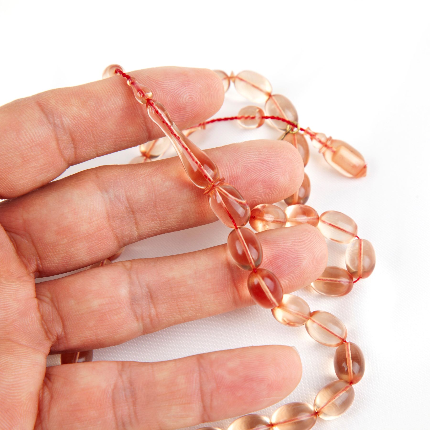 Zar Kehribar Beyzi Kesim 8x11.5mm Tesbih - Şeffaf