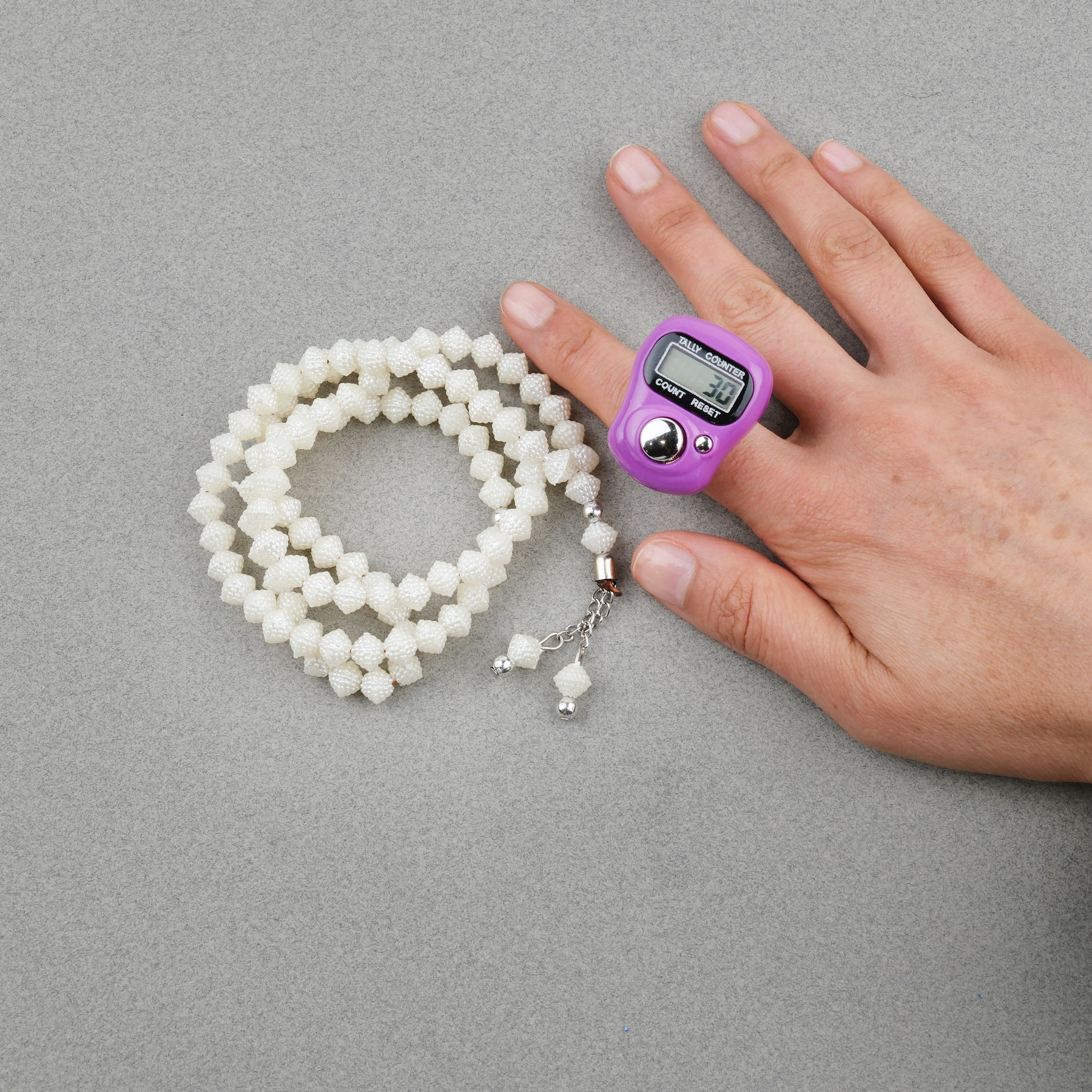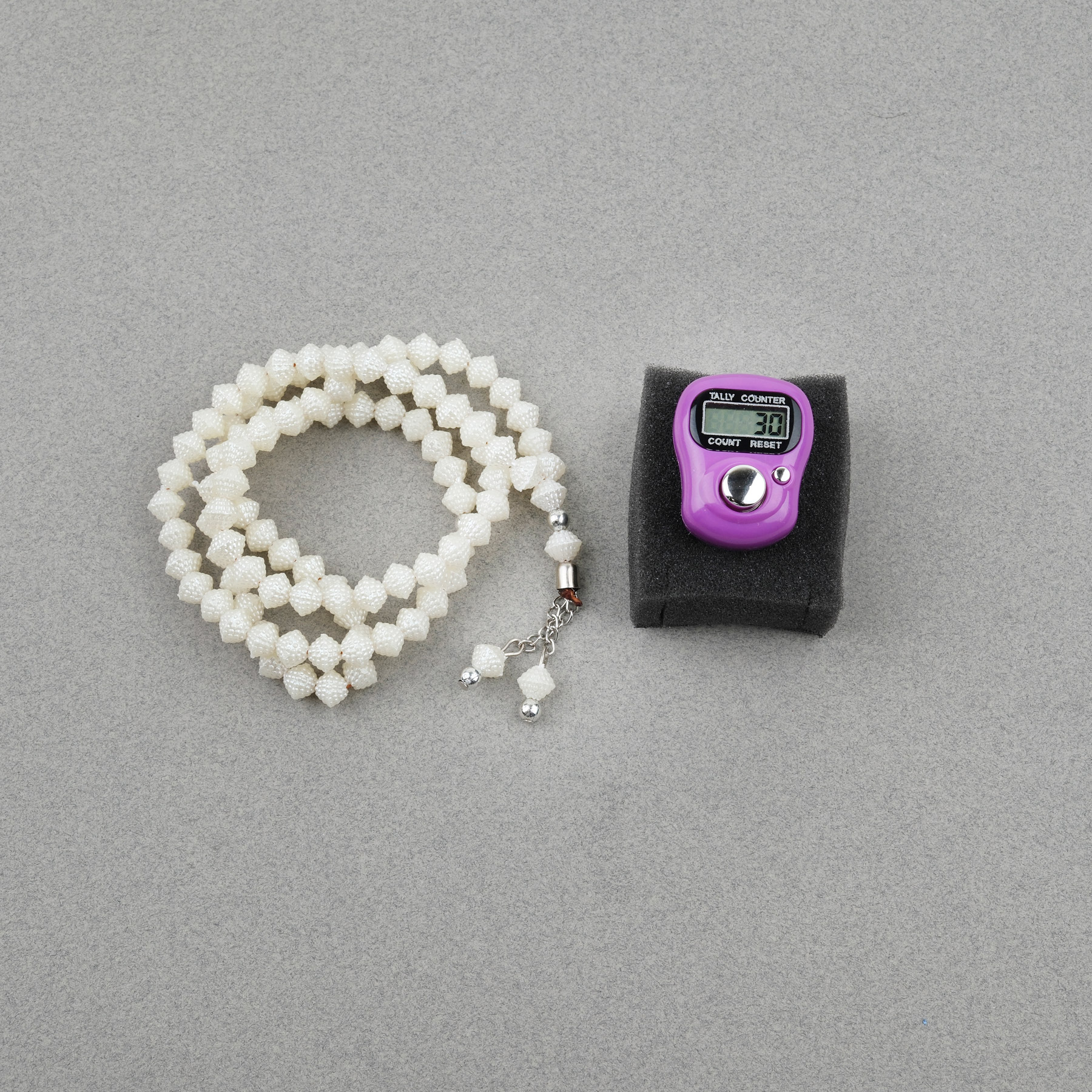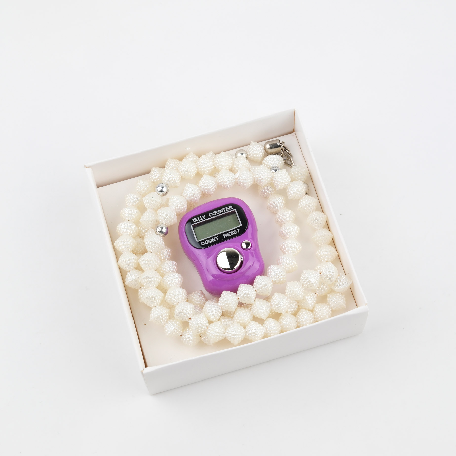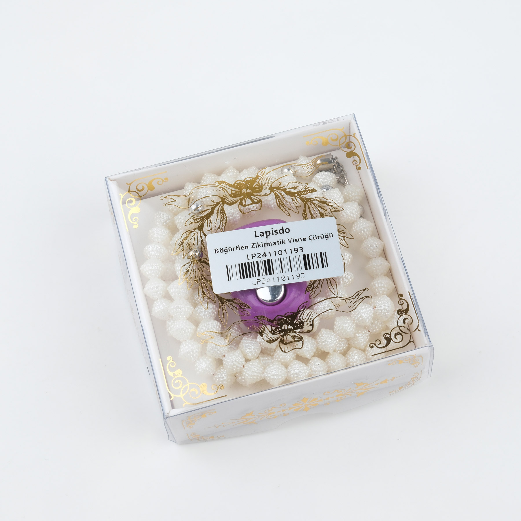 Zikirmatik Elektronik Tesbih ve Böğürtlen Desenli 99luk Namaz Tesbih Seti -Vişne Çürüğü
