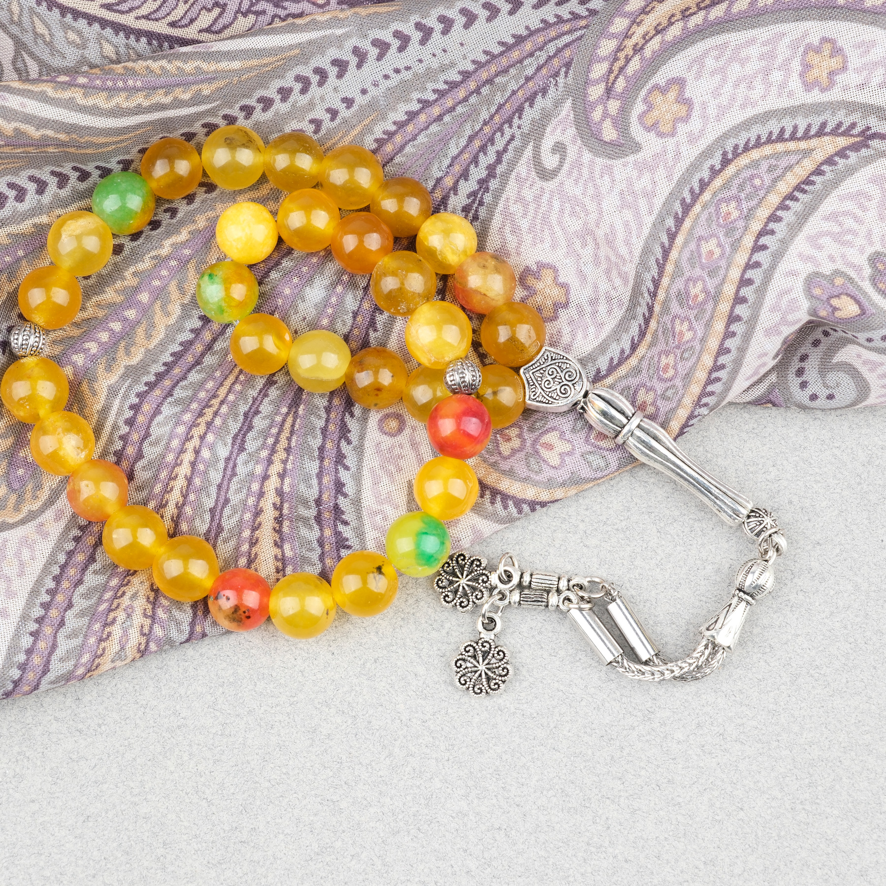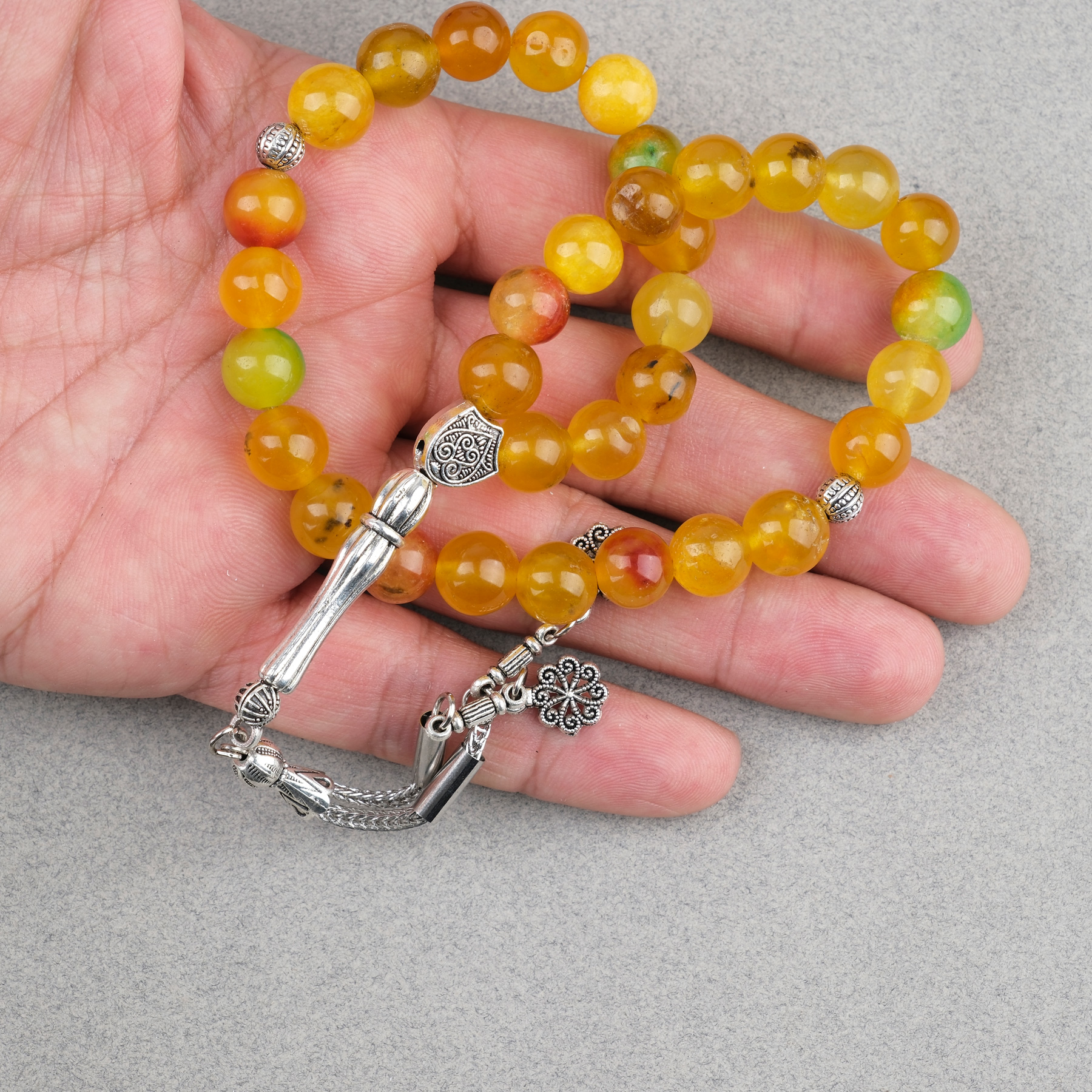 Akik Taşı Küre Kesim 10mm Tesbih Alpaka Püsküllü