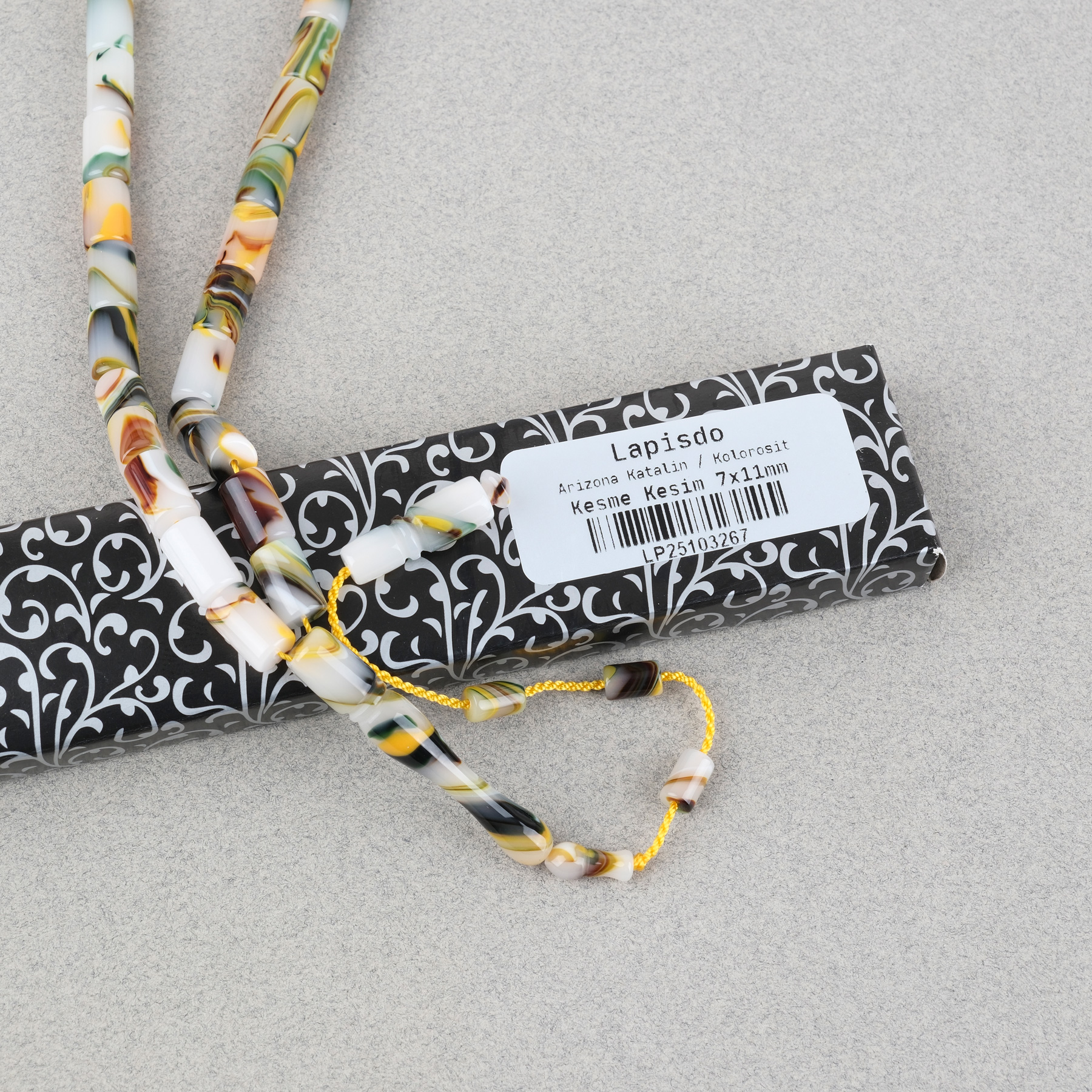 Arizona Katalin Sistemli Kesme Kesim 7x11mm Tesbih - Sarı Beyaz