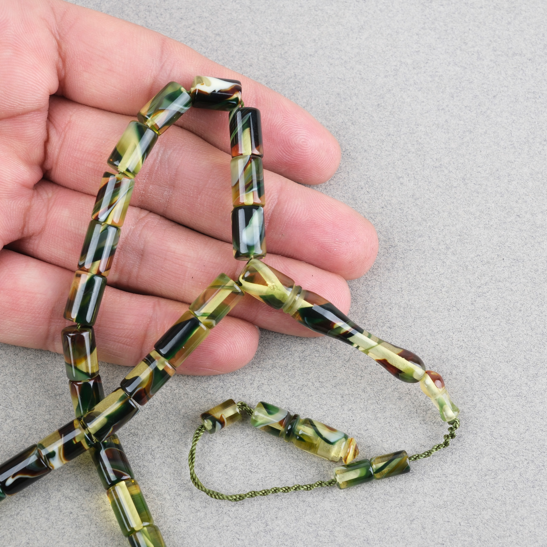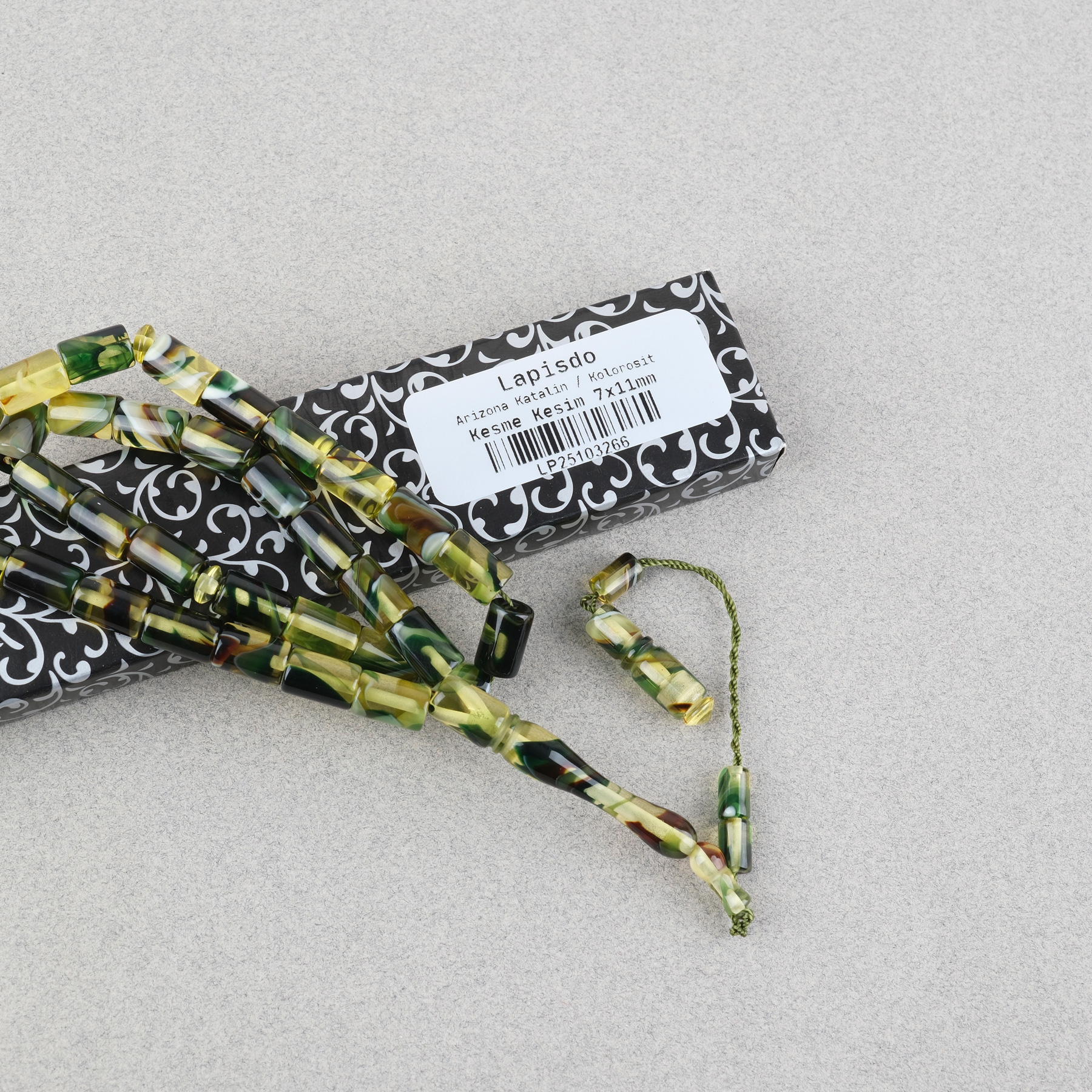 Arizona Katalin Sistemli Kesme Kesim 7x11mm Tesbih - Yeşil Siyah