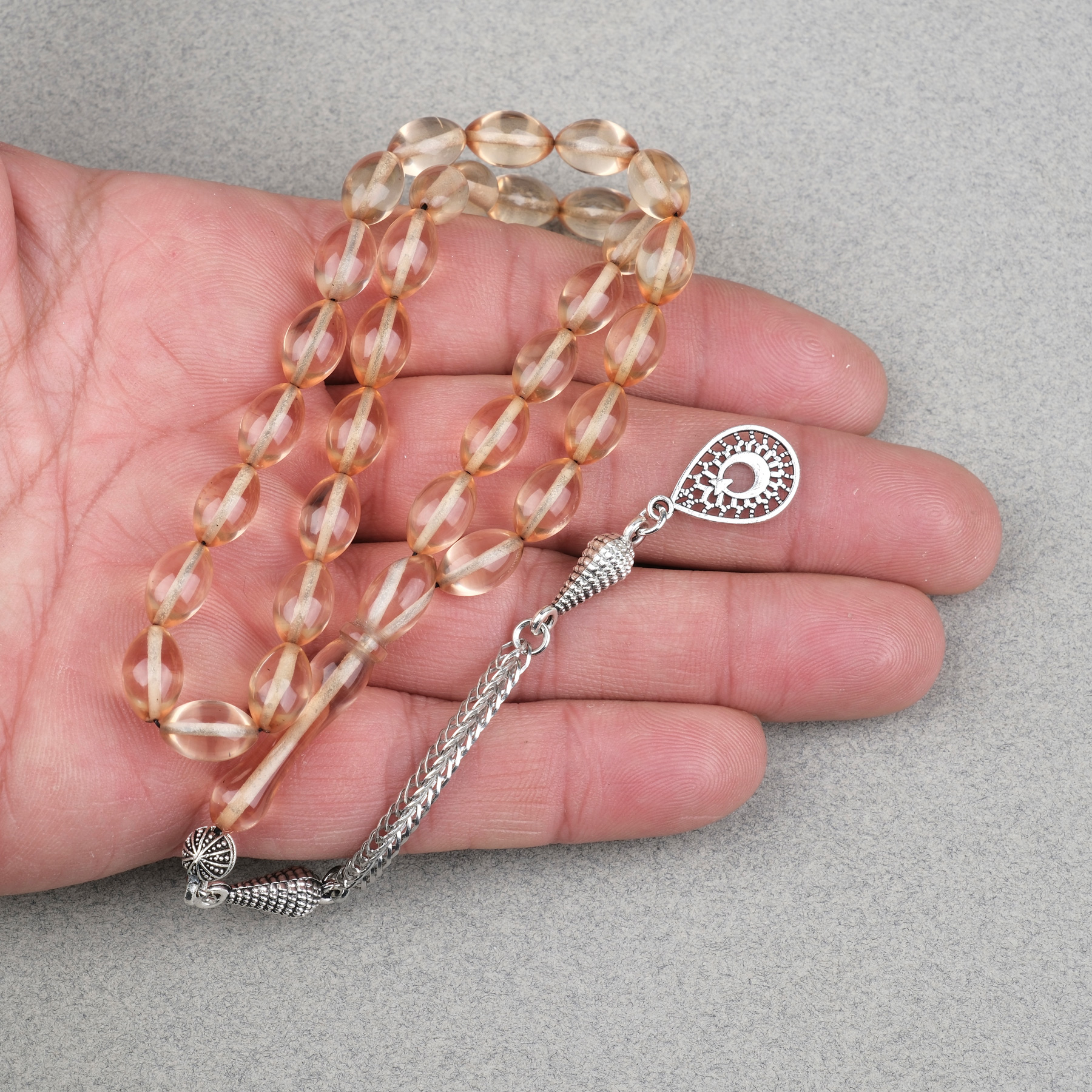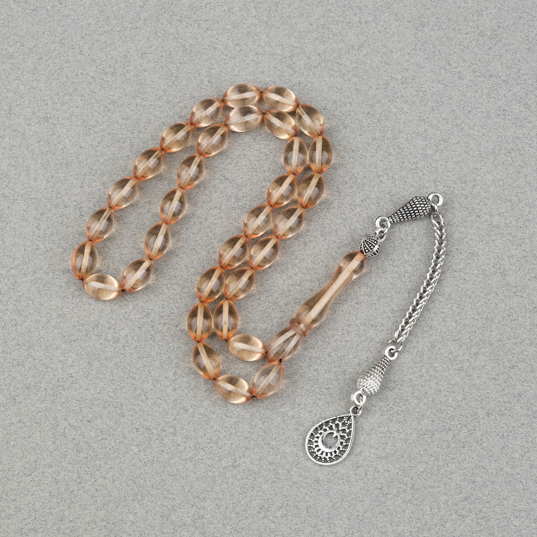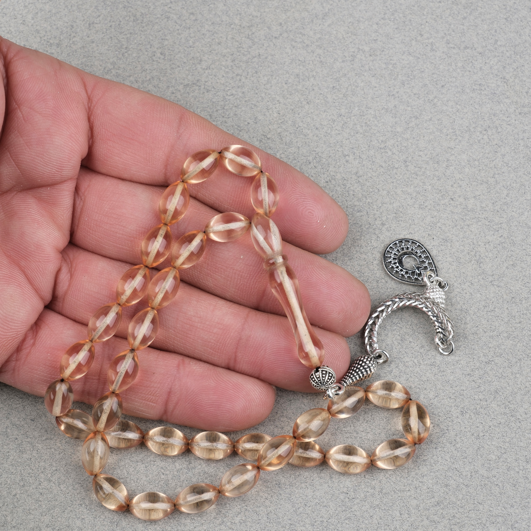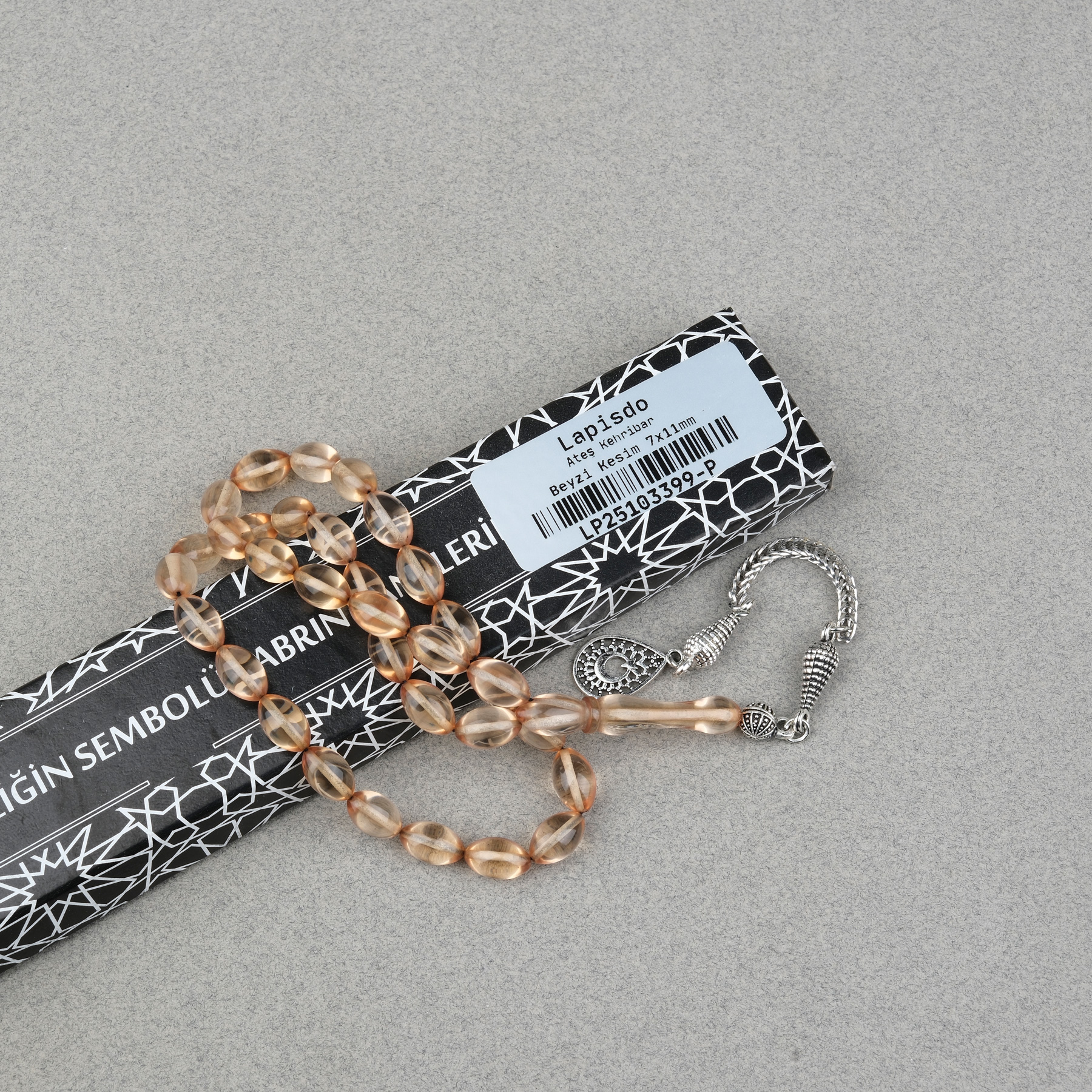 Ateş Kehribar Alpaka Püsküllü Beyzi Kesim 7x11mm Tesbih- Açık Sarı