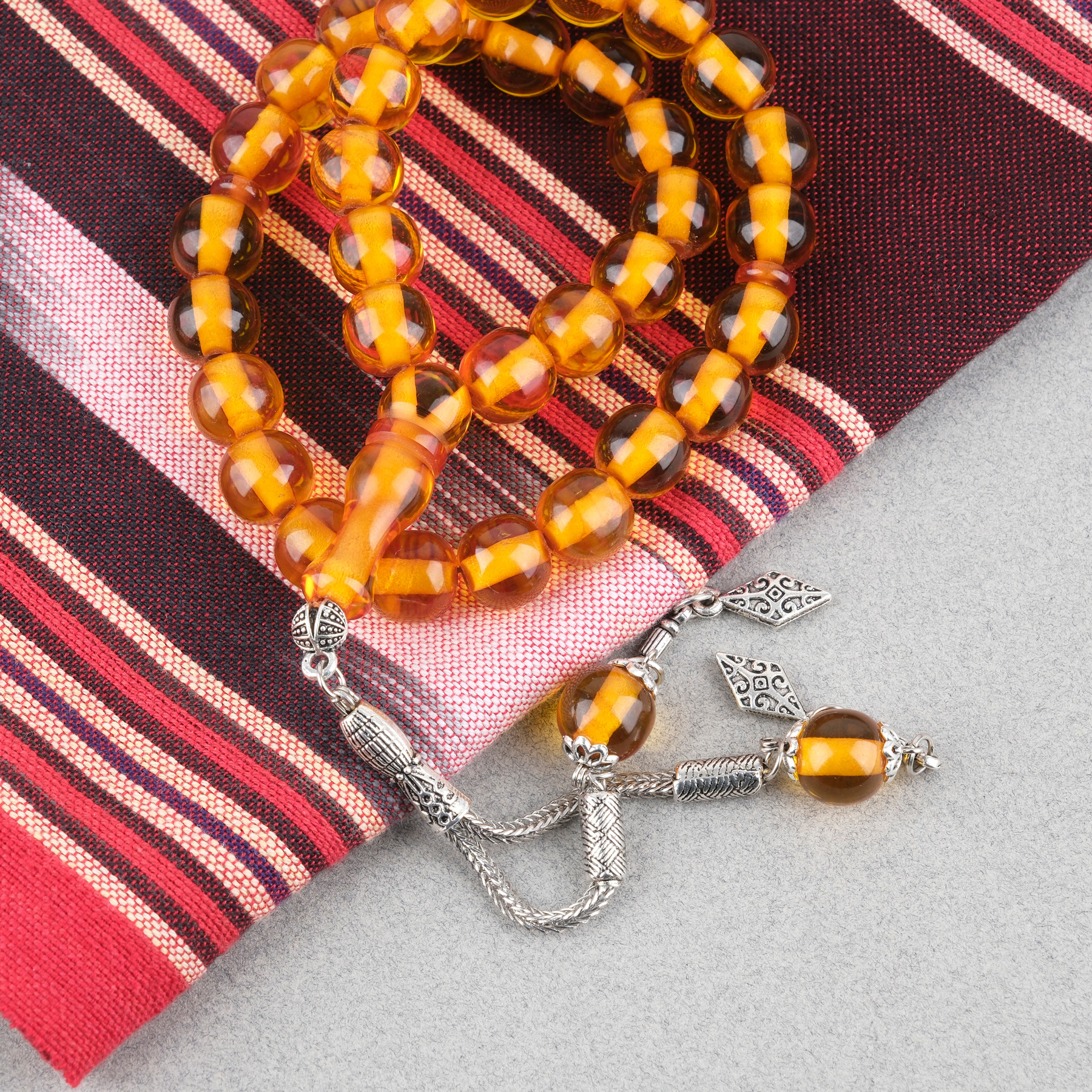 Ateş Kehribar Alpaka Püsküllü Kapsül Kesim 7.5x11mm Tesbih - Bal Köpüğü