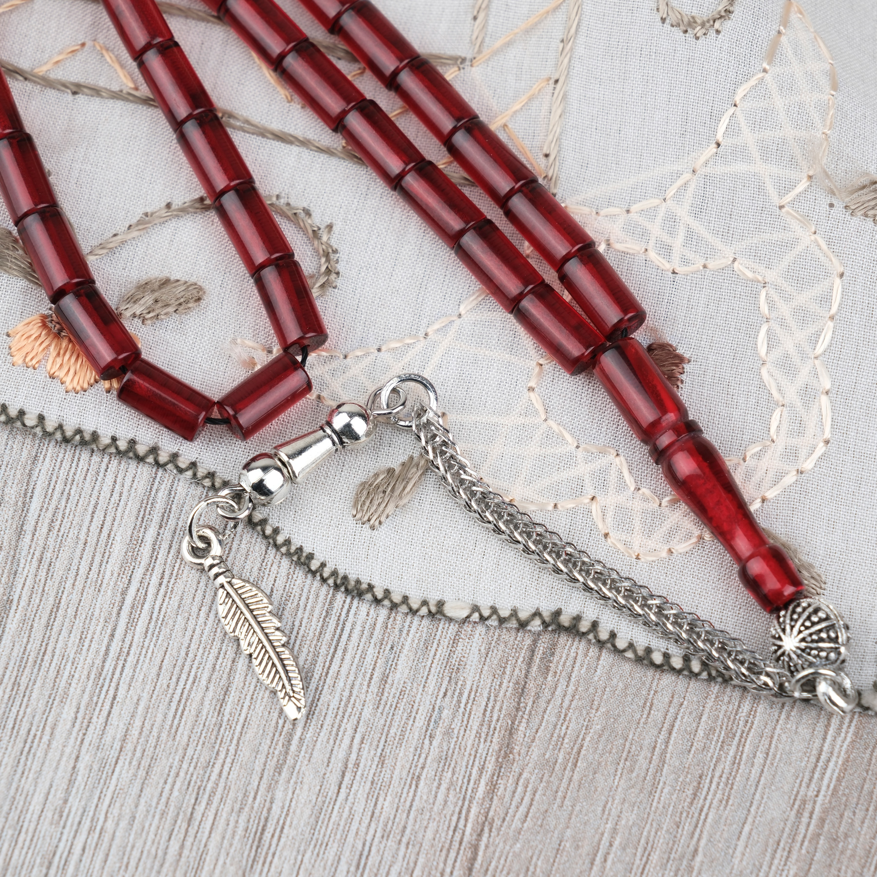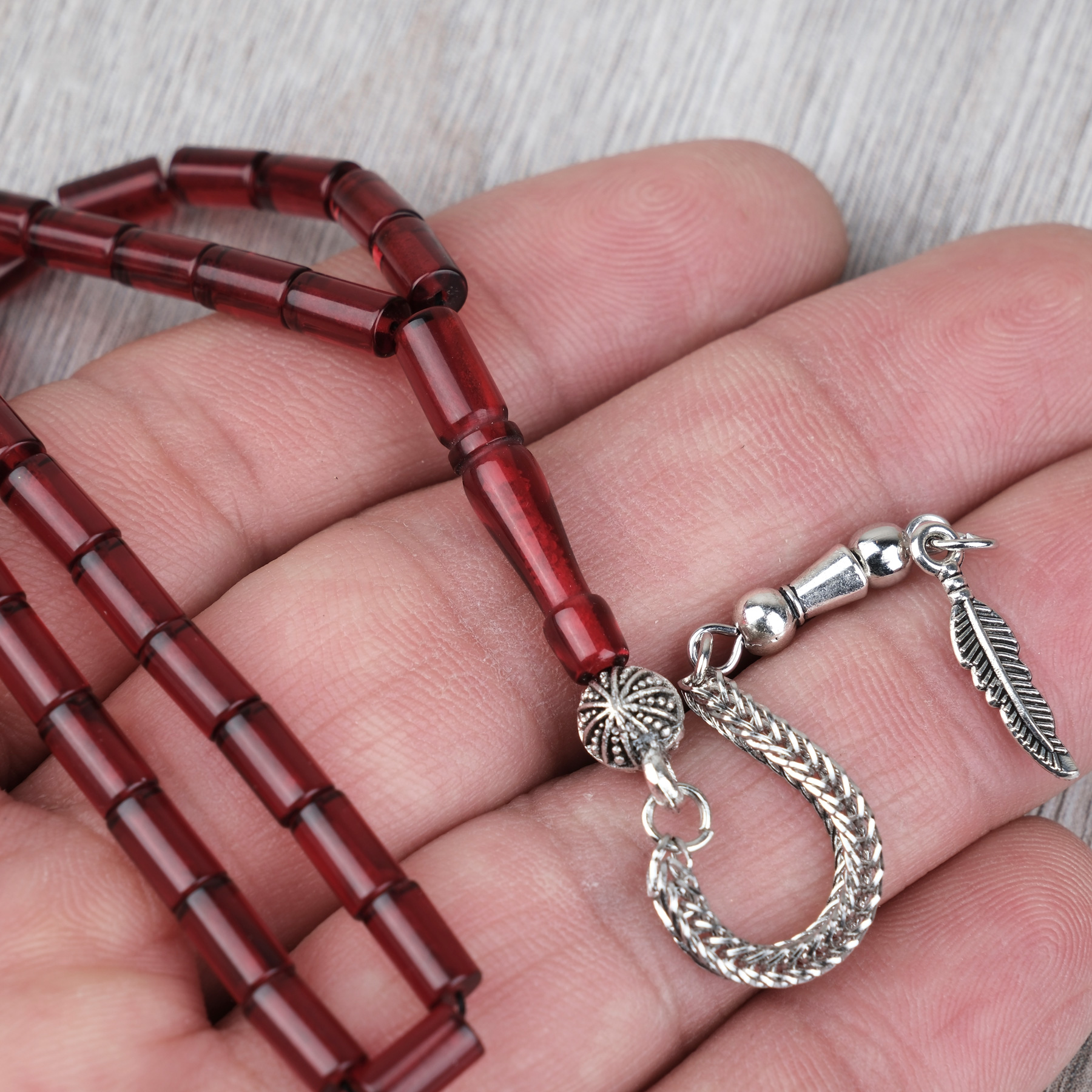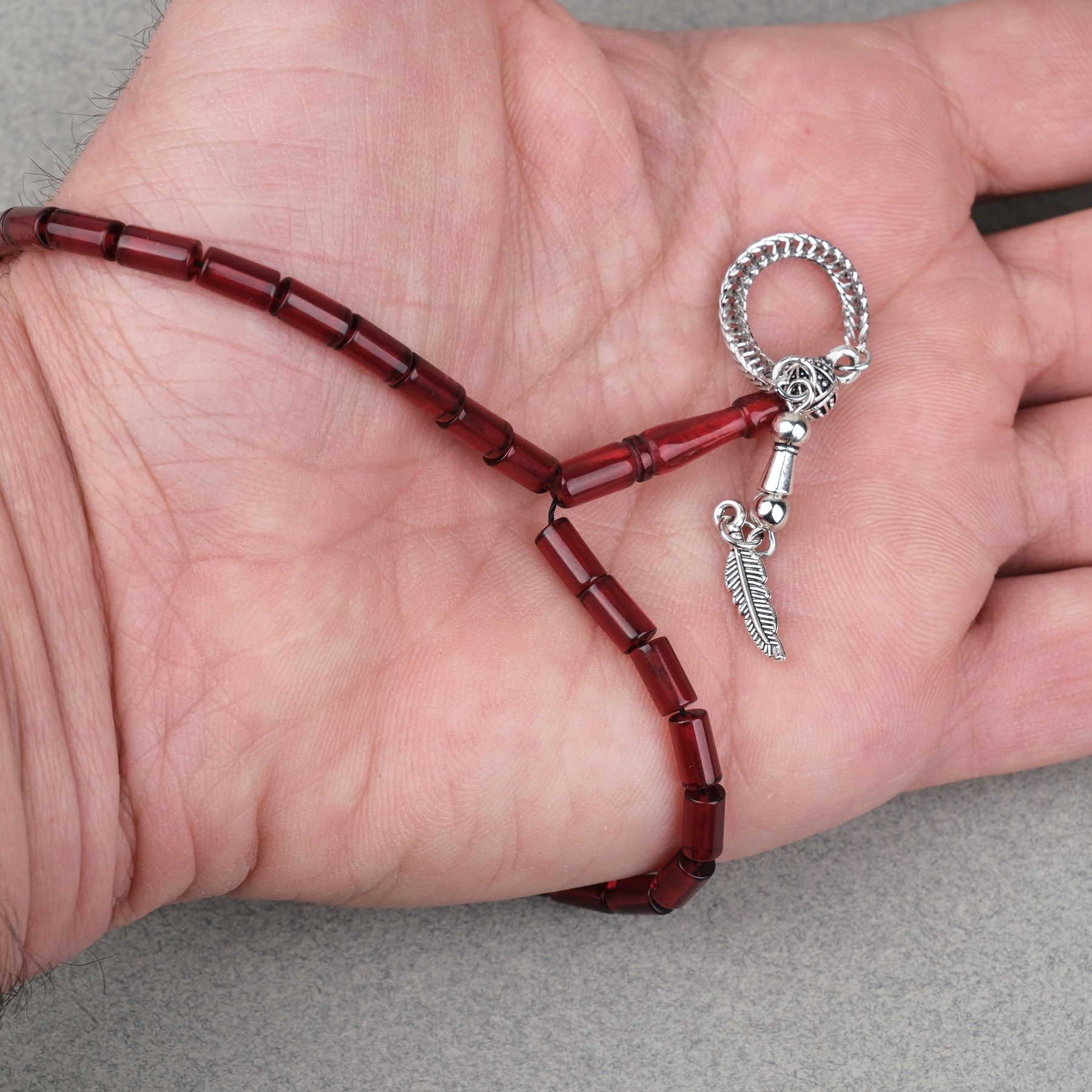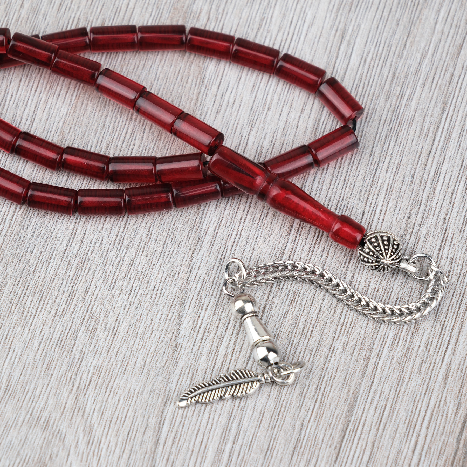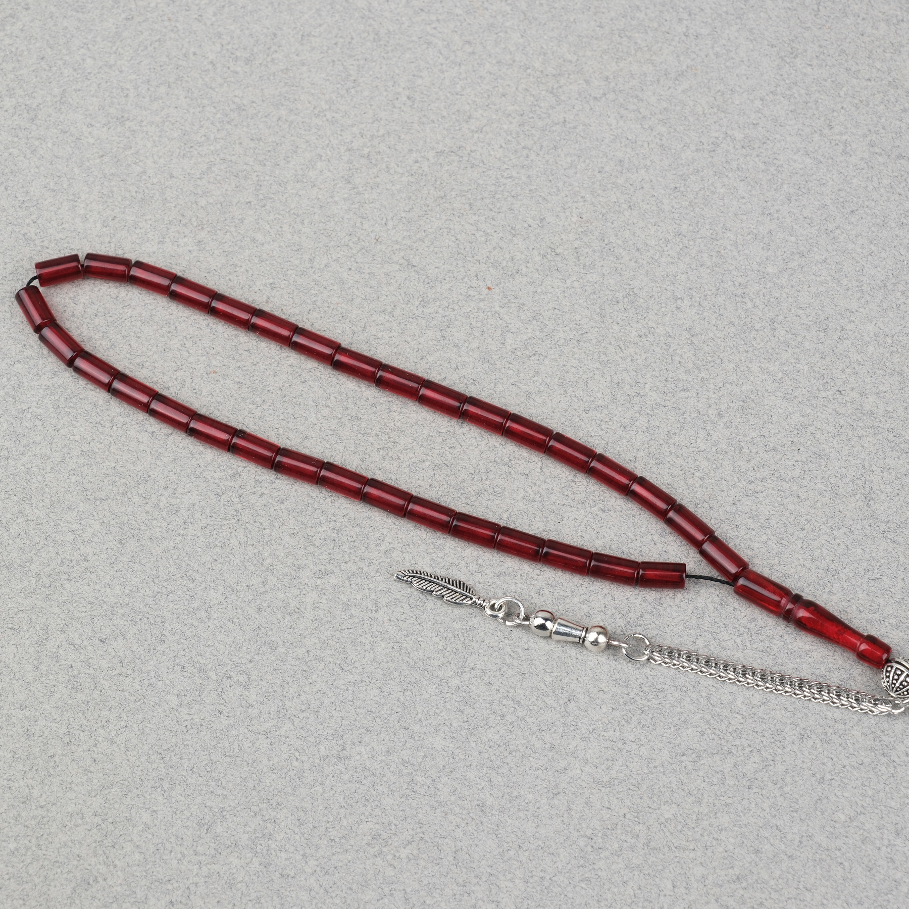 Ateş Kehribar Alpaka Püsküllü Kesme Kesim 4x7mm Tesbih- Bordo