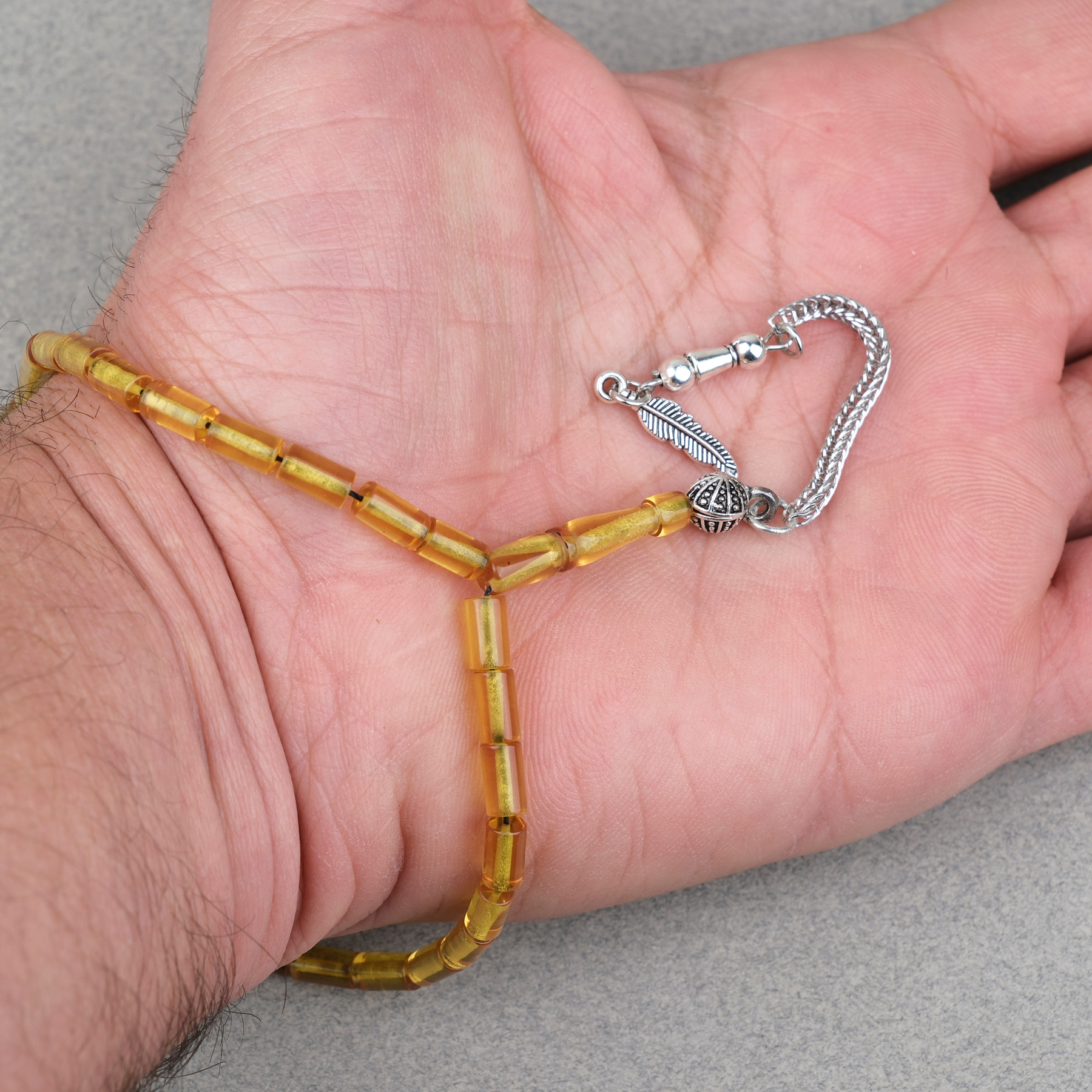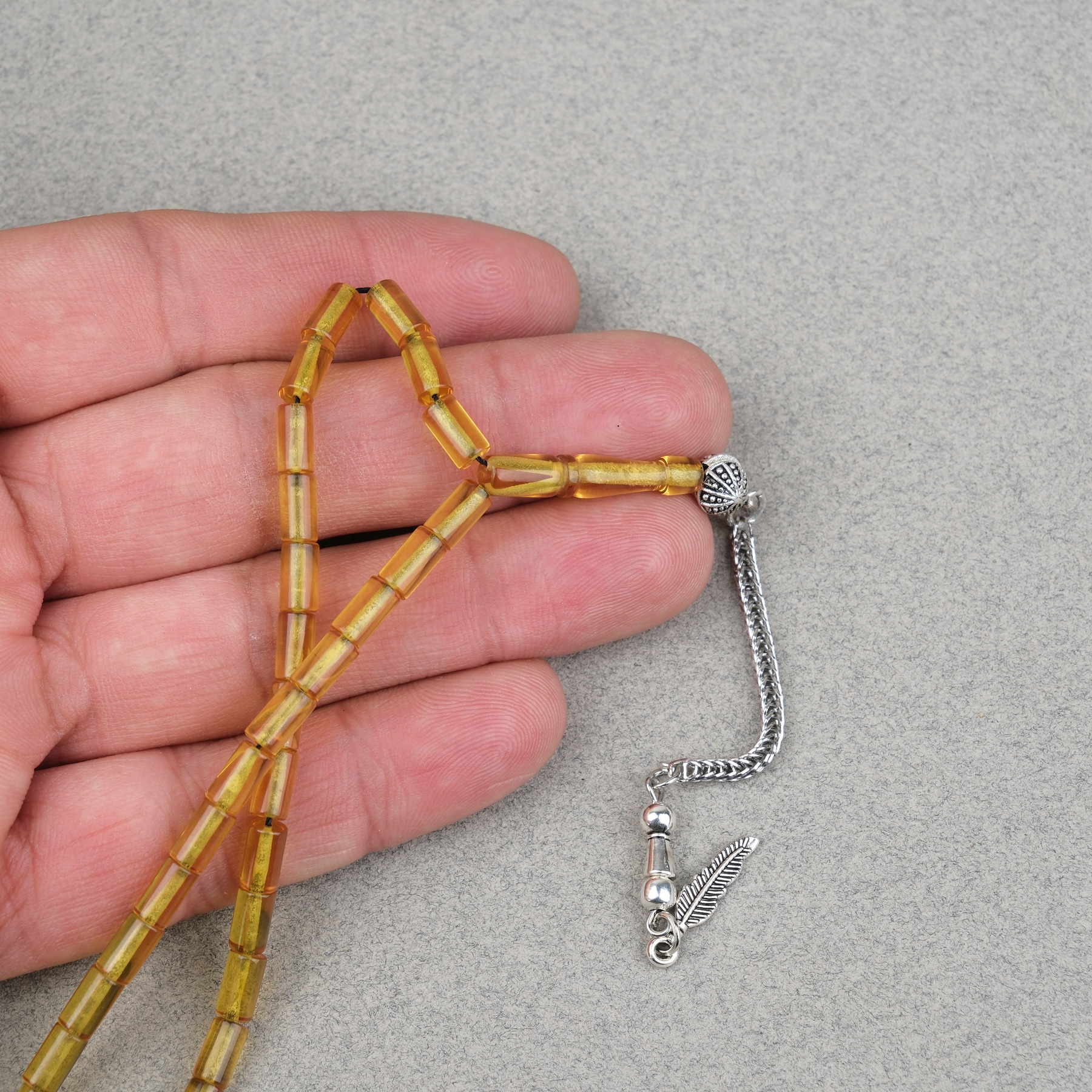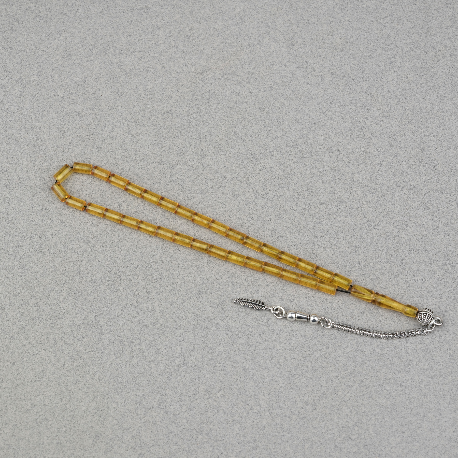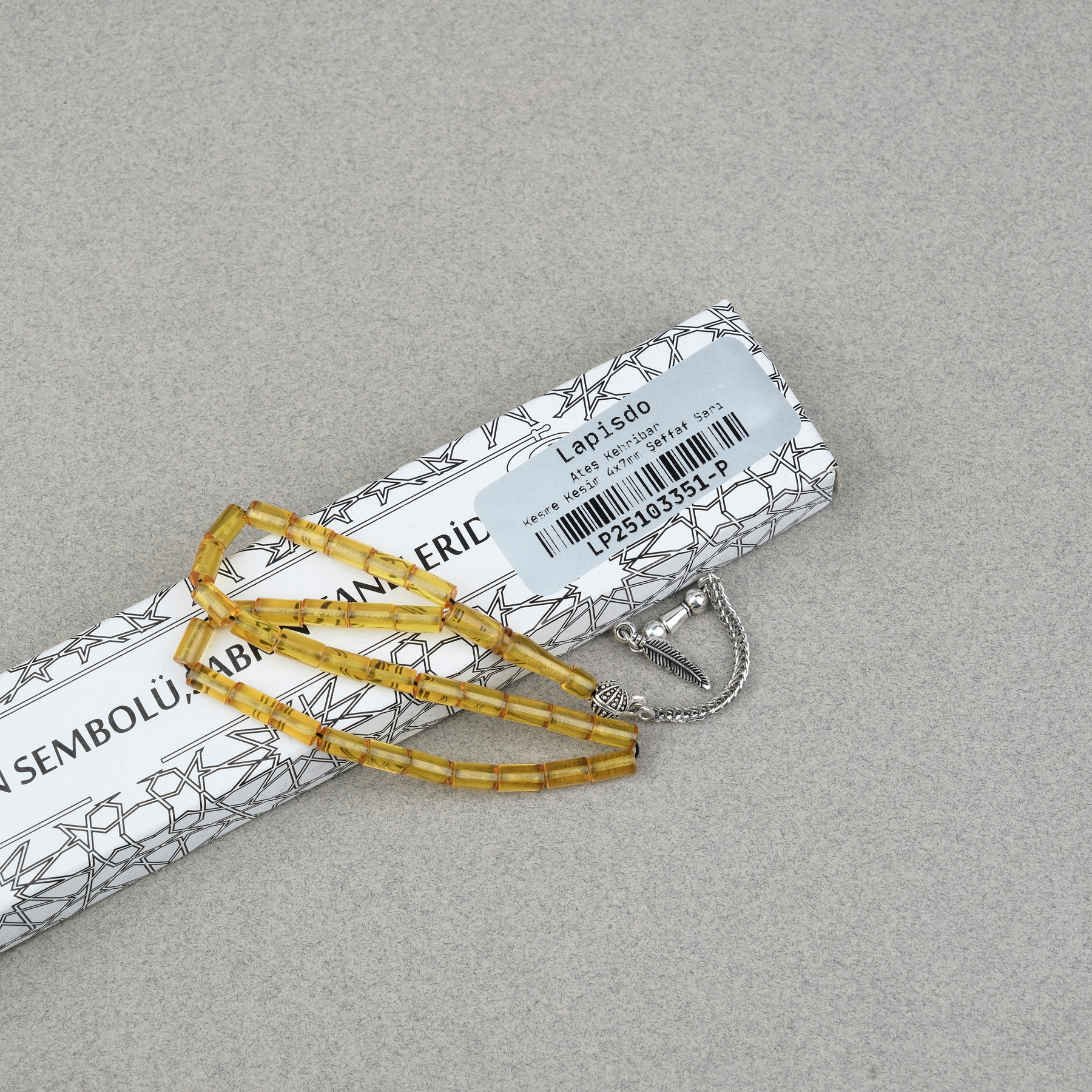 Ateş Kehribar Alpaka Püsküllü Kesme Kesim 4x7mm Tesbih- Şeffaf Sarı
