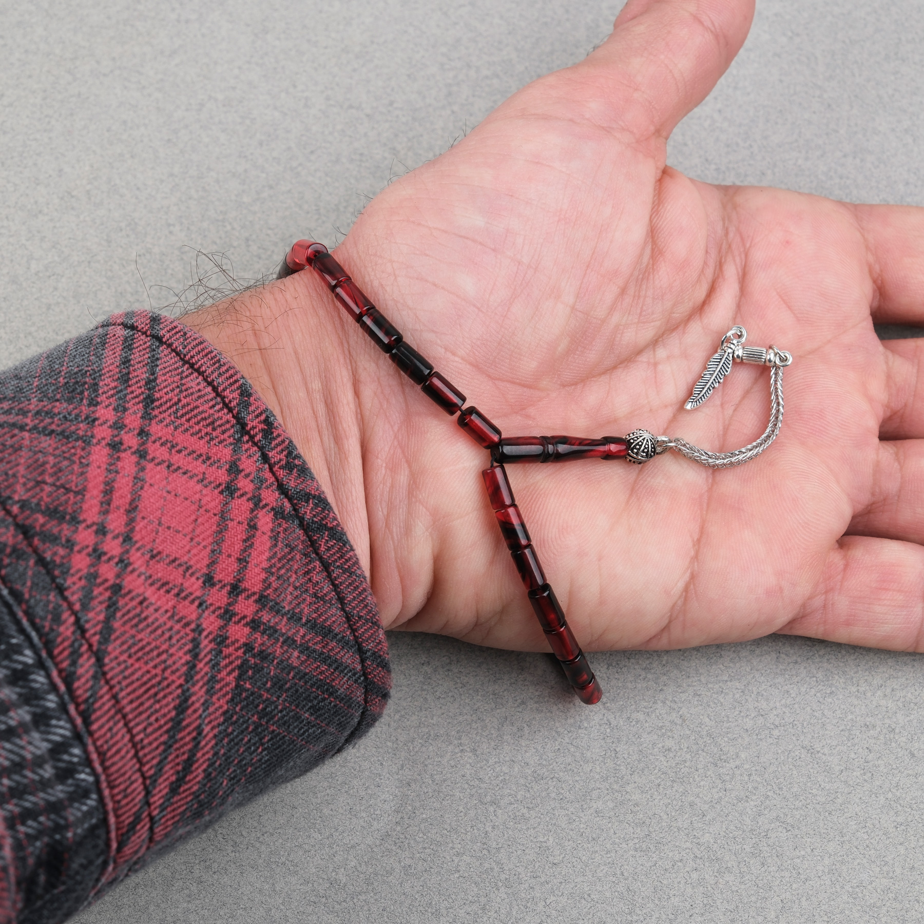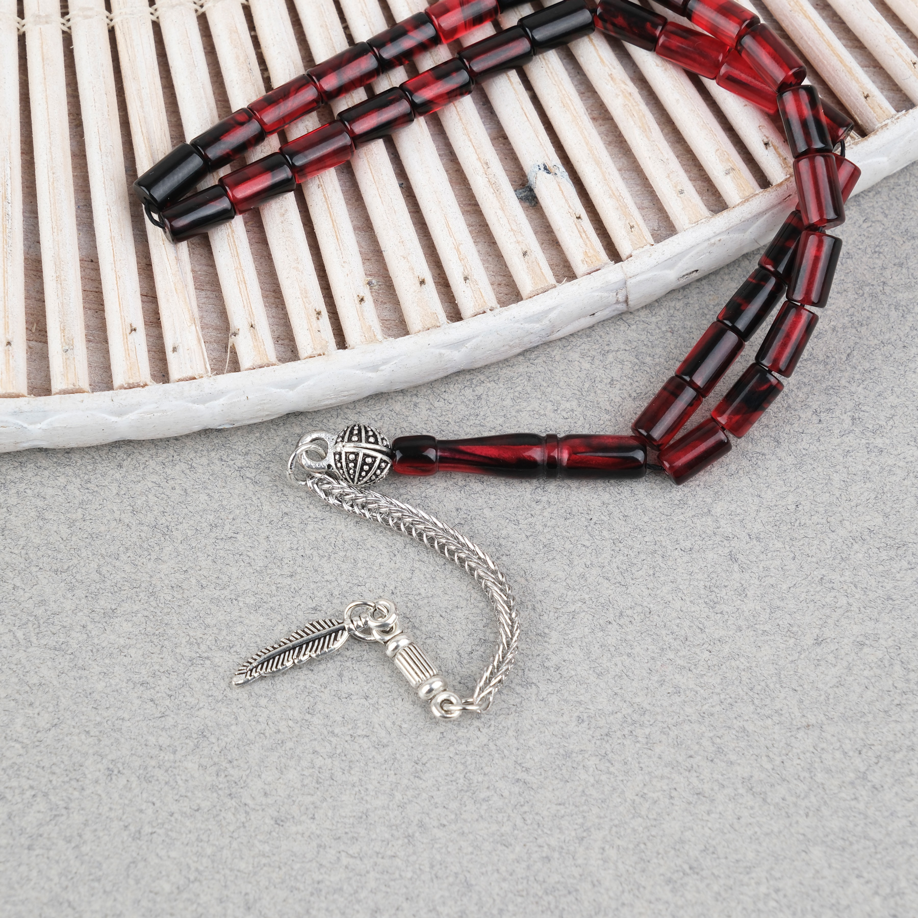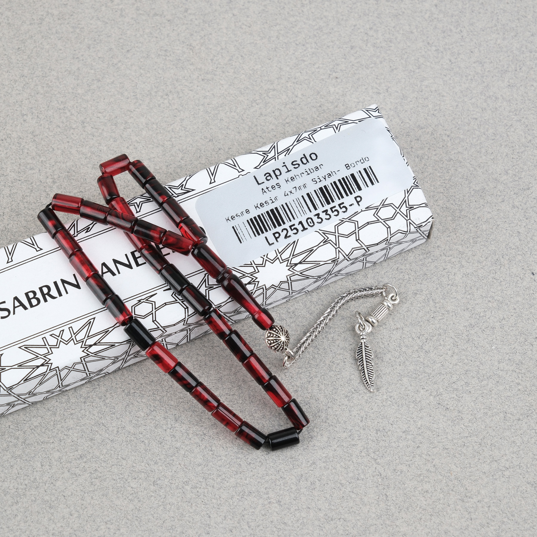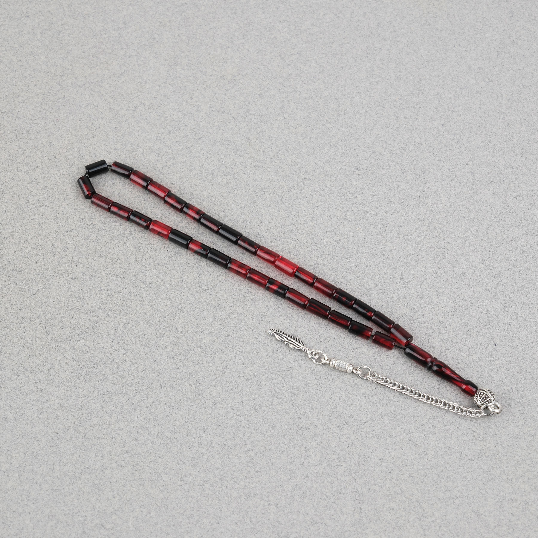 Ateş Kehribar Alpaka Püsküllü Kesme Kesim 4x7mm Tesbih- Siyah- Bordo