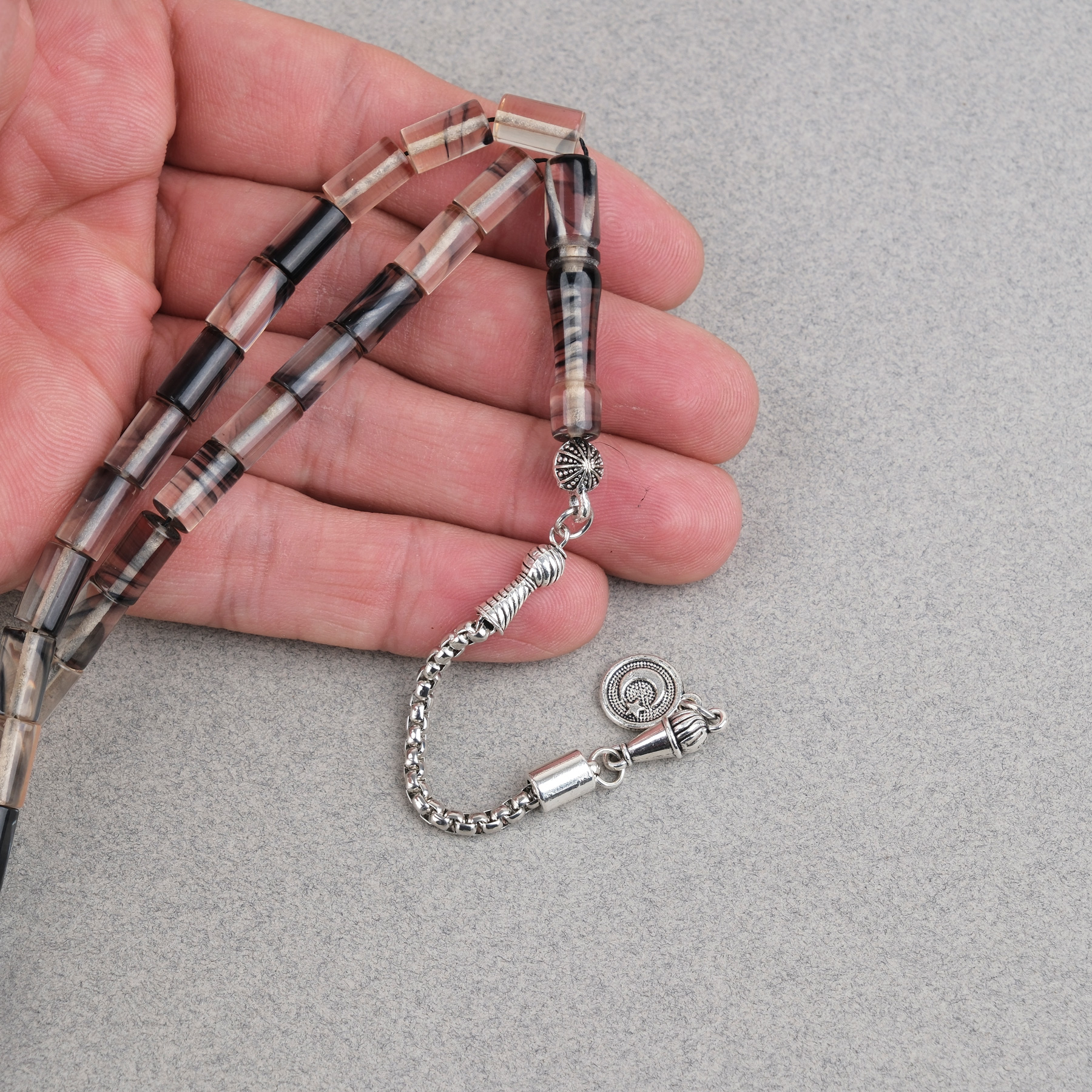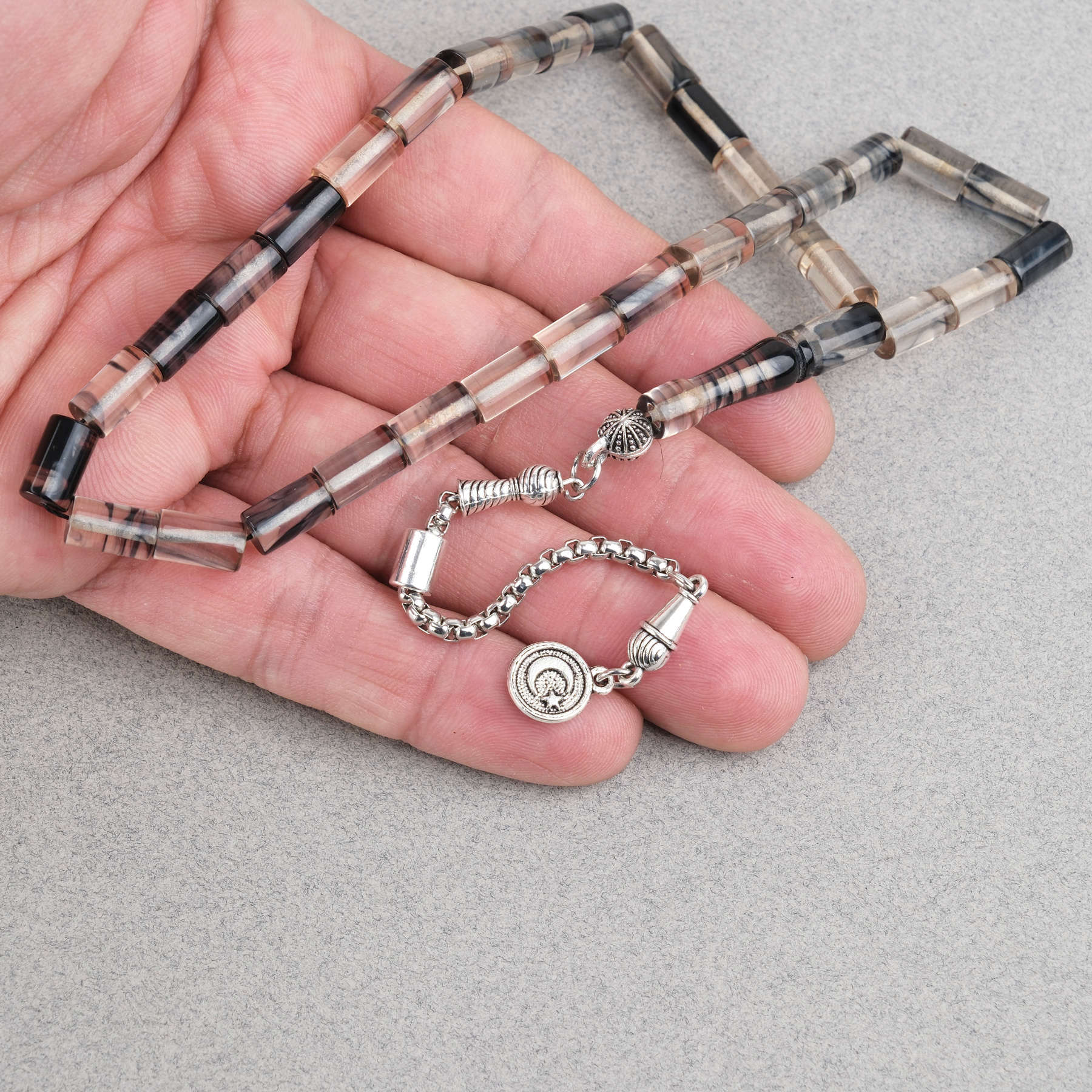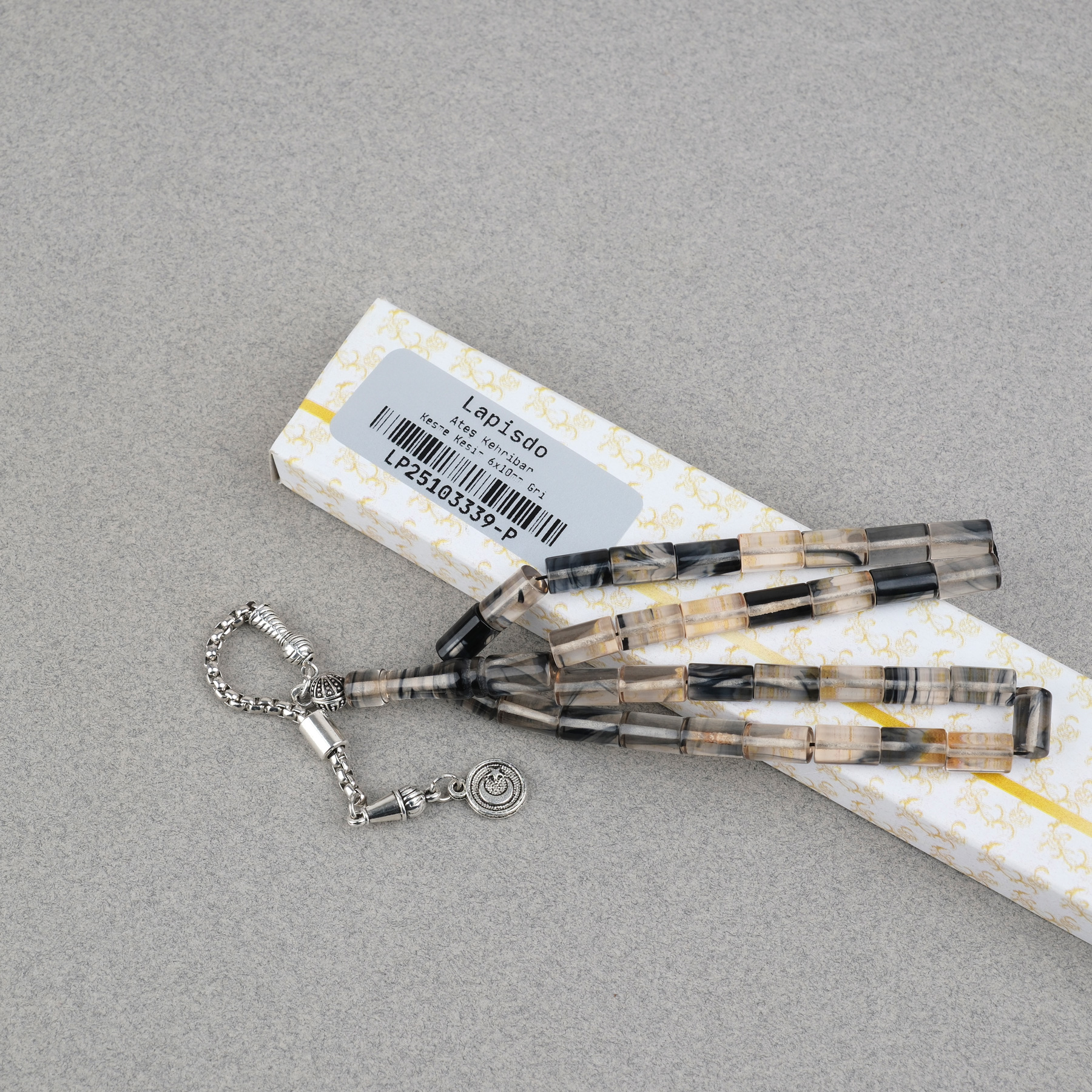 Ateş Kehribar Alpaka Püsküllü Kesme Kesim 6x10mm Tesbih - Gri