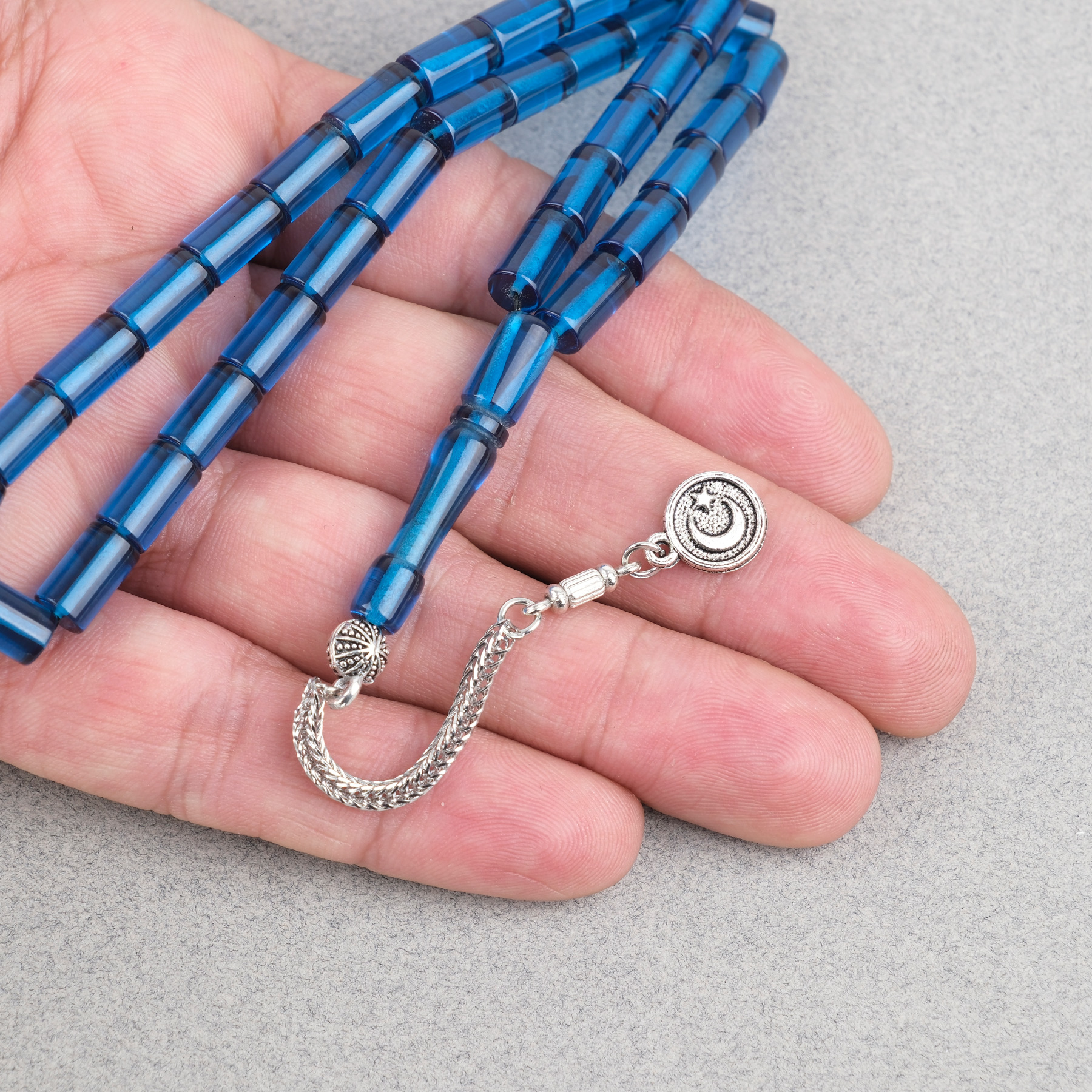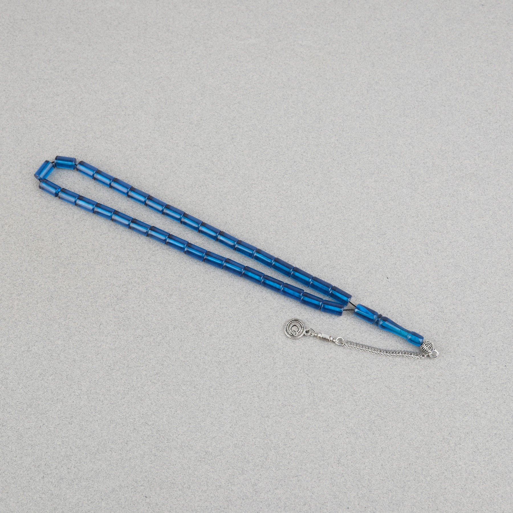 Ateş Kehribar Alpaka Püsküllü Kesme Kesim 6x10mm Tesbih - Petrol Mavisi