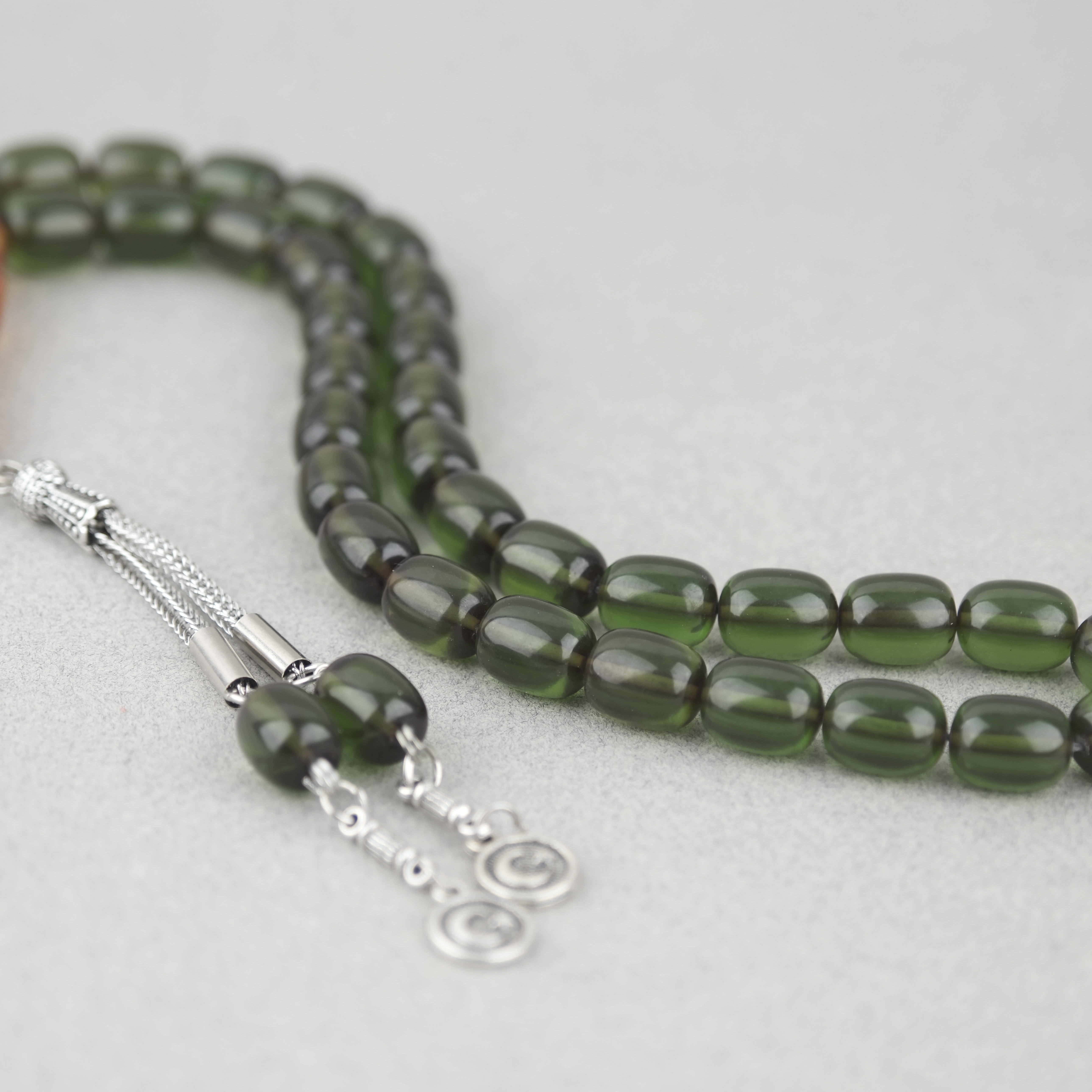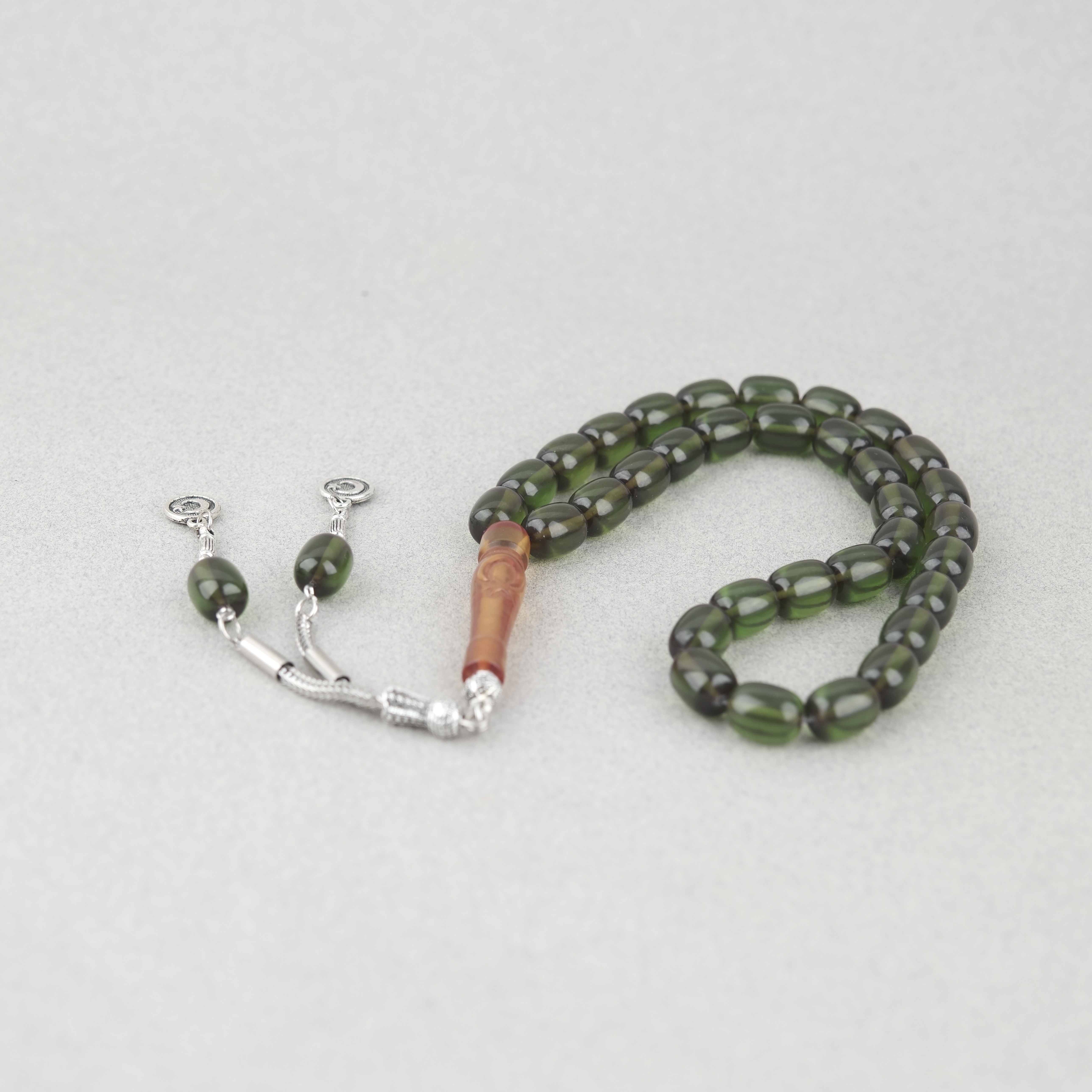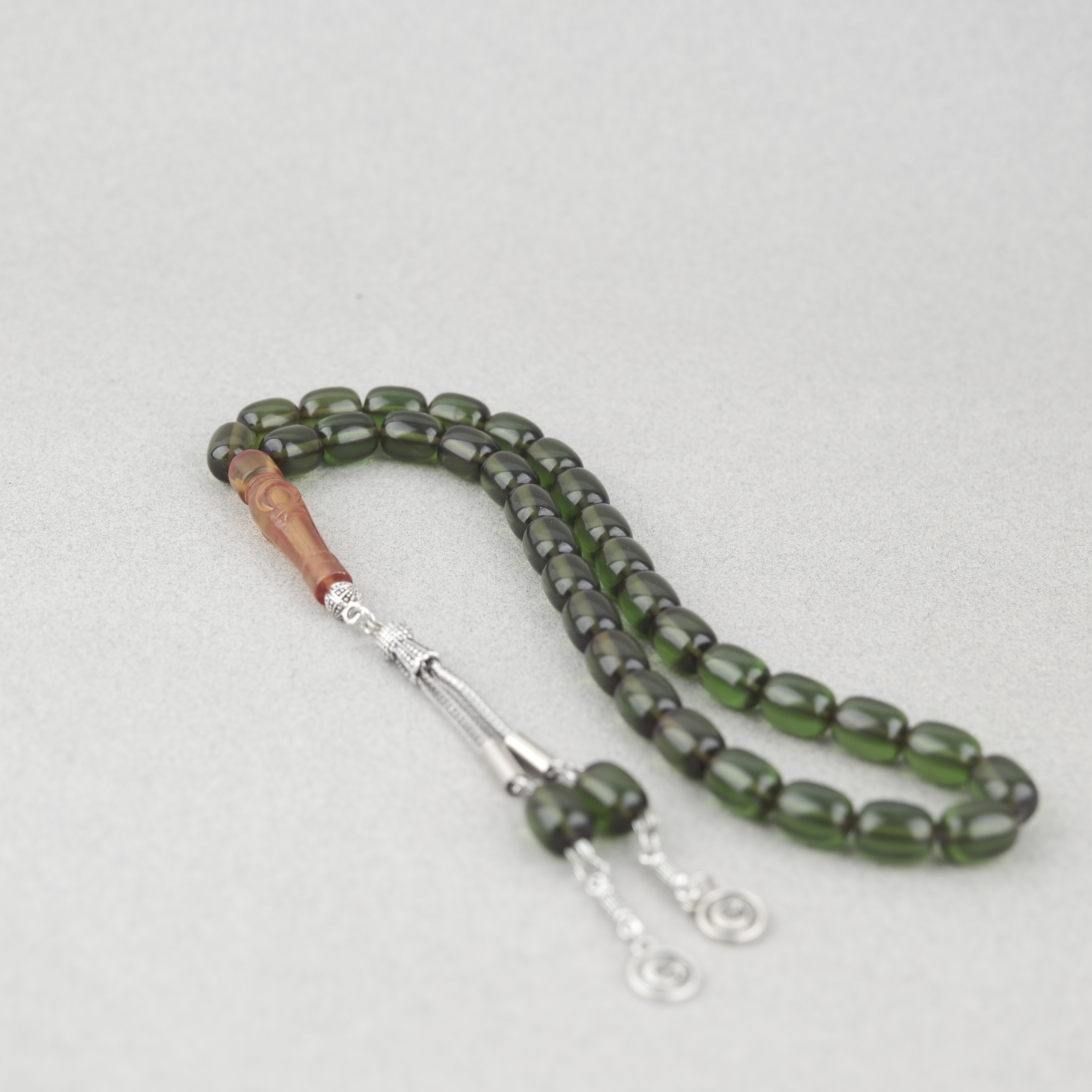 Ateş Kehribar Ayyıldız İşlemeli Sarı İmame Kapsül Kesim 9x11mm Tesbih -Yeşil