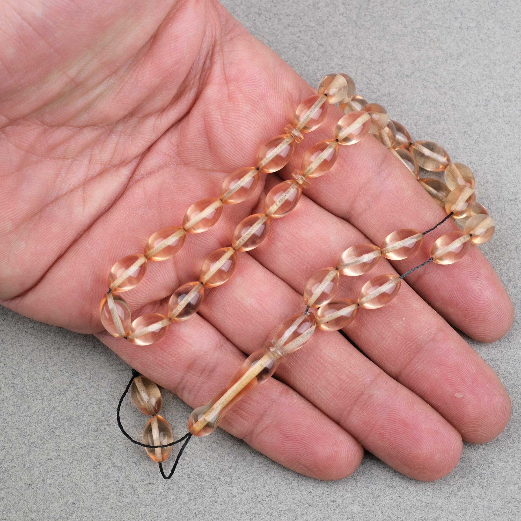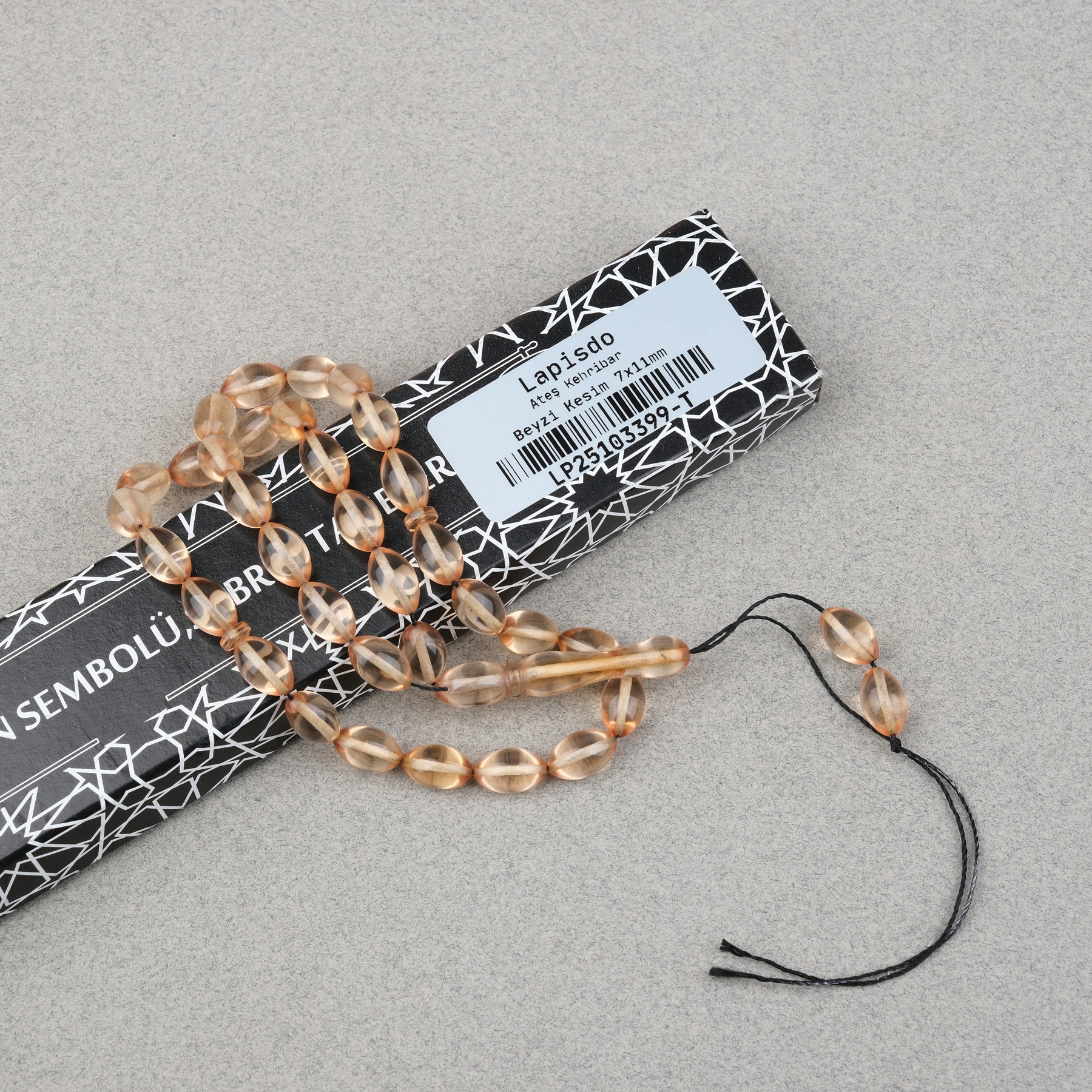 Ateş Kehribar Beyzi Kesim 7x11mm Tesbih-Açık Sarı