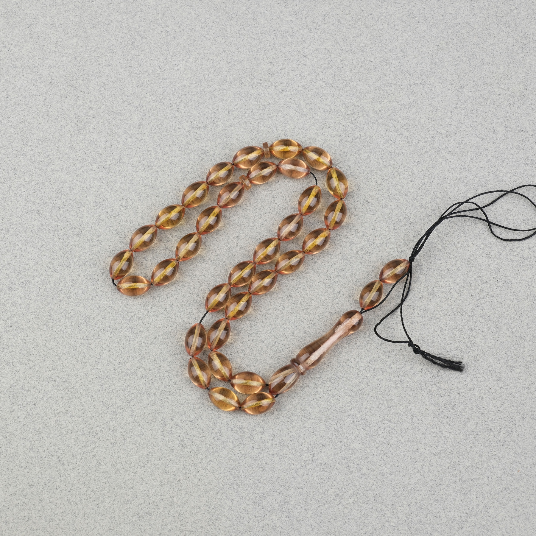 Ateş Kehribar Beyzi Kesim 7x11mm Tesbih- Şeffaf Bal Köpüğü