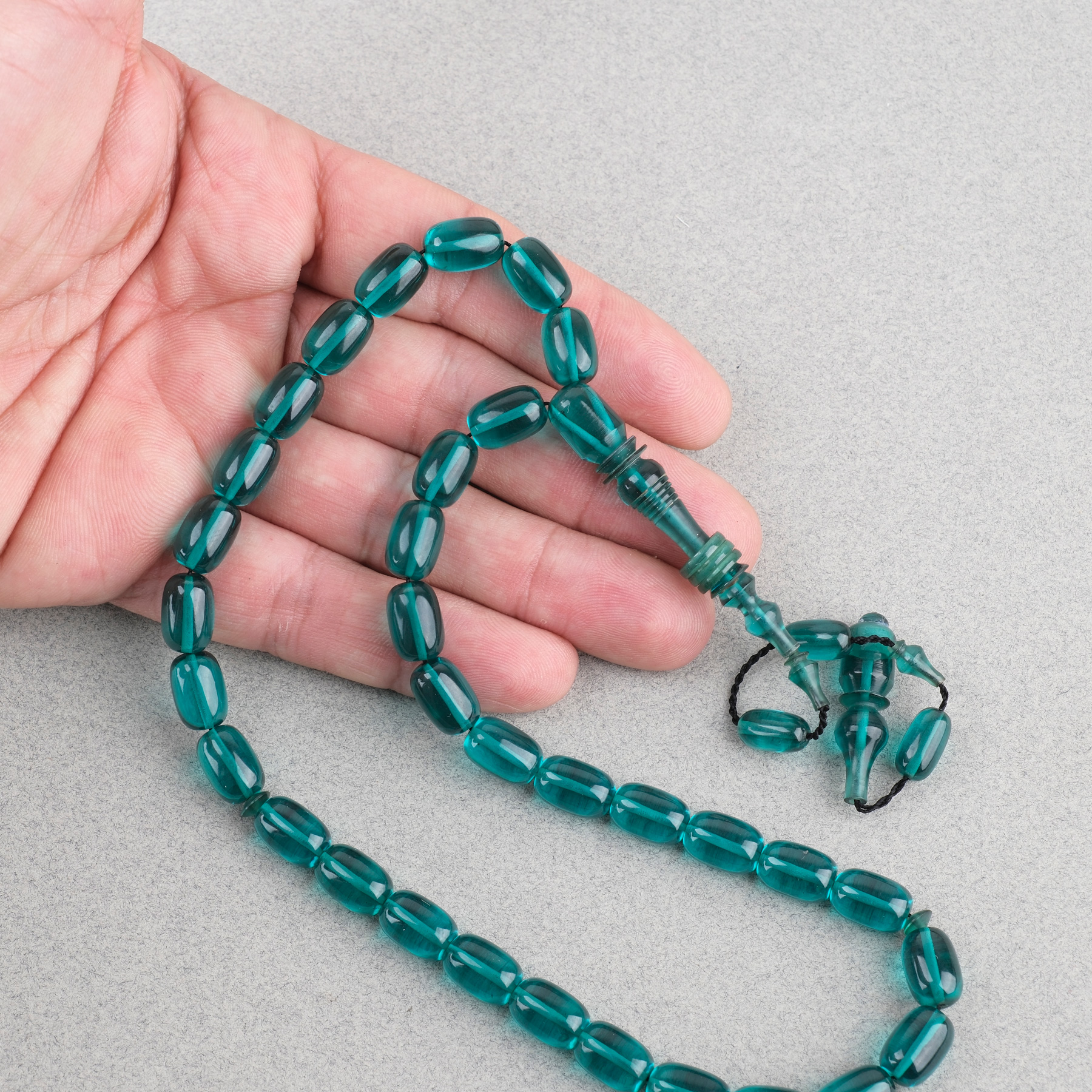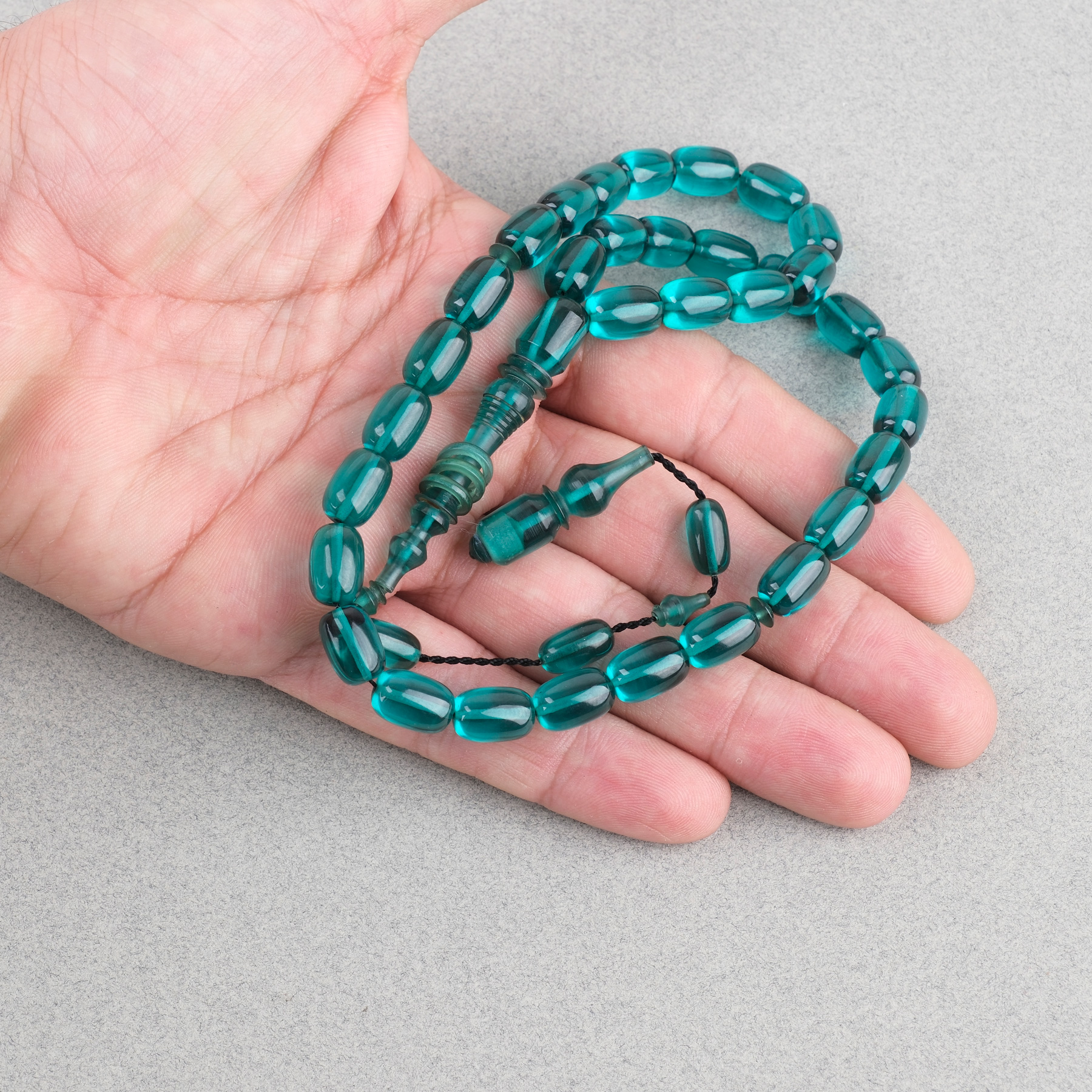 Ateş Kehribar Halkalı İmame Kapsül Kesim 8x11mm Tesbih - Koyu Yeşil