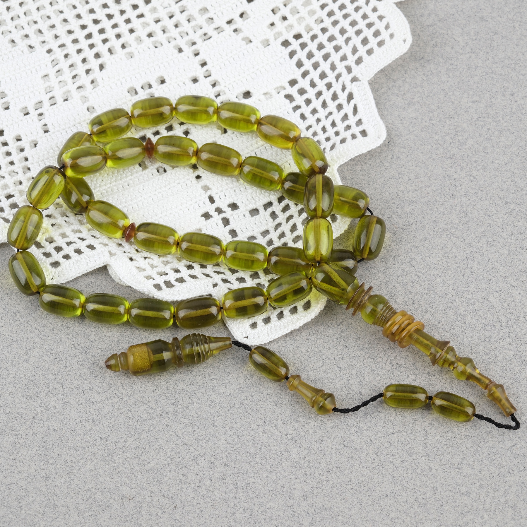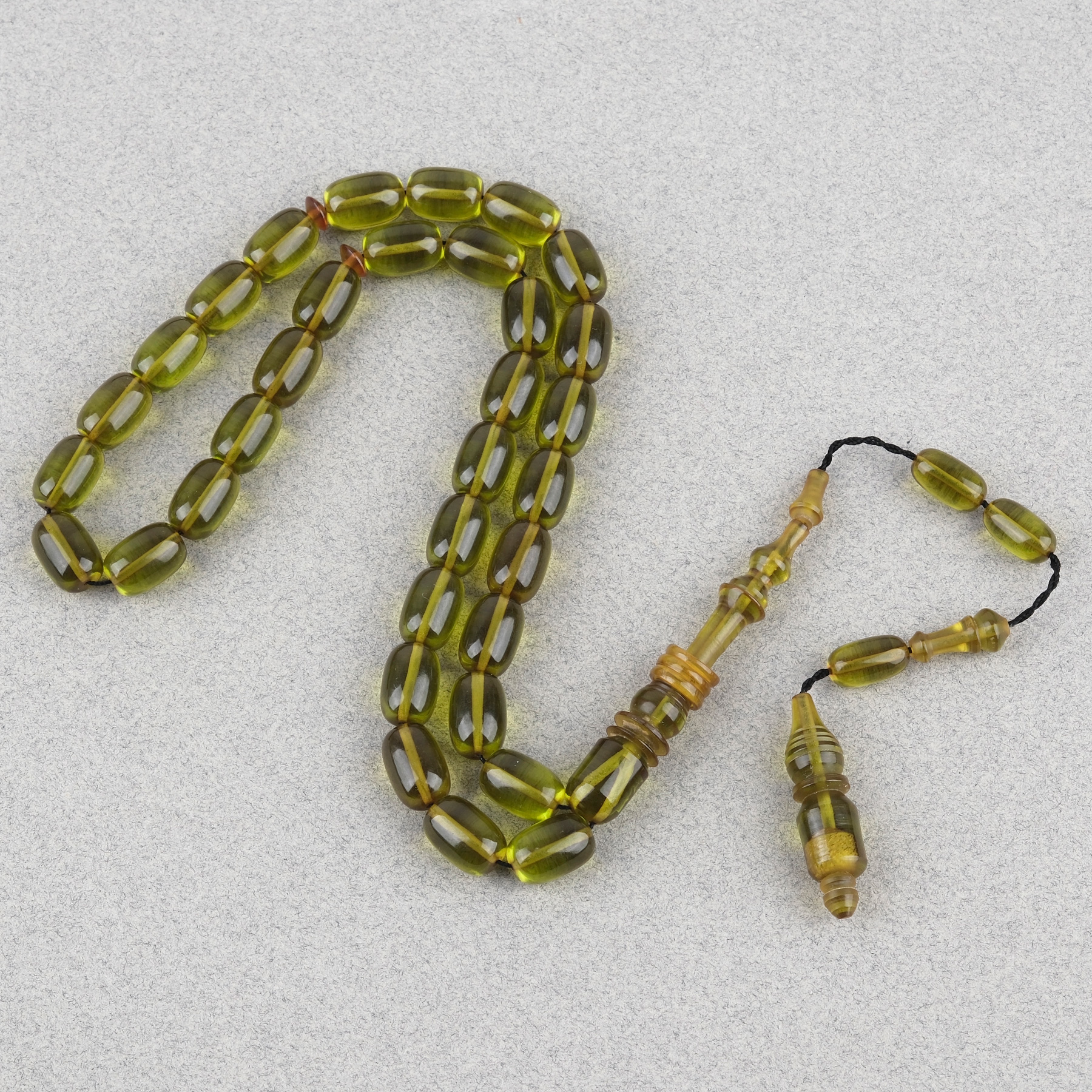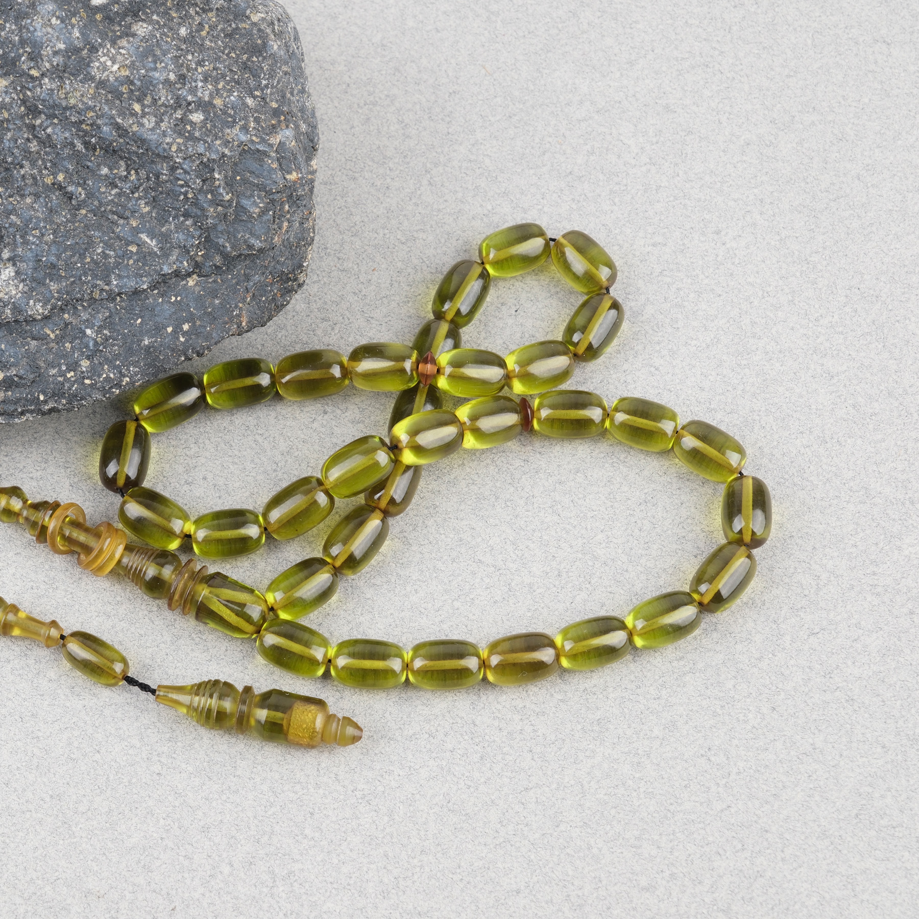 Ateş Kehribar Halkalı İmame Kapsül Kesim 8x11mm Tesbih - Yeşil