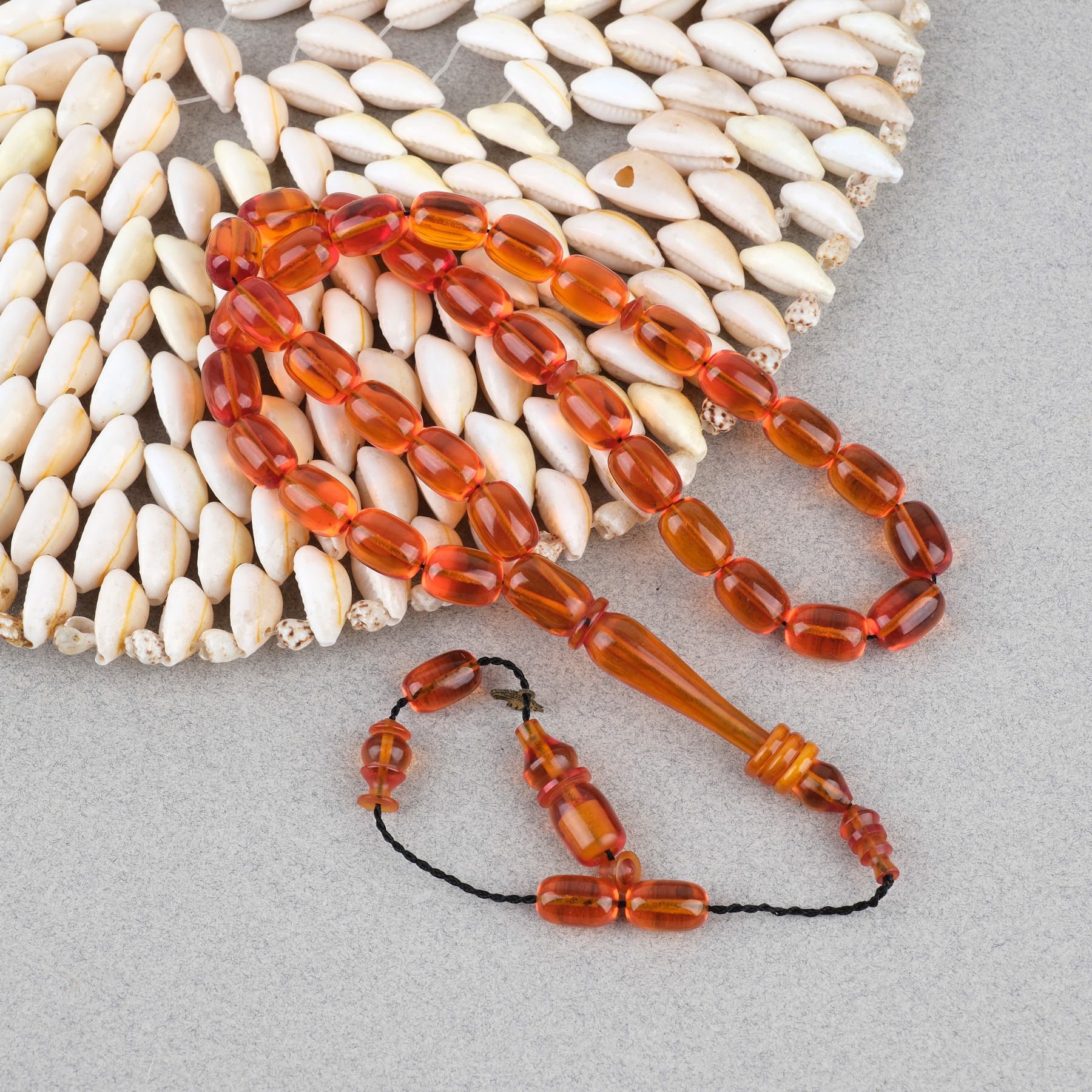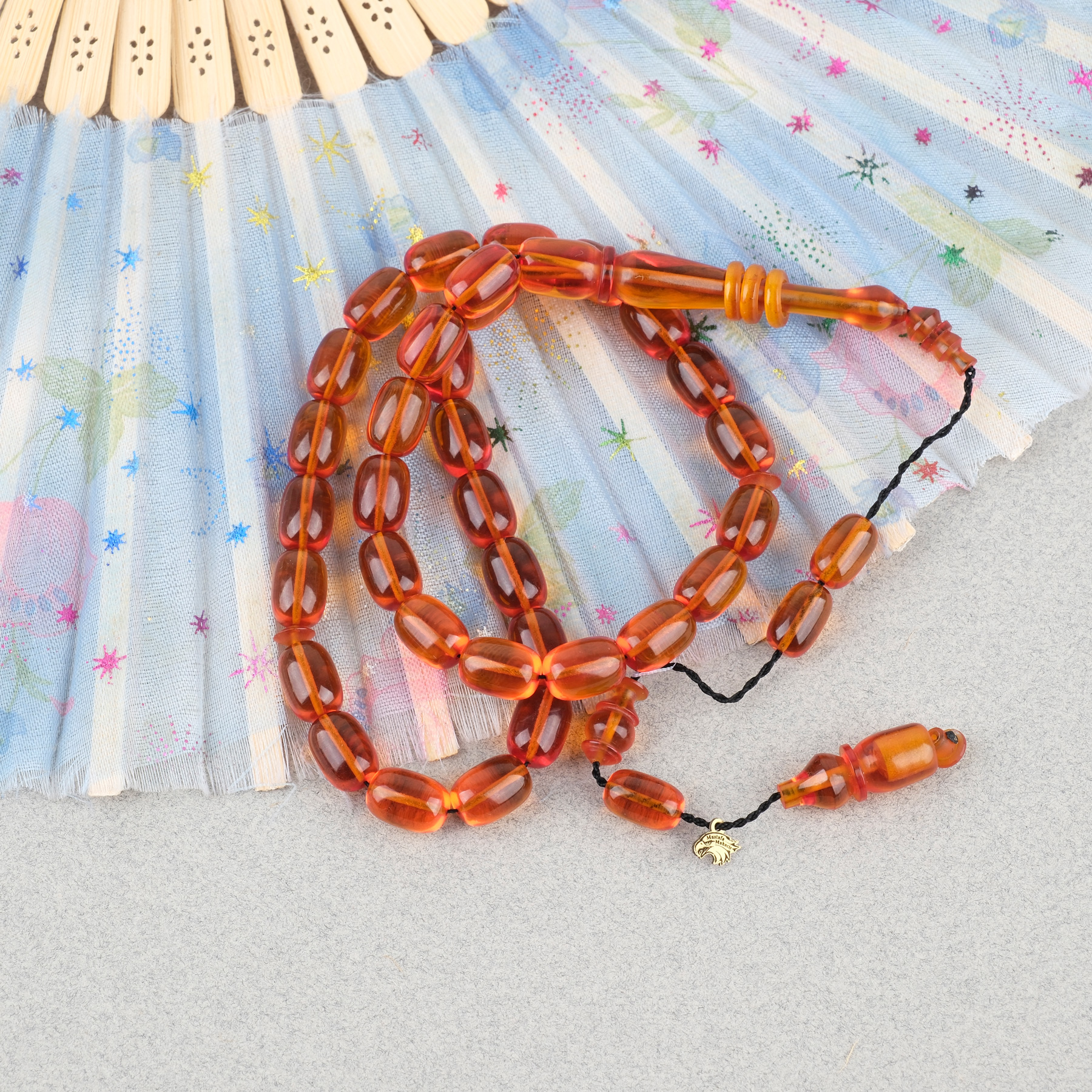 Ateş Kehribar Halkalı İmame Usta İşi İmzalı Kapsül Kesim 8x11mm Tesbih - Kırmızı