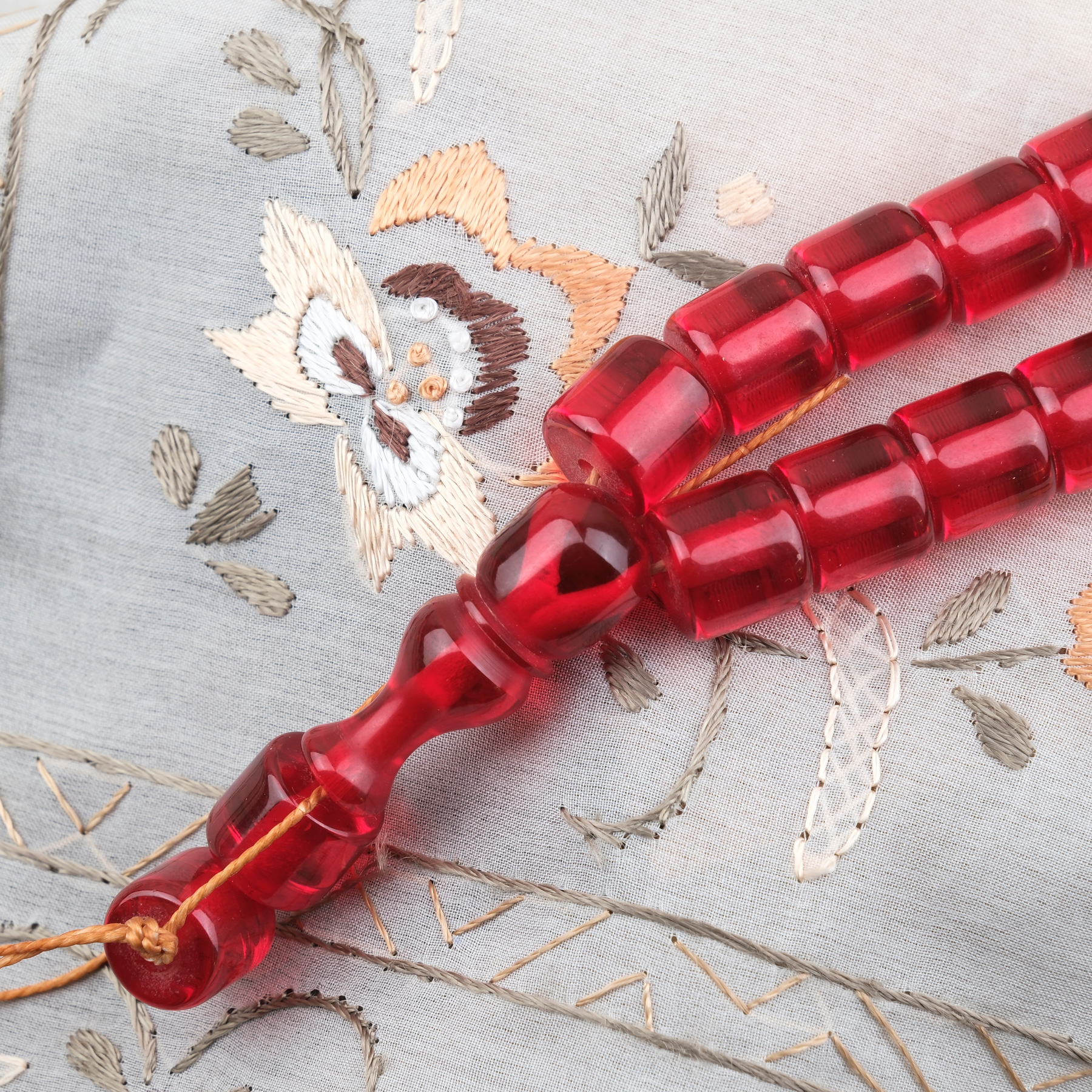 Ateş Kehribar Kapsül Kesim 11x11mm Tesbih - Şeffaf Kırmızı Püskülsüz