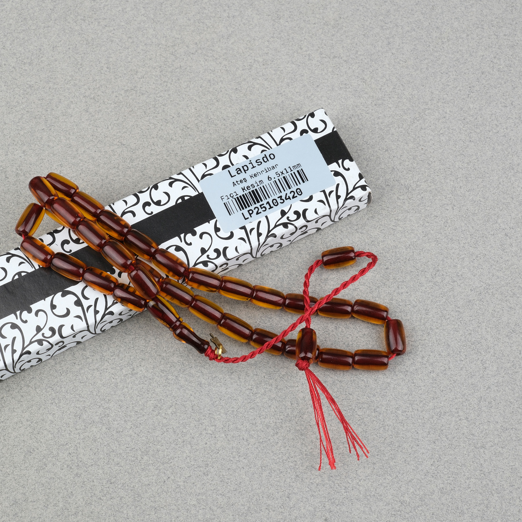 Ateş Kehribar Kapsül Kesim Oturtma İmameli Omari Sistemli 6.5x11mm Tesbih
